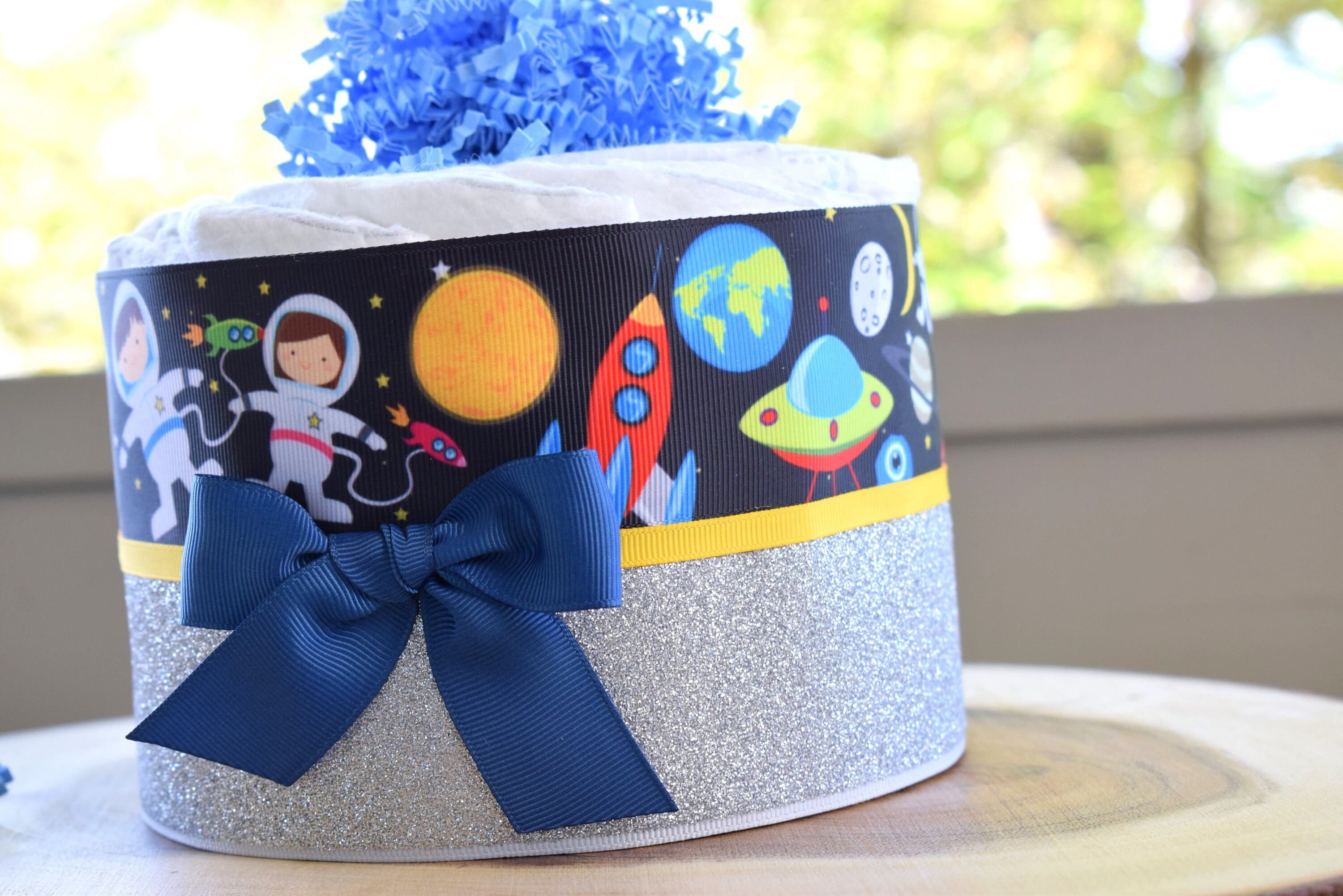 This Gorgeous Astronaut Diaper Cakes are the perfect centerpieces for your baby shower. We can match any shower theme.