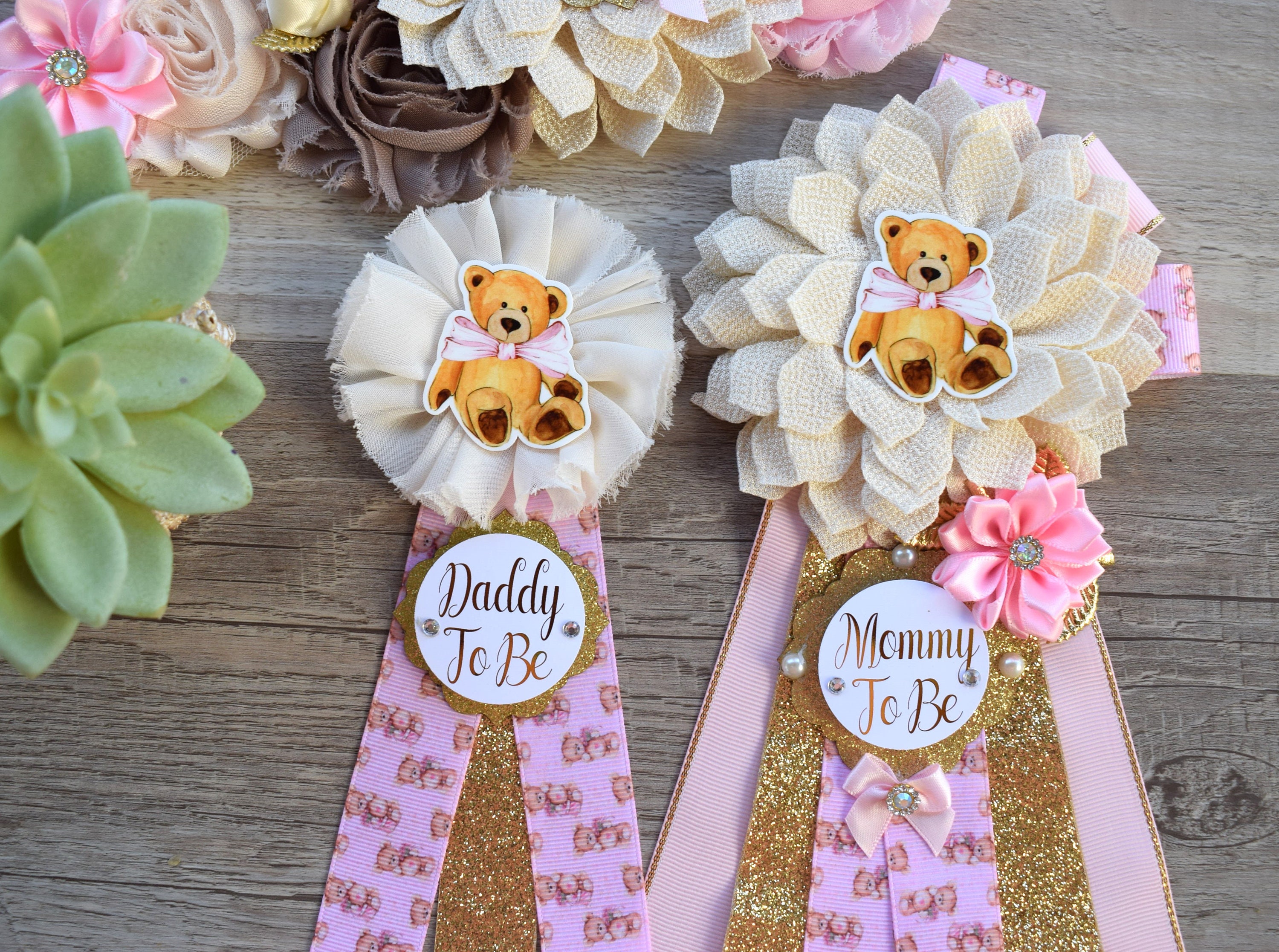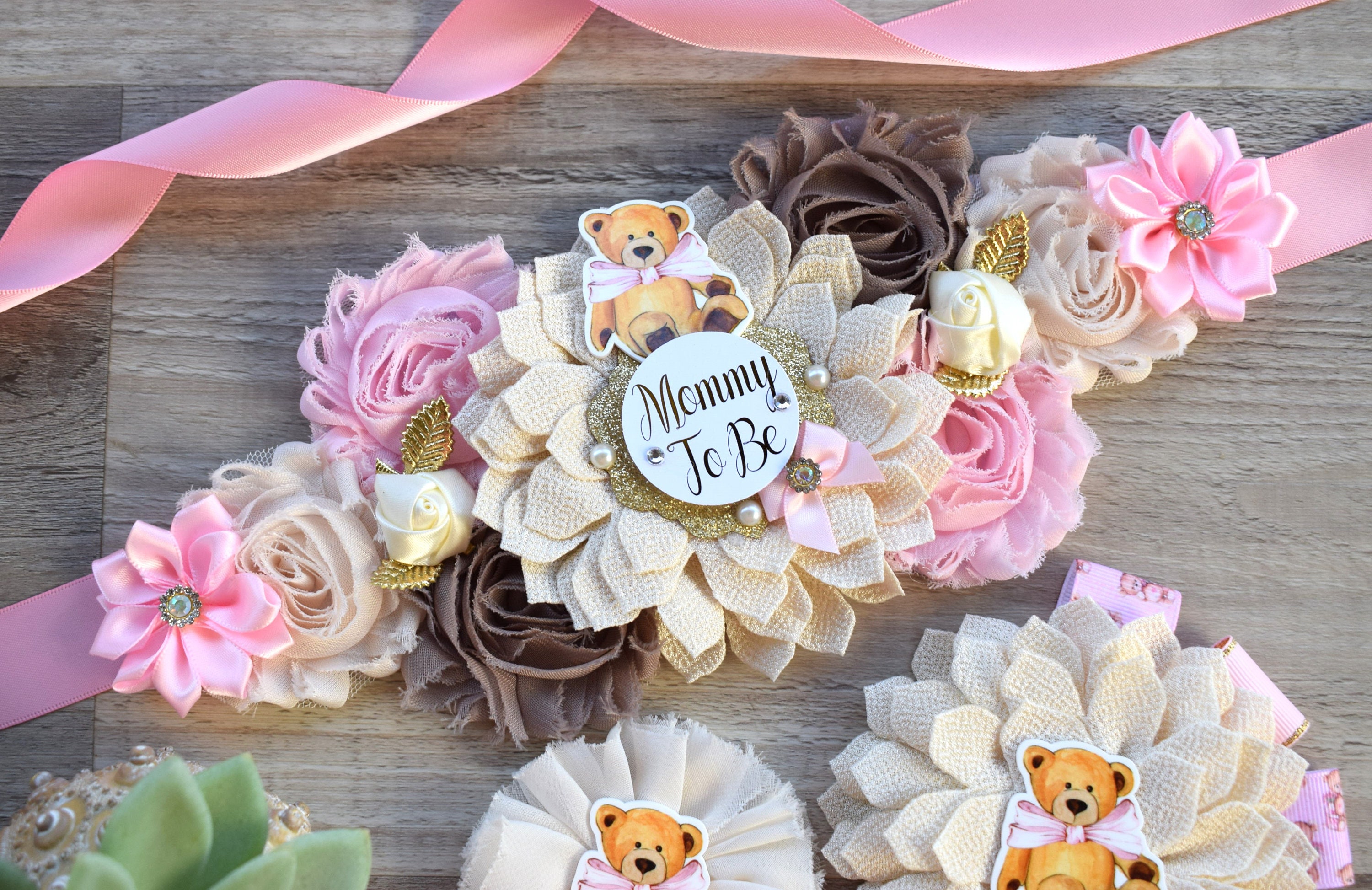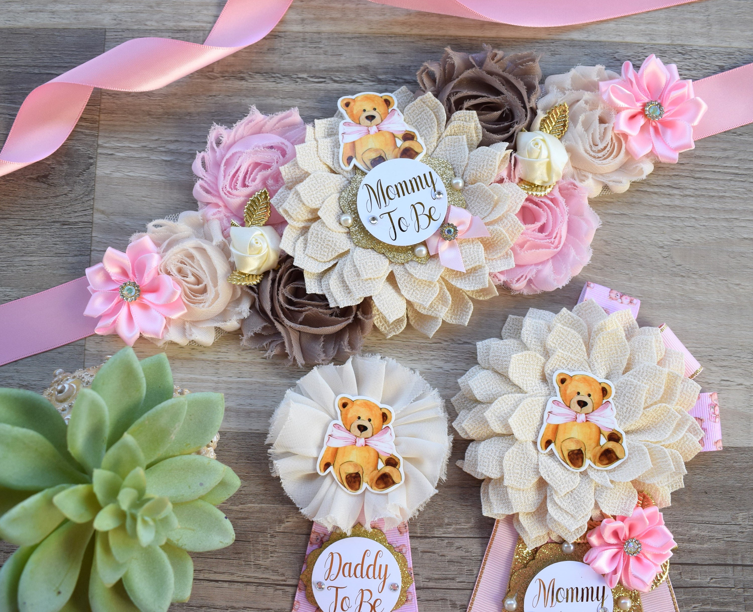 Pink Girl Teddy Bear Baby Shower, Pink Bear Mommy Bear Maternity Sash, Papa Bear, Mommy To Be Pin, Daddy To Be Pin, Girl Teddy Bear, Custom