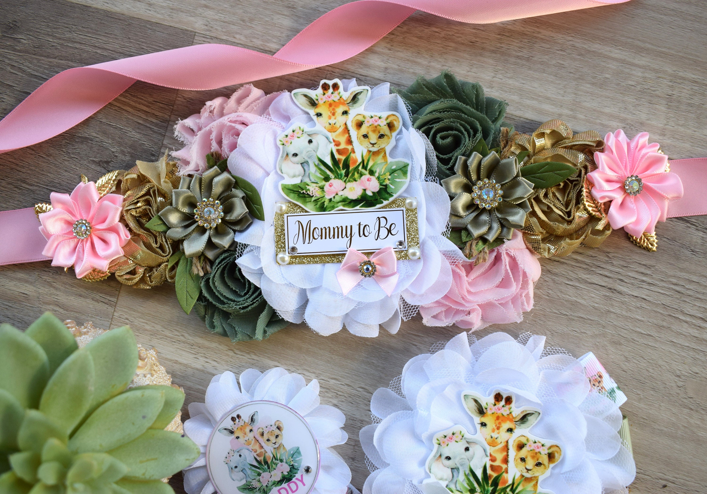 Girl Animal Safari Maternity Sash, Pink Safari Maternity Sash, Animal Mommy To Be Ribbon, Daddy To Be Pin, Safari Baby Shower Gift, Custom