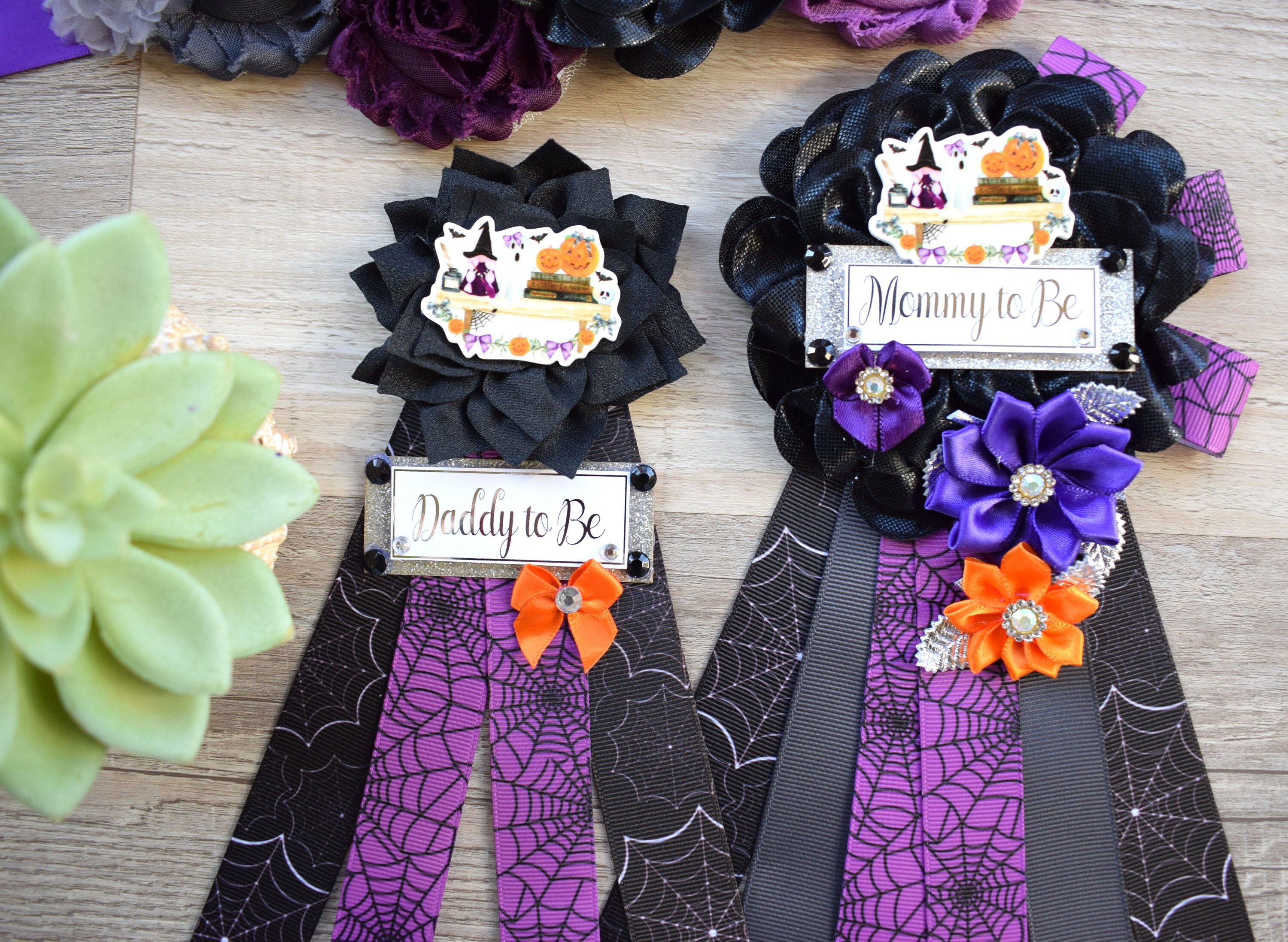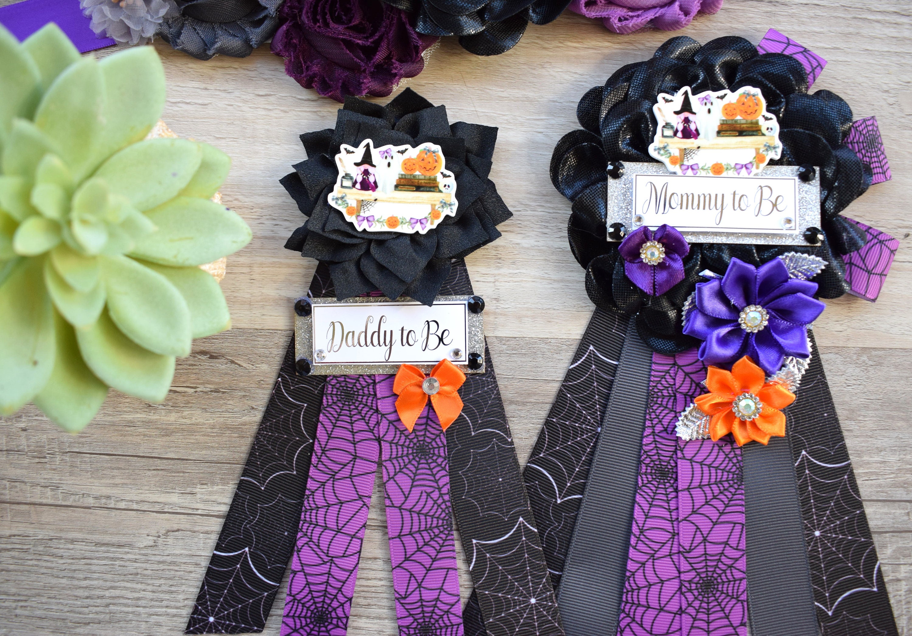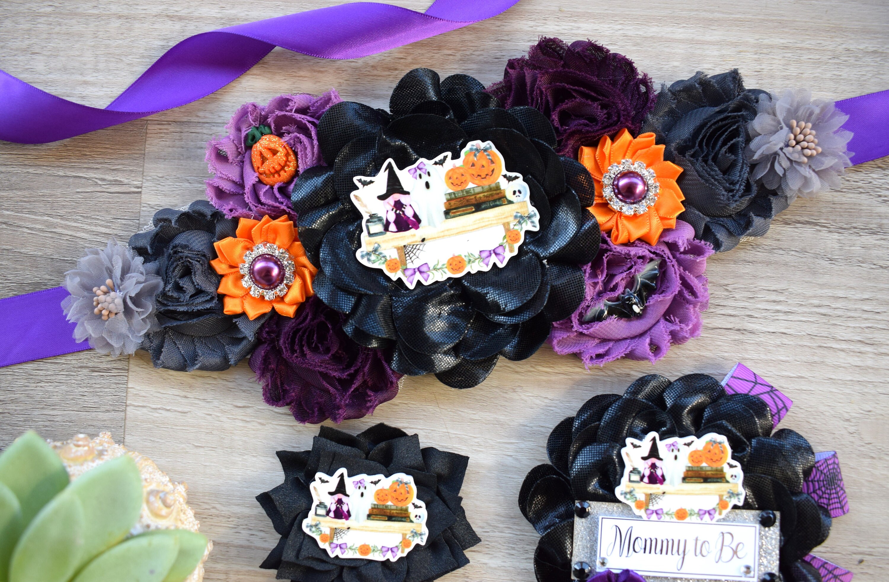 Halloween Pumpkin Baby Shower, Spider Orange Grey Purple Black Maternity Sash, Halloween Mommy To Be Pin, Scary Halloween Daddy To Be Pin