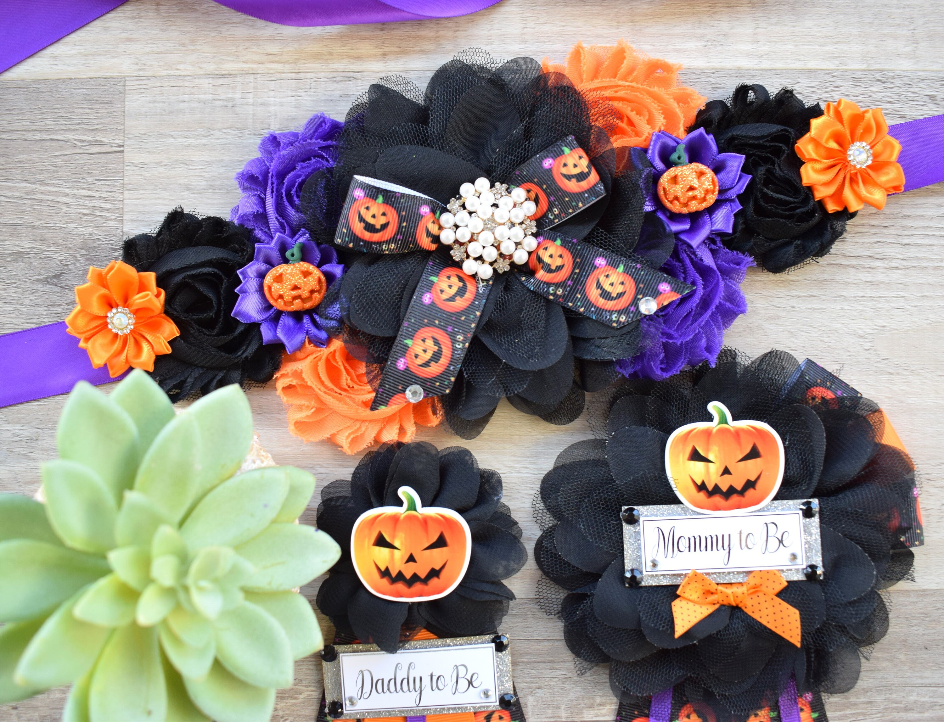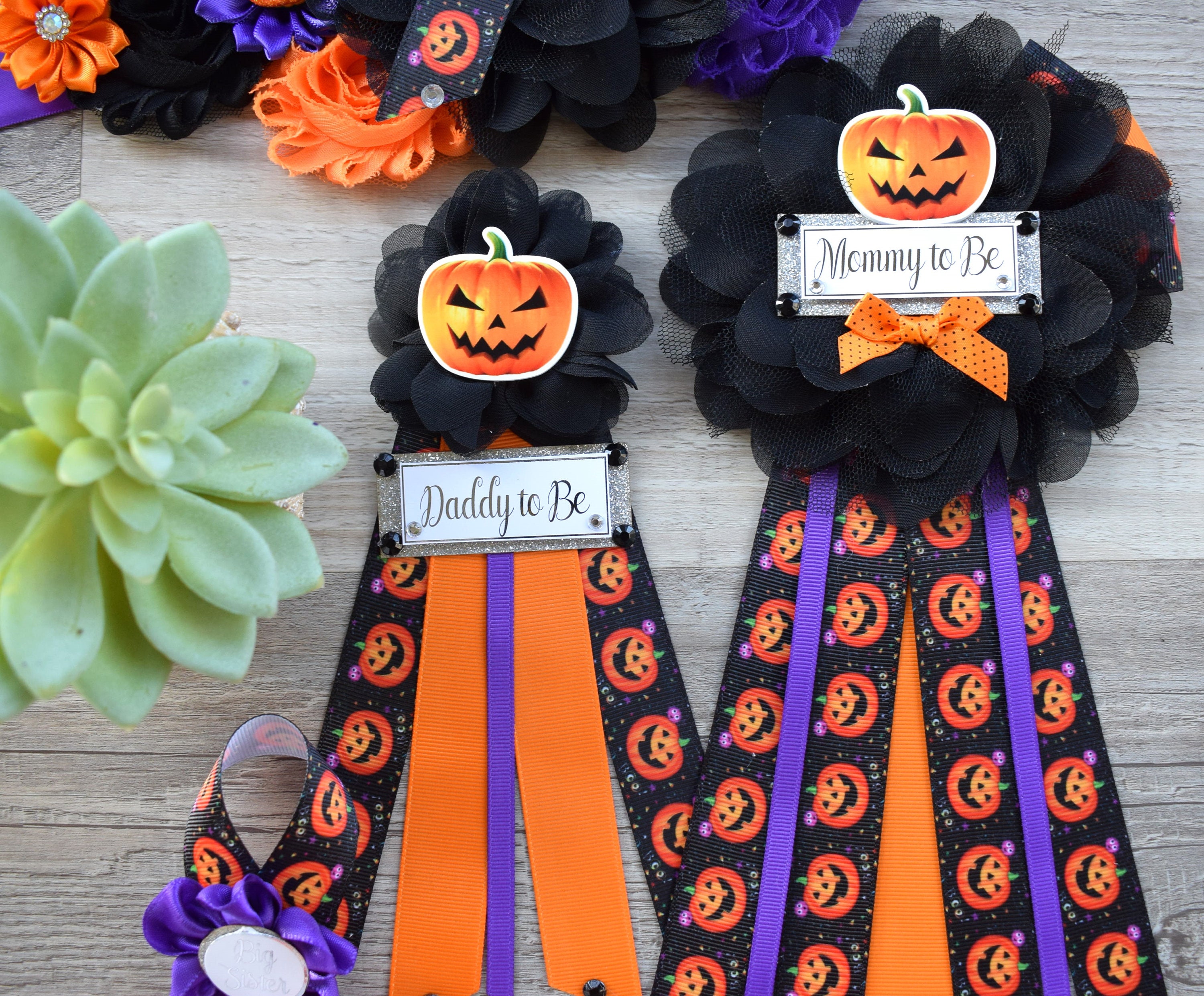 Halloween Pumpkin Baby Shower, Spider Orange Grey Purple Black Maternity Sash, Halloween Mommy To Be Pin, Scary Halloween Daddy To Be Pin