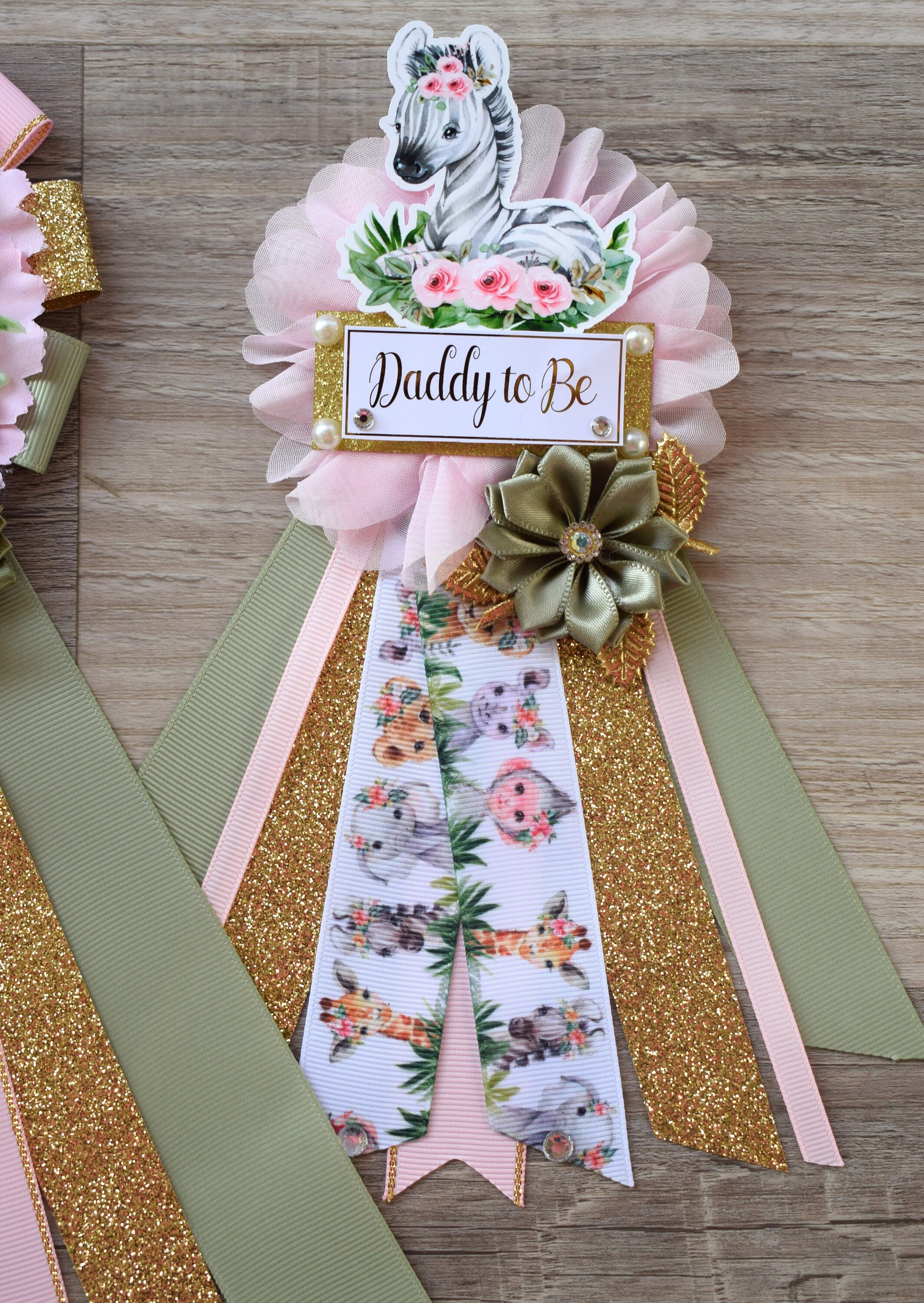 Girl Animal Safari Maternity Sash, Pink Safari Maternity Sash, Animal Mommy To Be Ribbon, Daddy To Be Pin, Safari Baby Shower Gift, Custom