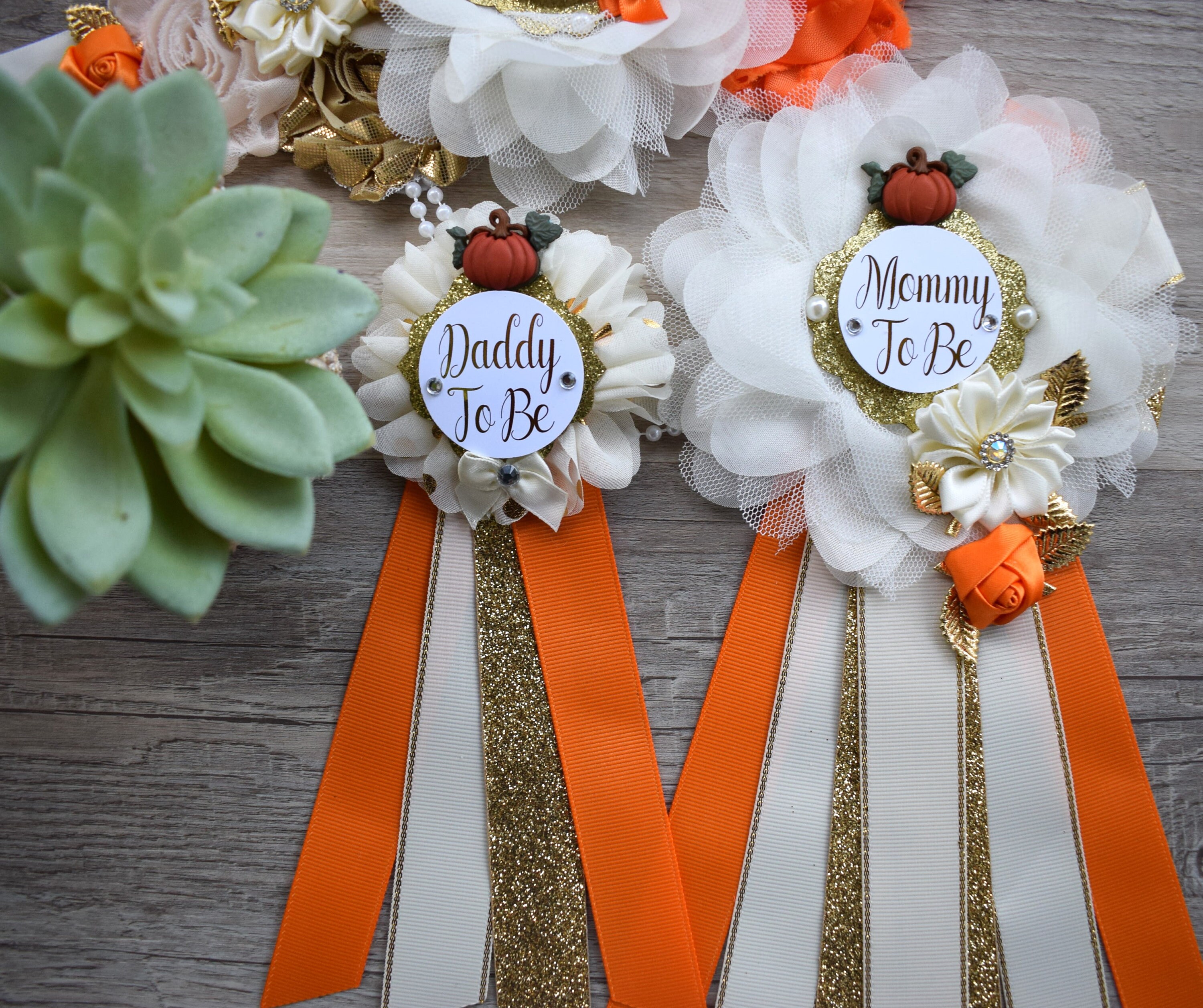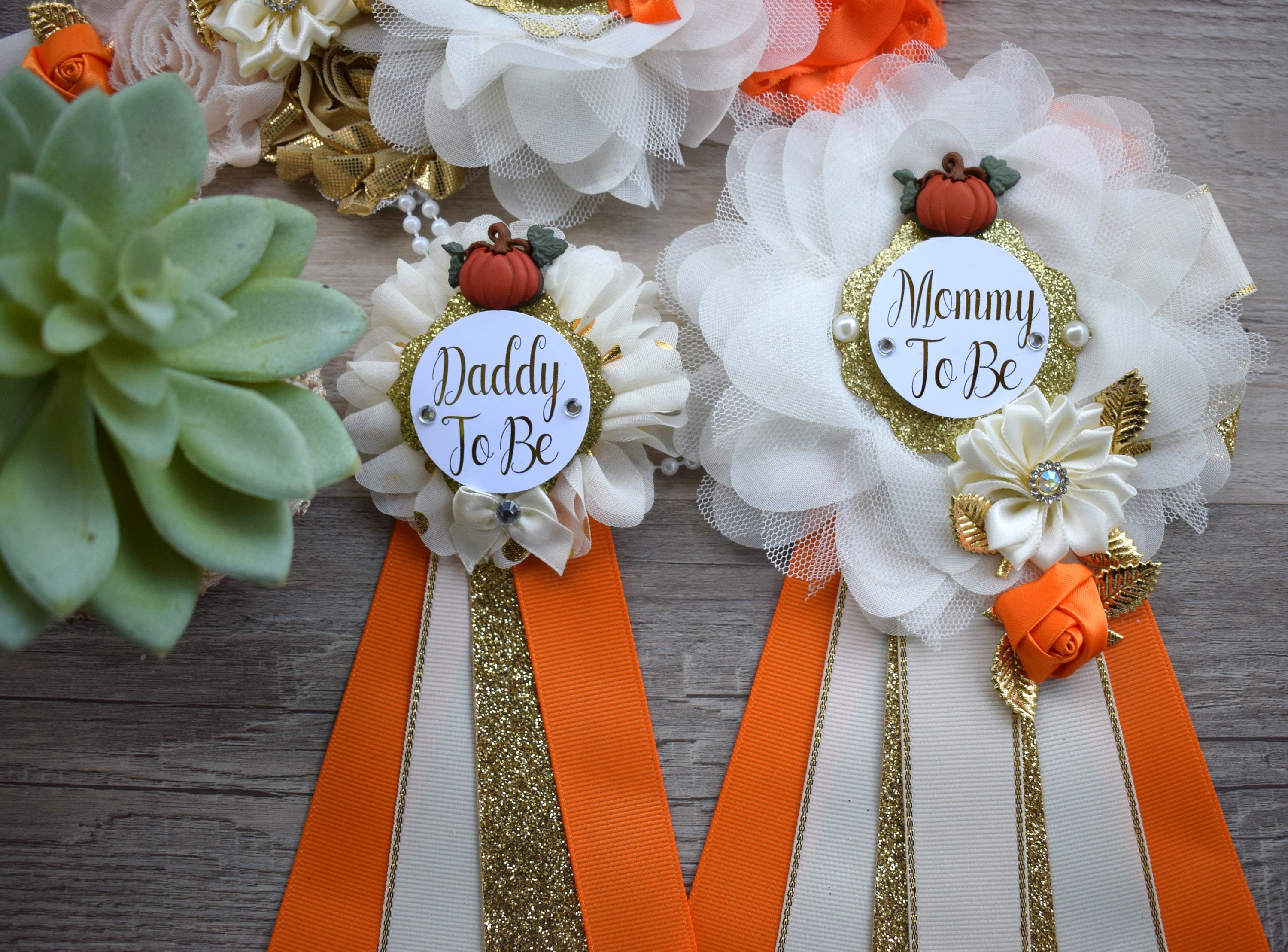 Neutral Pumpkin Baby Shower, Ivory Orange Beige Maternity Sash, Gold Cream Mommy To Be Pin, Beige Pumpkin Fall Daddy To Be Pin, Custom