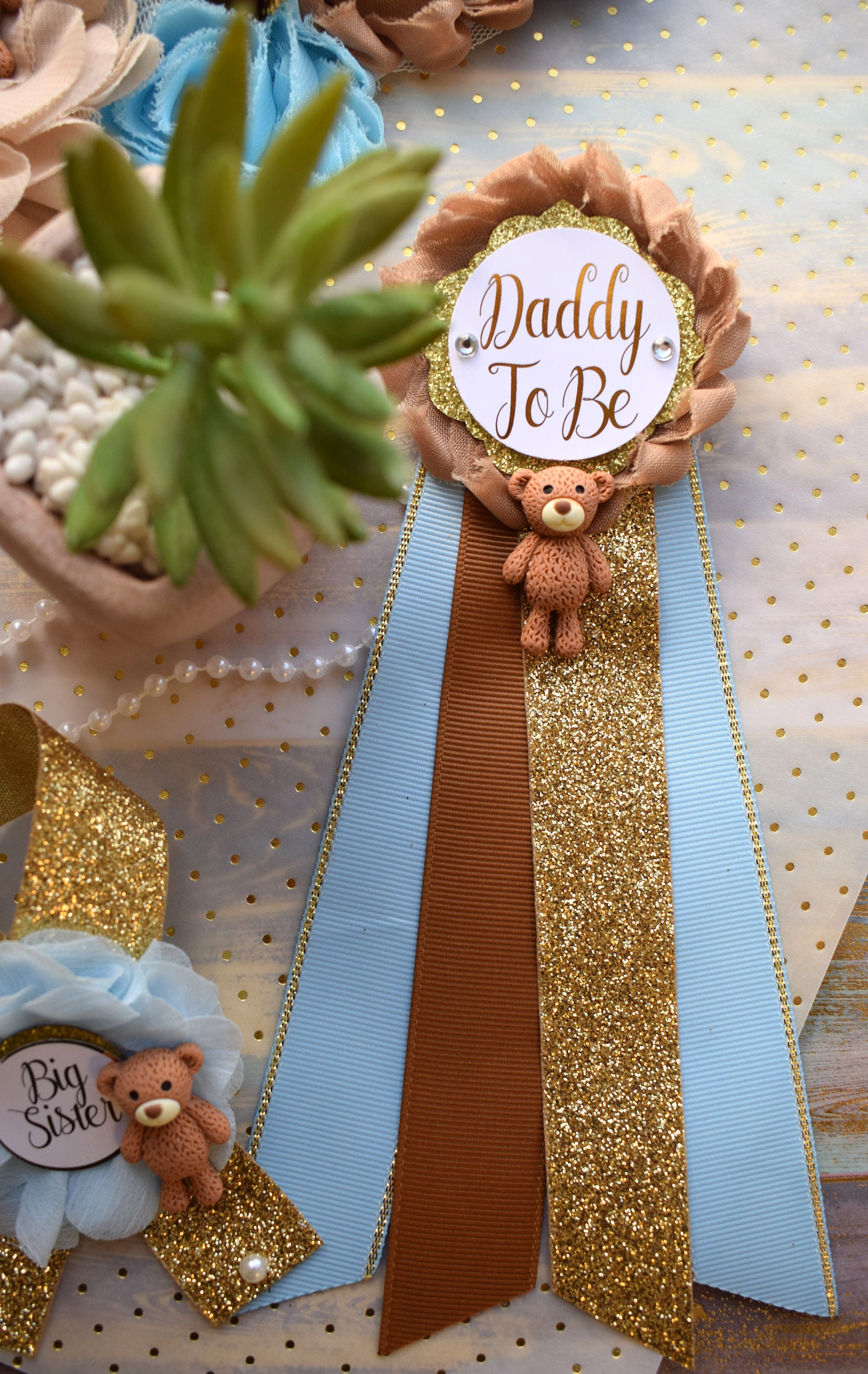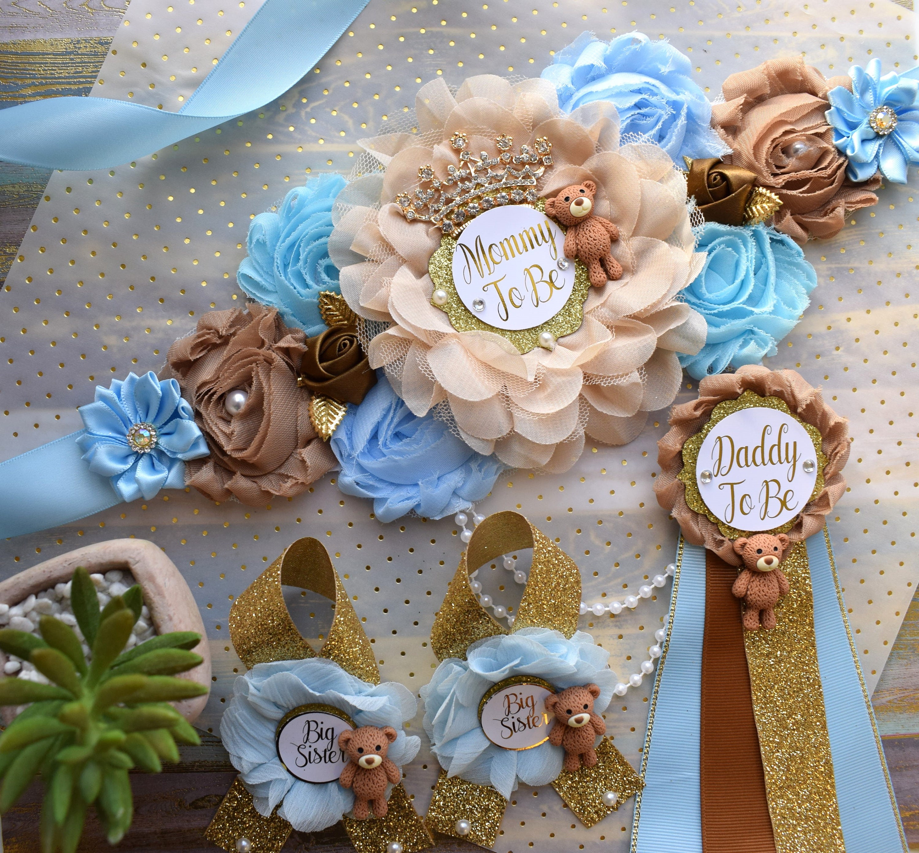 Blue Bear Baby Shower, Teddy Bear Blue Flower Sash, Teddy Bear Corsage Pin, Bear Mommy To Be, Bear Daddy To Be, Bear Baby Shower, Custom