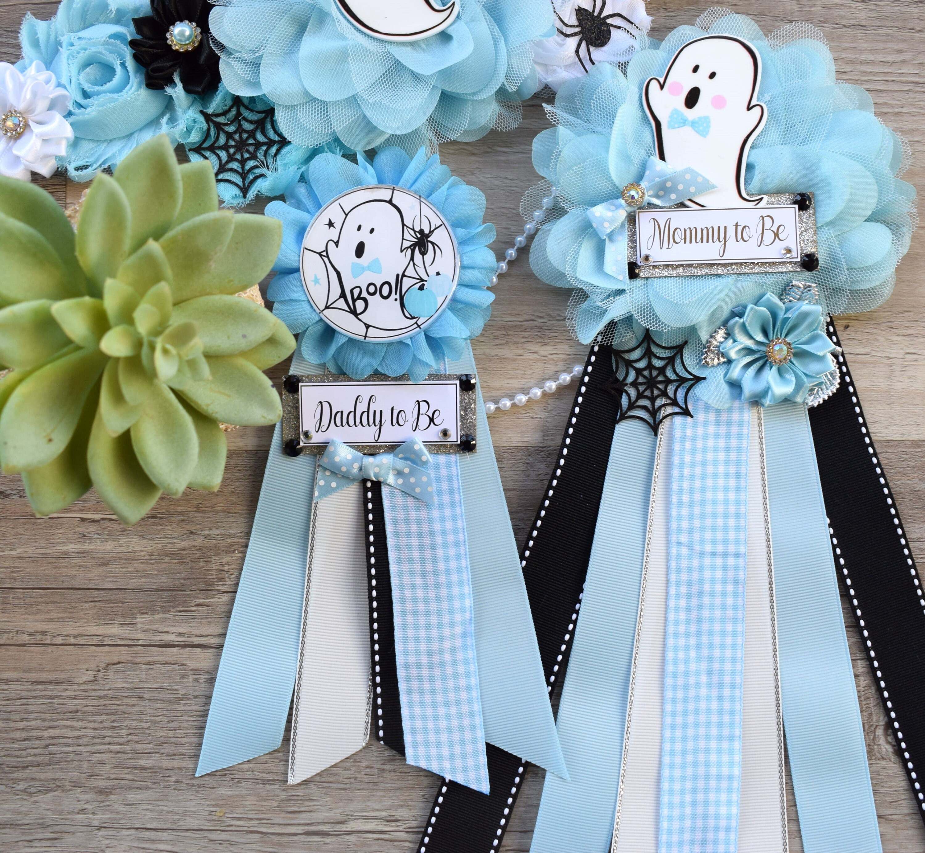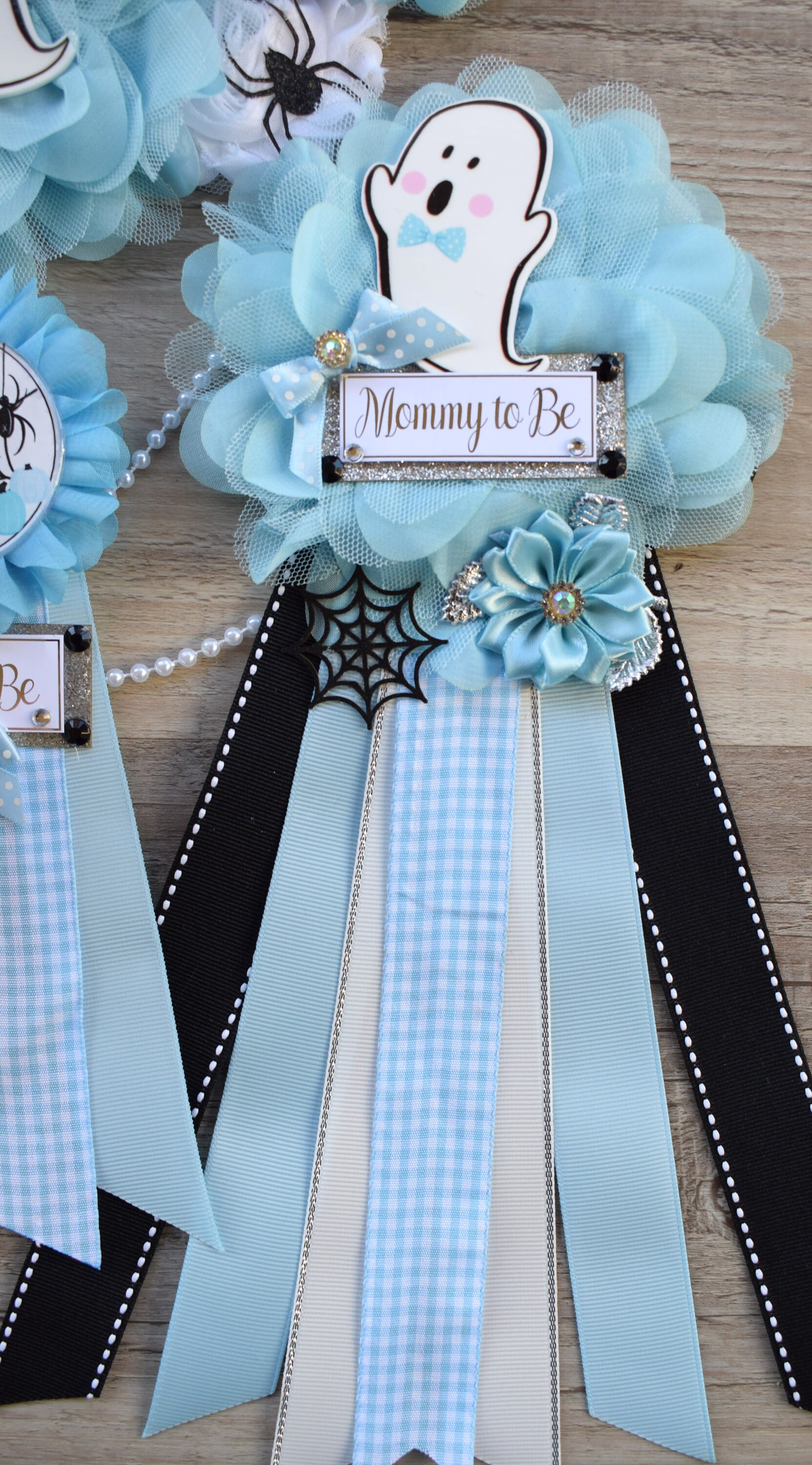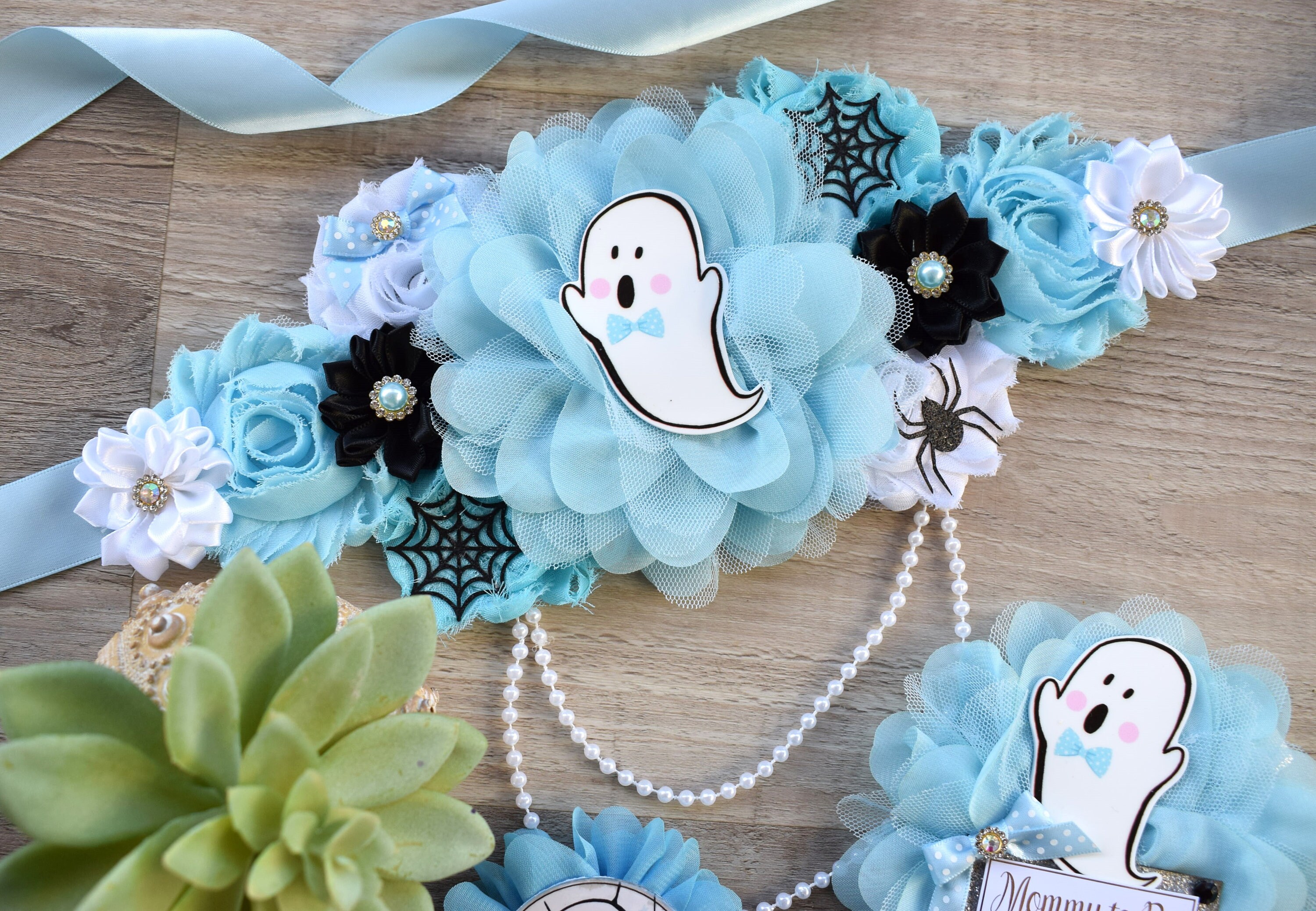 Boy Blue Ghost Halloween Baby Shower, Blue Maternity Sash, Mommy To Be Ribbon, Daddy To Be Pin, Halloween Baby Shower Gift, Custom