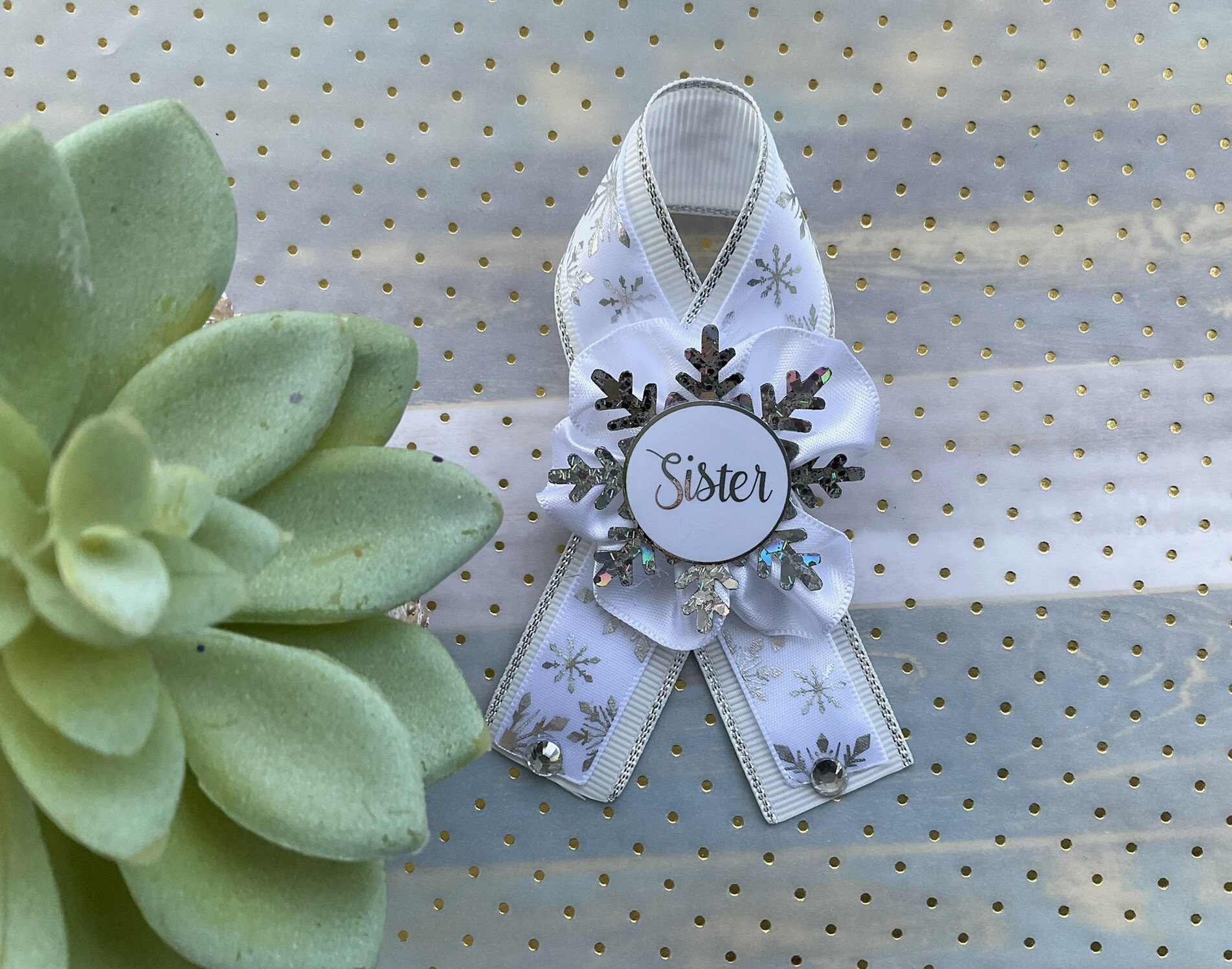 Gender Reveal Snowflake Baby Shower, White Silver Maternity Sash, Snowflake Mommy To Be Ribbon, Daddy To Be pin, Baby Shower Gift, Custom