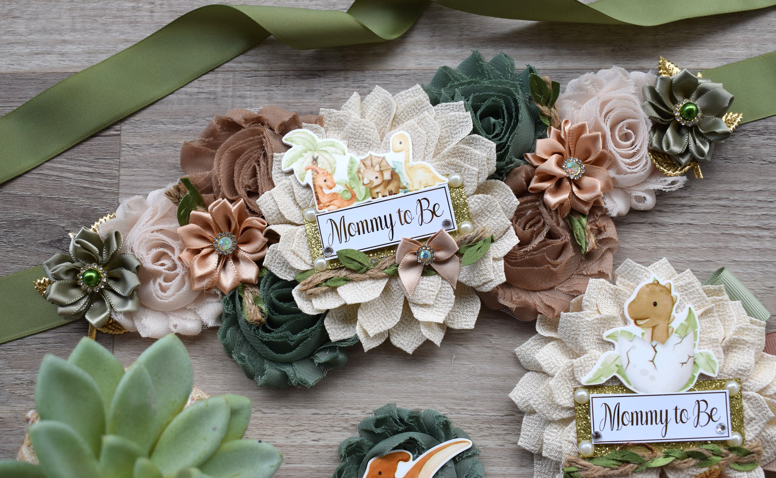 Boho Dinosaur Baby Shower, Dinosaur Mommy To Be Ribbon, Dinosaur Maternity Sash, Dinosaur Daddy to Be Pin, Dino Diaper Cake - S0002