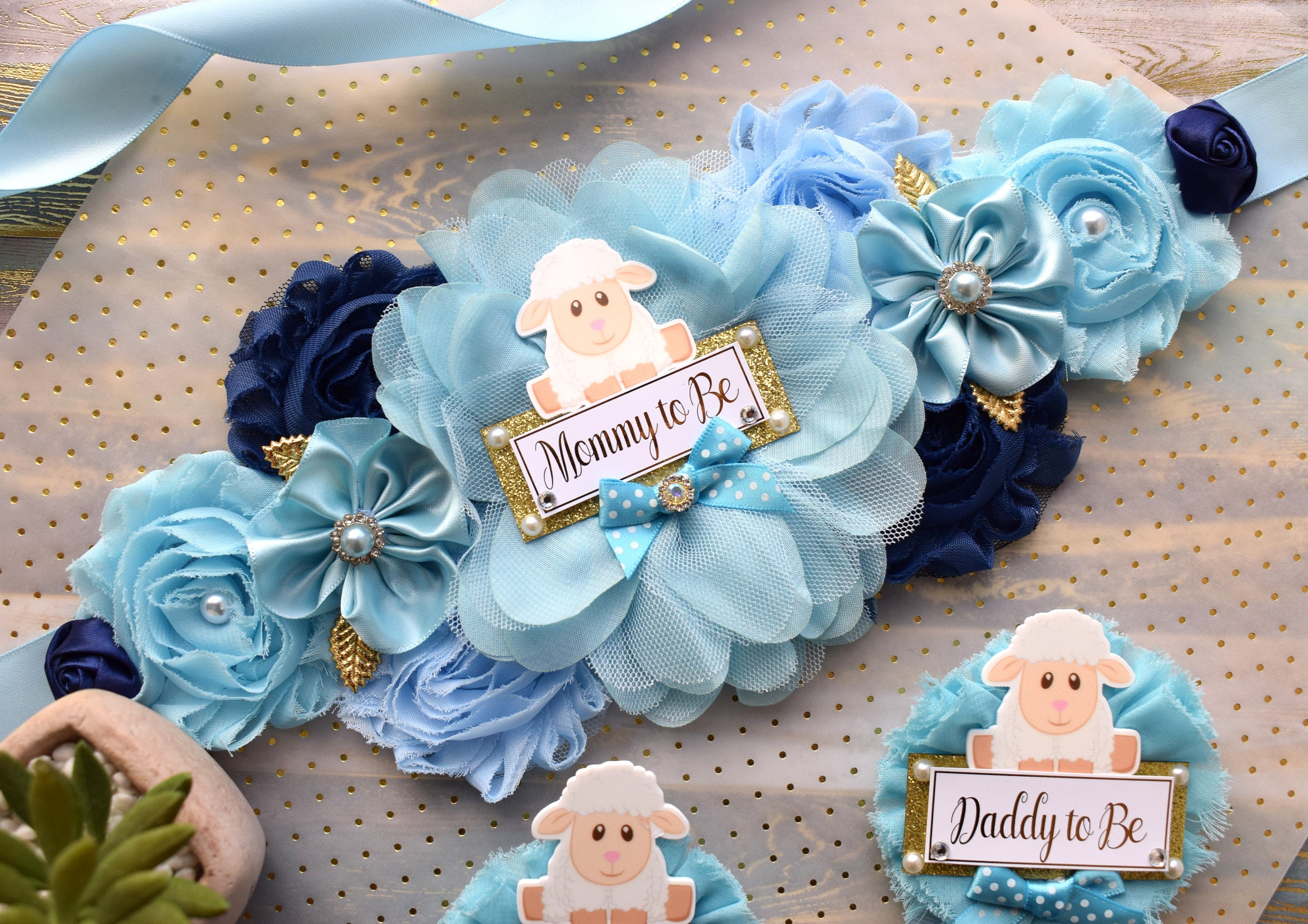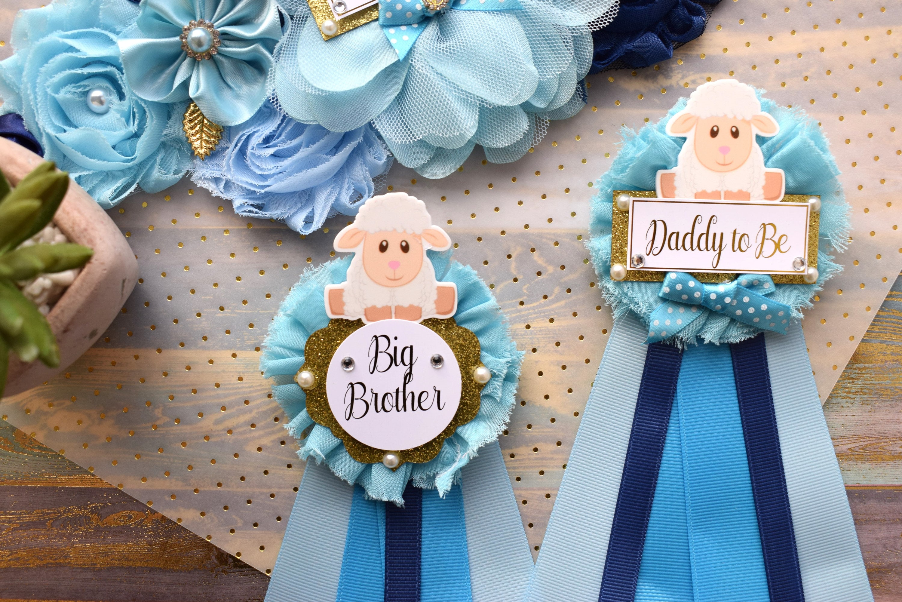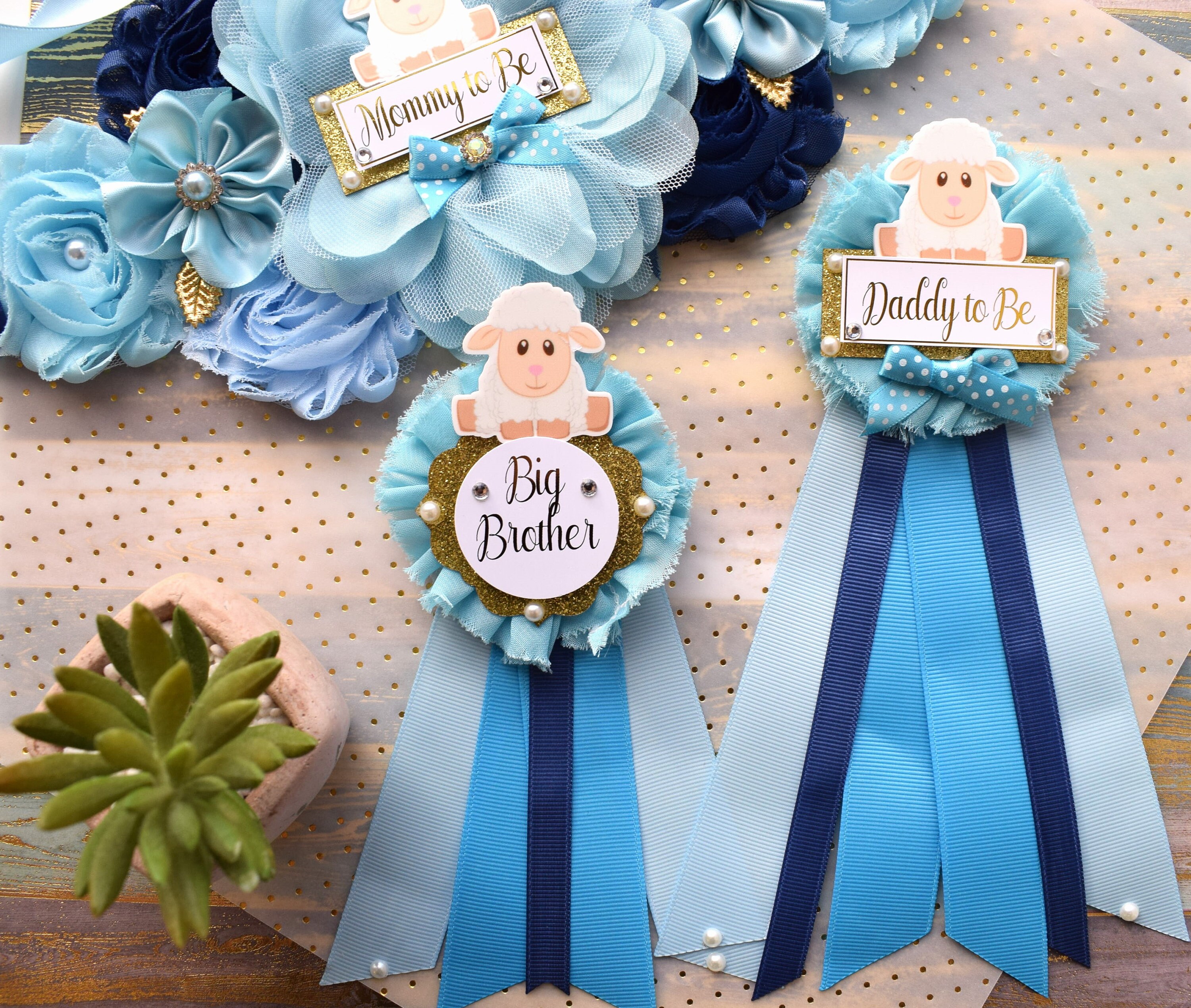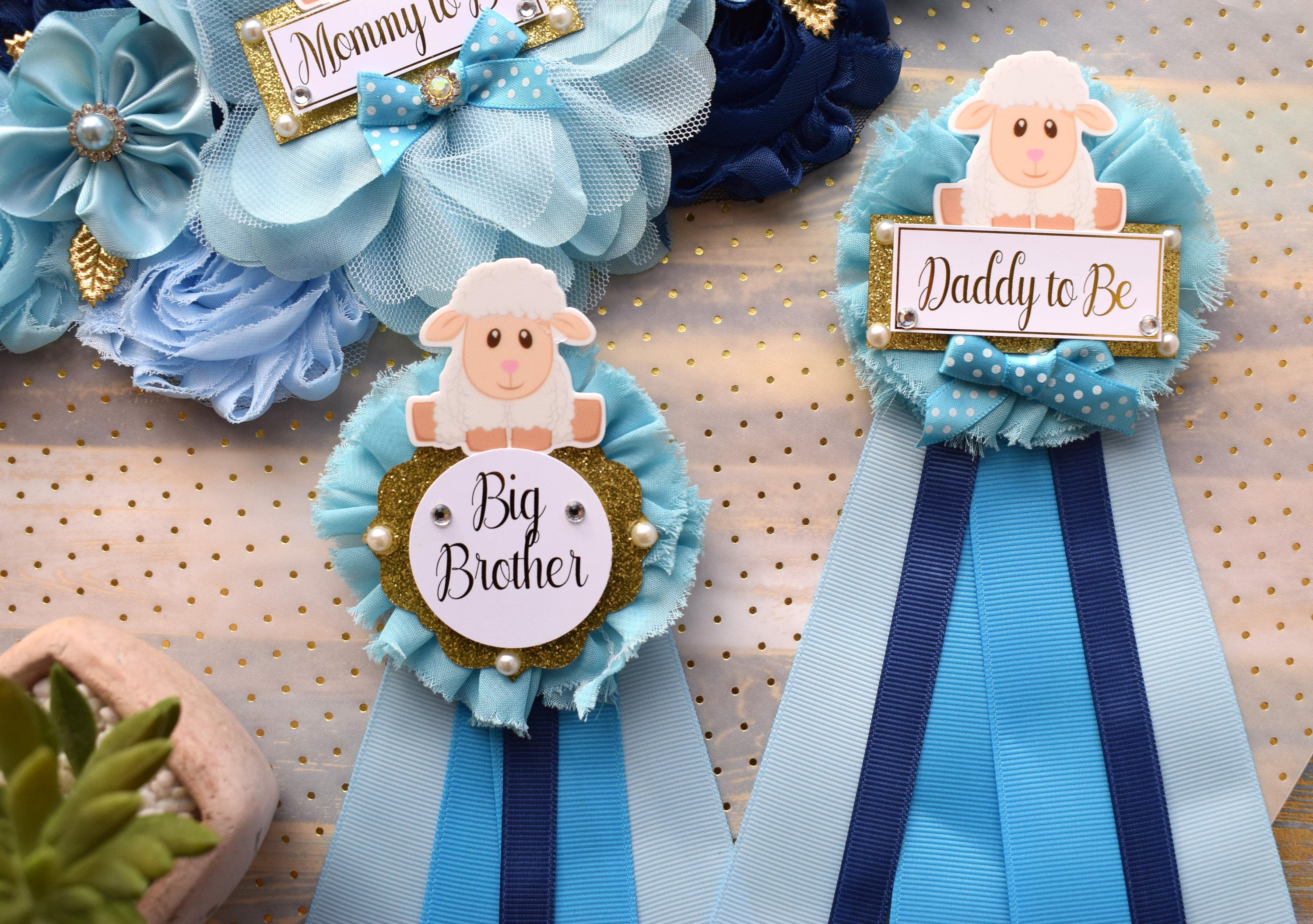 Boy Lamb Ribbon Corsage Pins, Sheep Lamb Mommy To Be Badge Baby Shower, Sheep Blue Mommy To Be Pin, Sheep Lamb Daddy To Be Pin, Lamb Shower