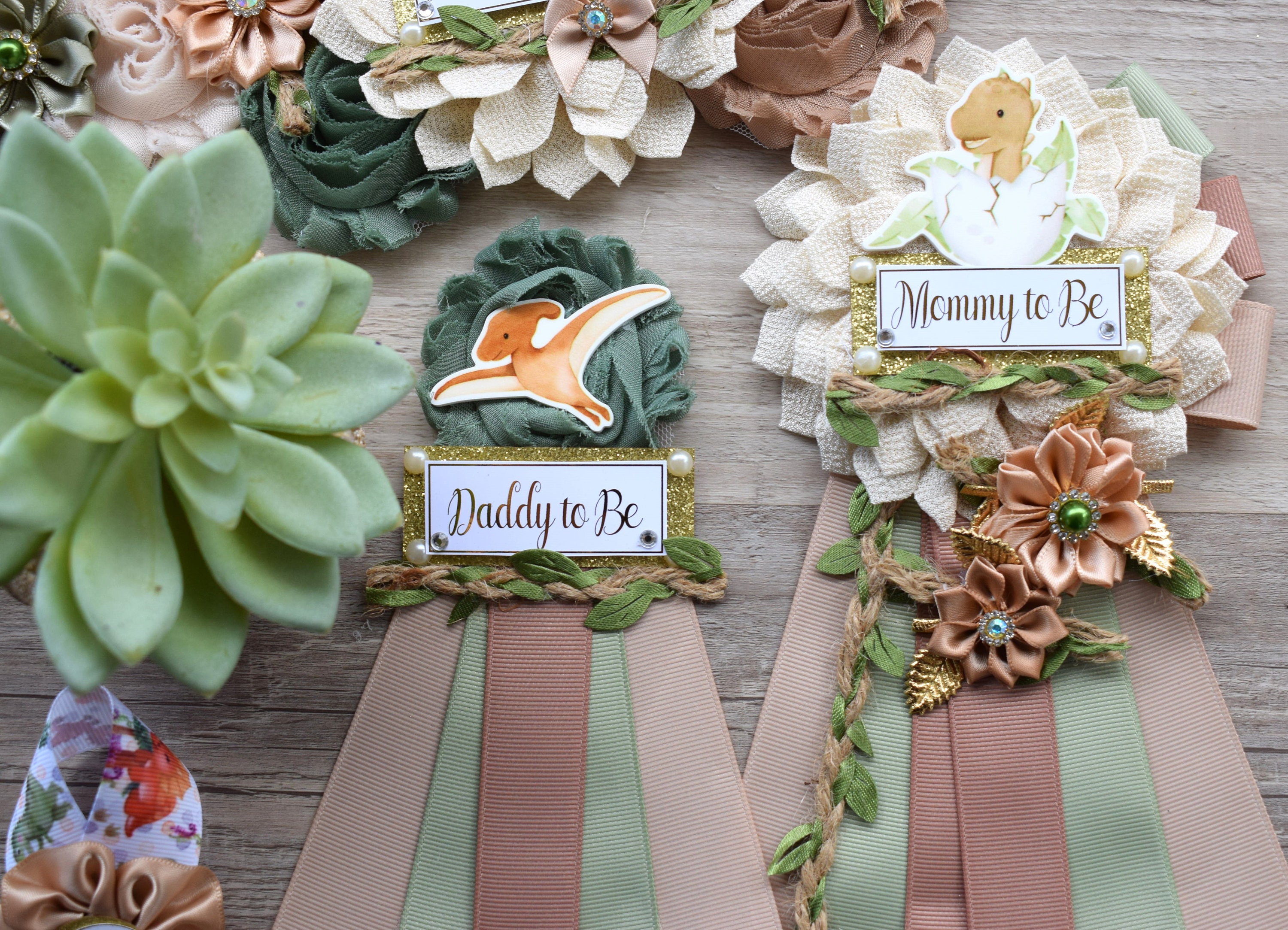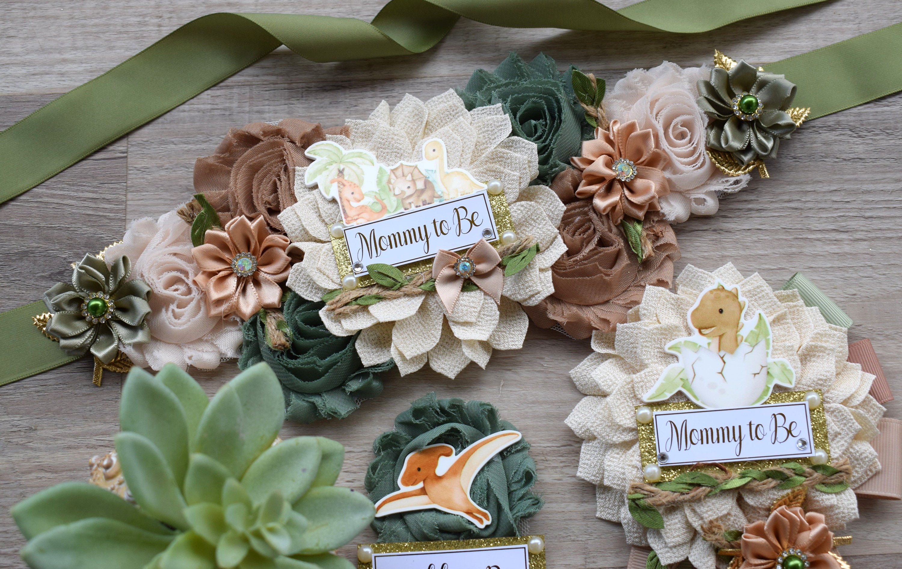 Boho Dinosaur Baby Shower, Dinosaur Mommy To Be Ribbon, Dinosaur Maternity Sash, Dinosaur Daddy to Be, Dinosaur Green Brown, Custom Set