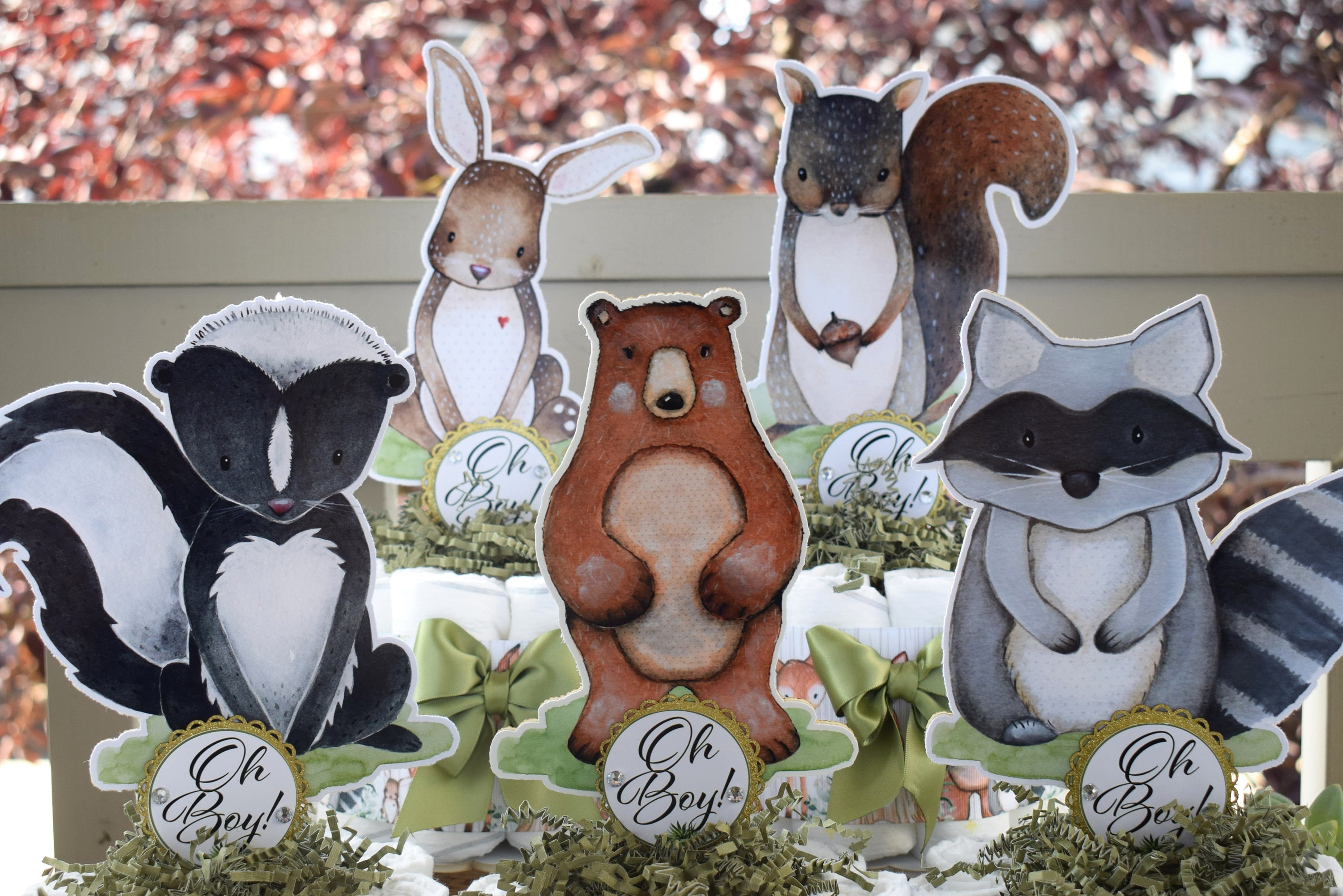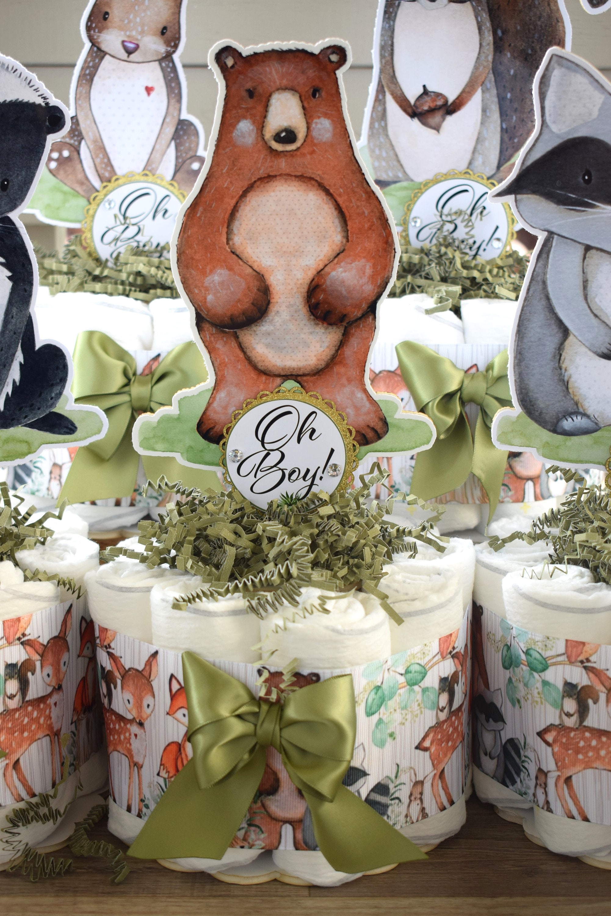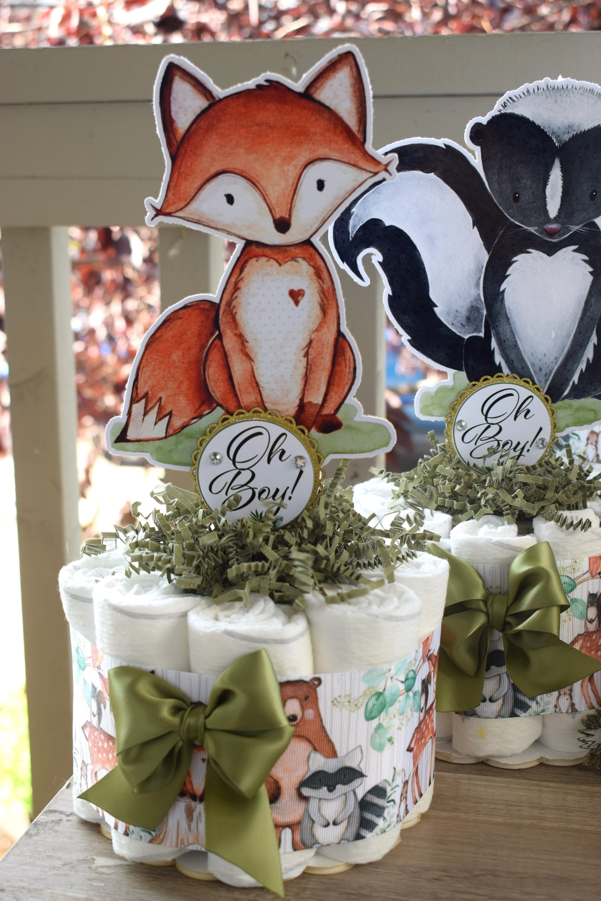 This Gorgeous Woodland Diaper Cakes are the perfect centerpieces for your baby shower. We can match any shower theme.