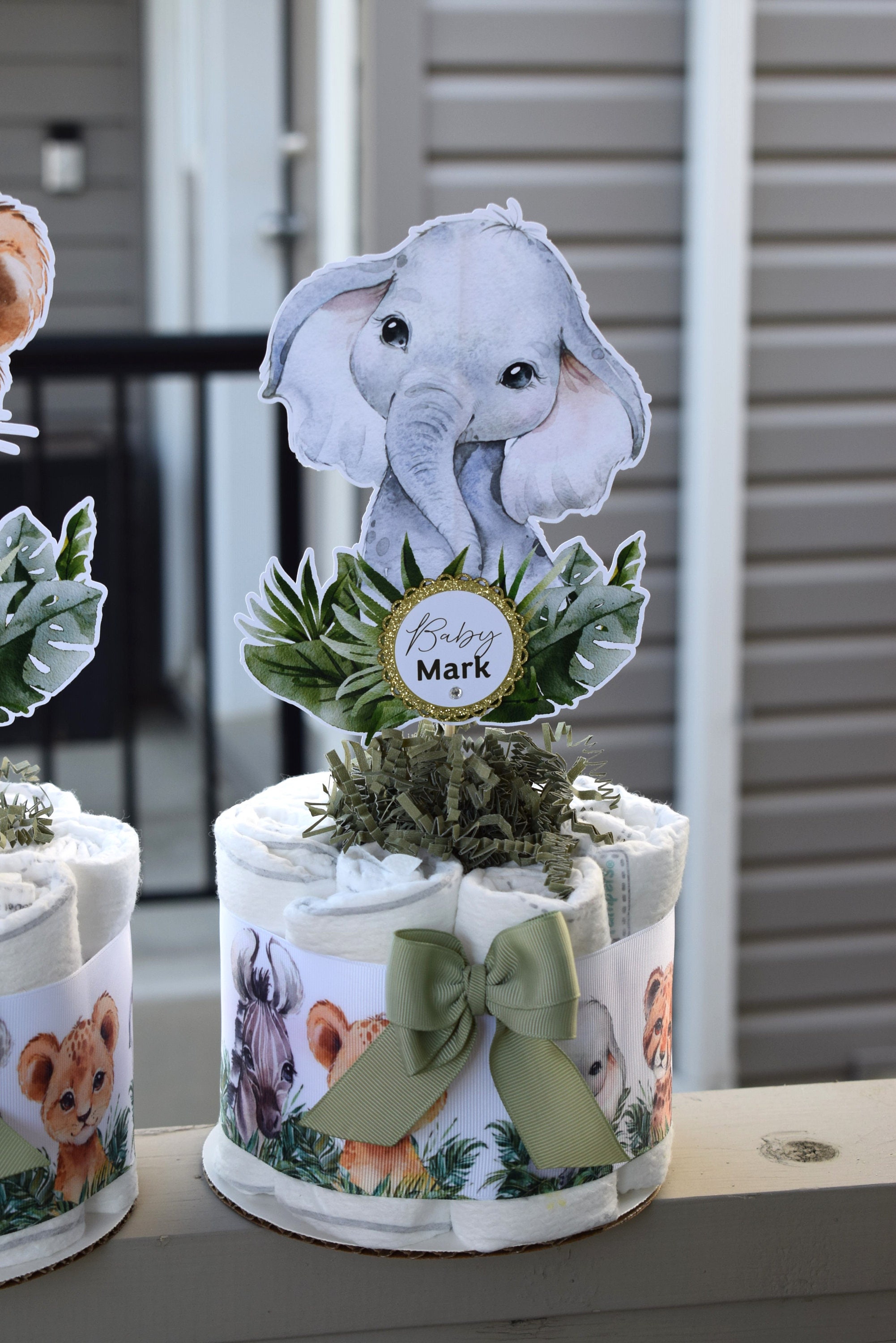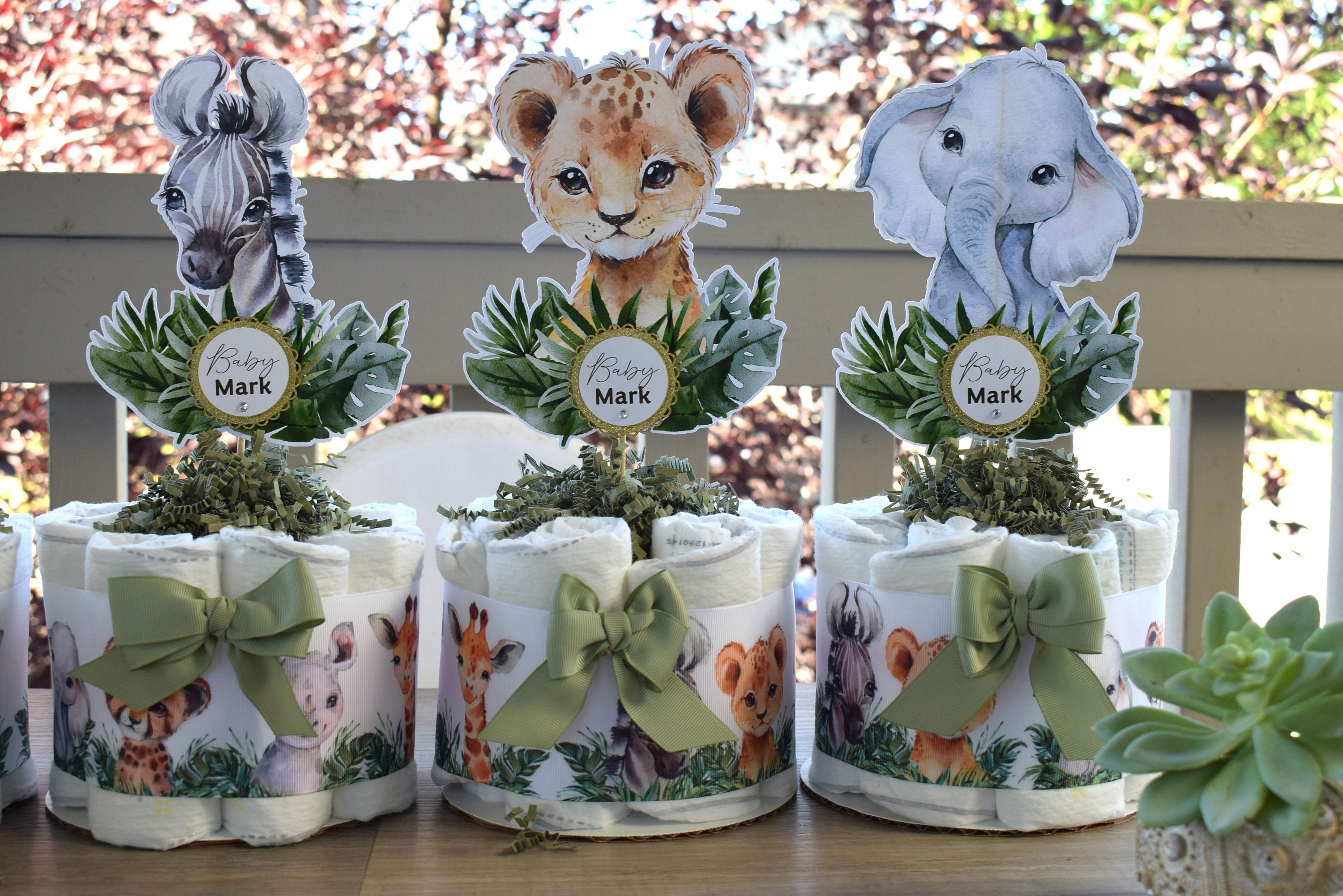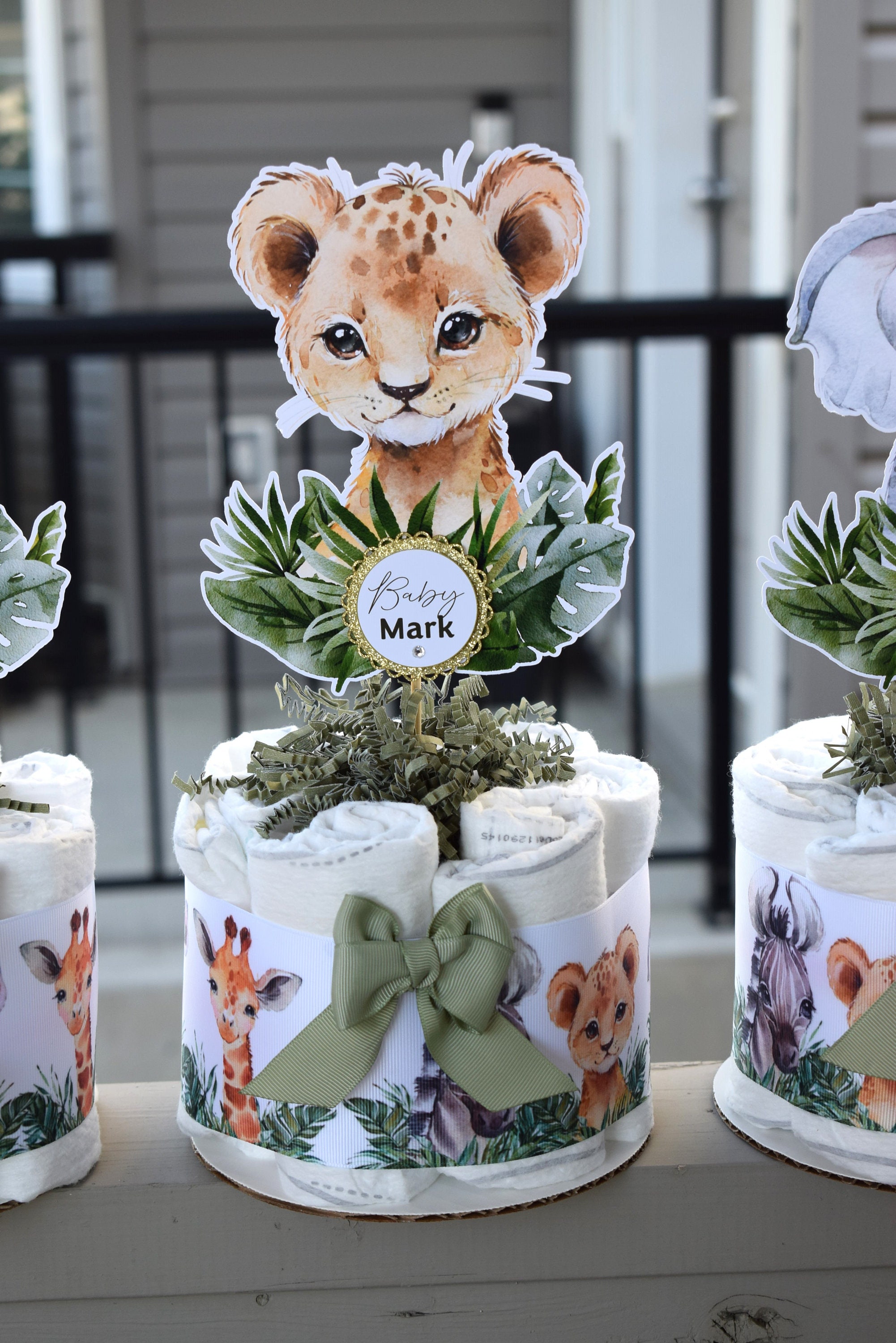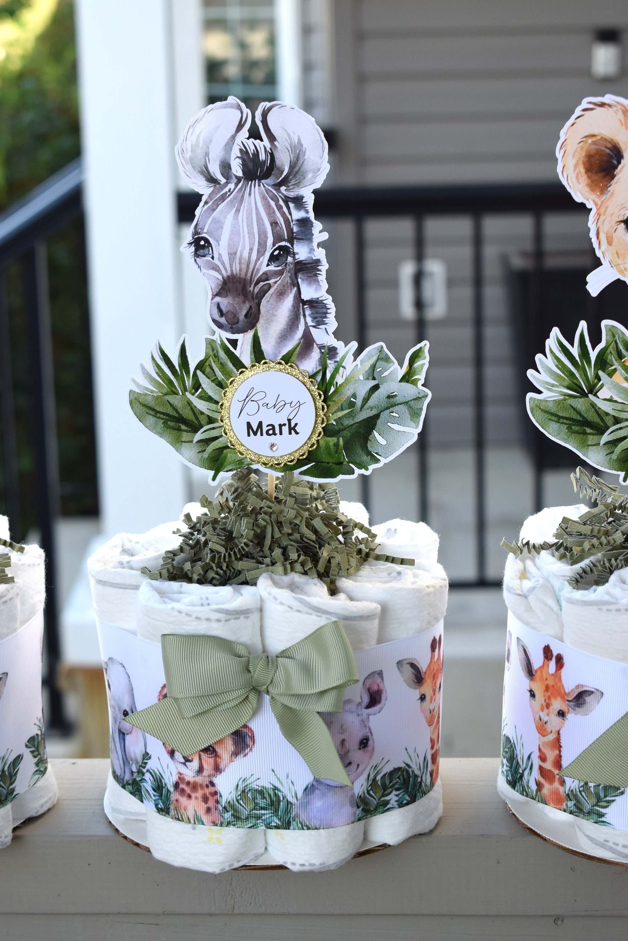 Jungle Safari Mini Diaper Cake Baby Shower, Baby Shower Centerpieces Decorations, Boy Room Nursery Decor, New Mom Gifts, Baby Shower Gift