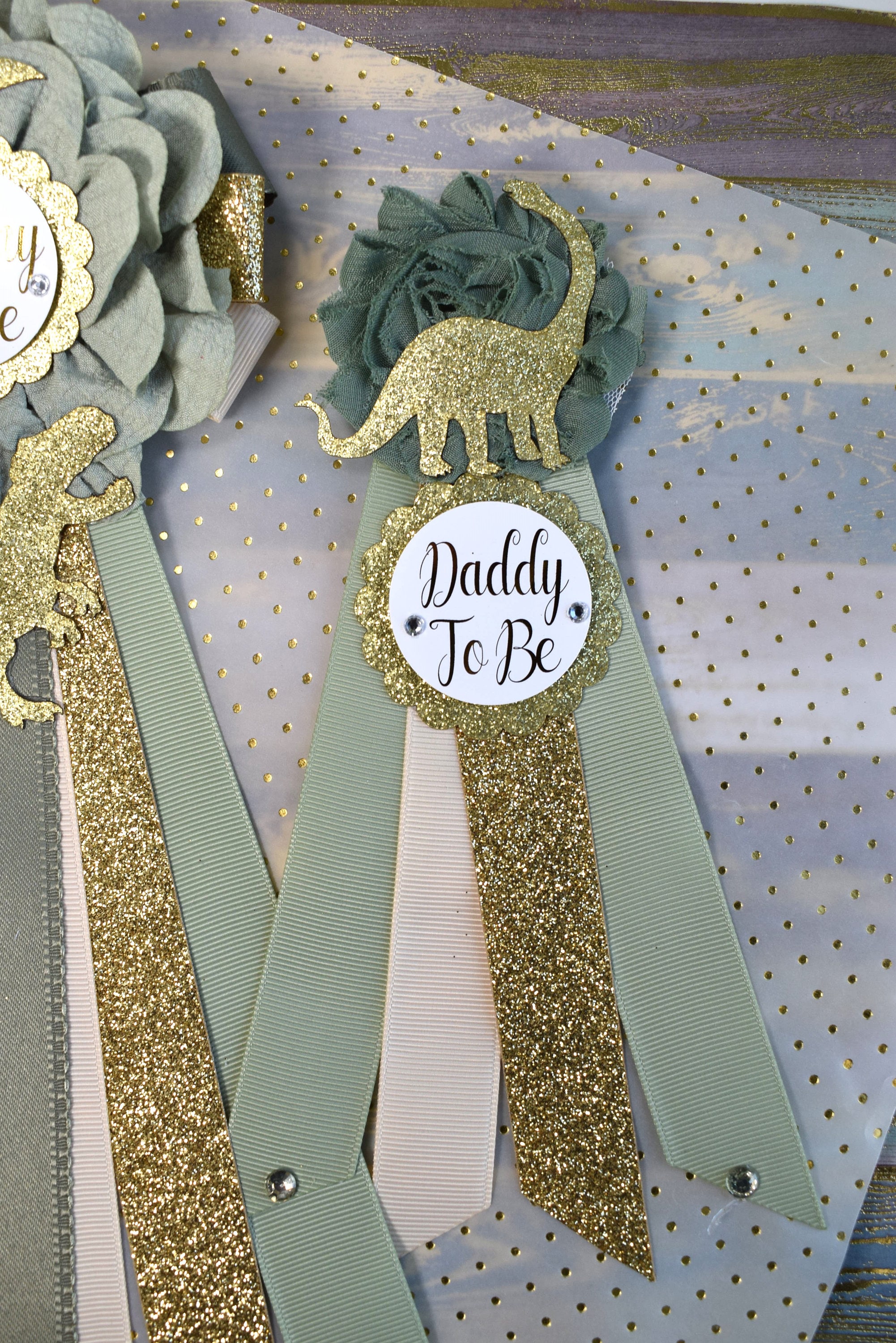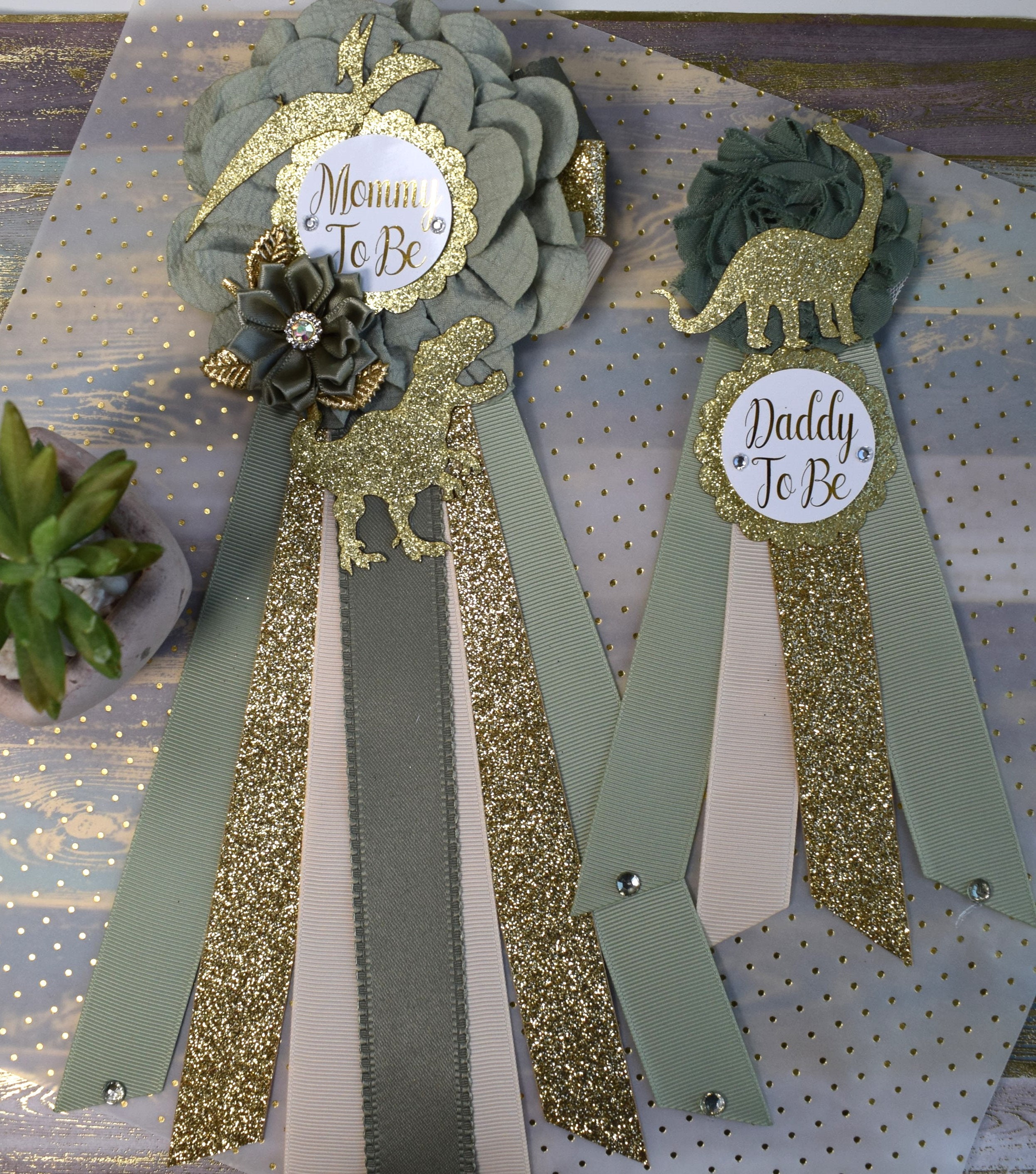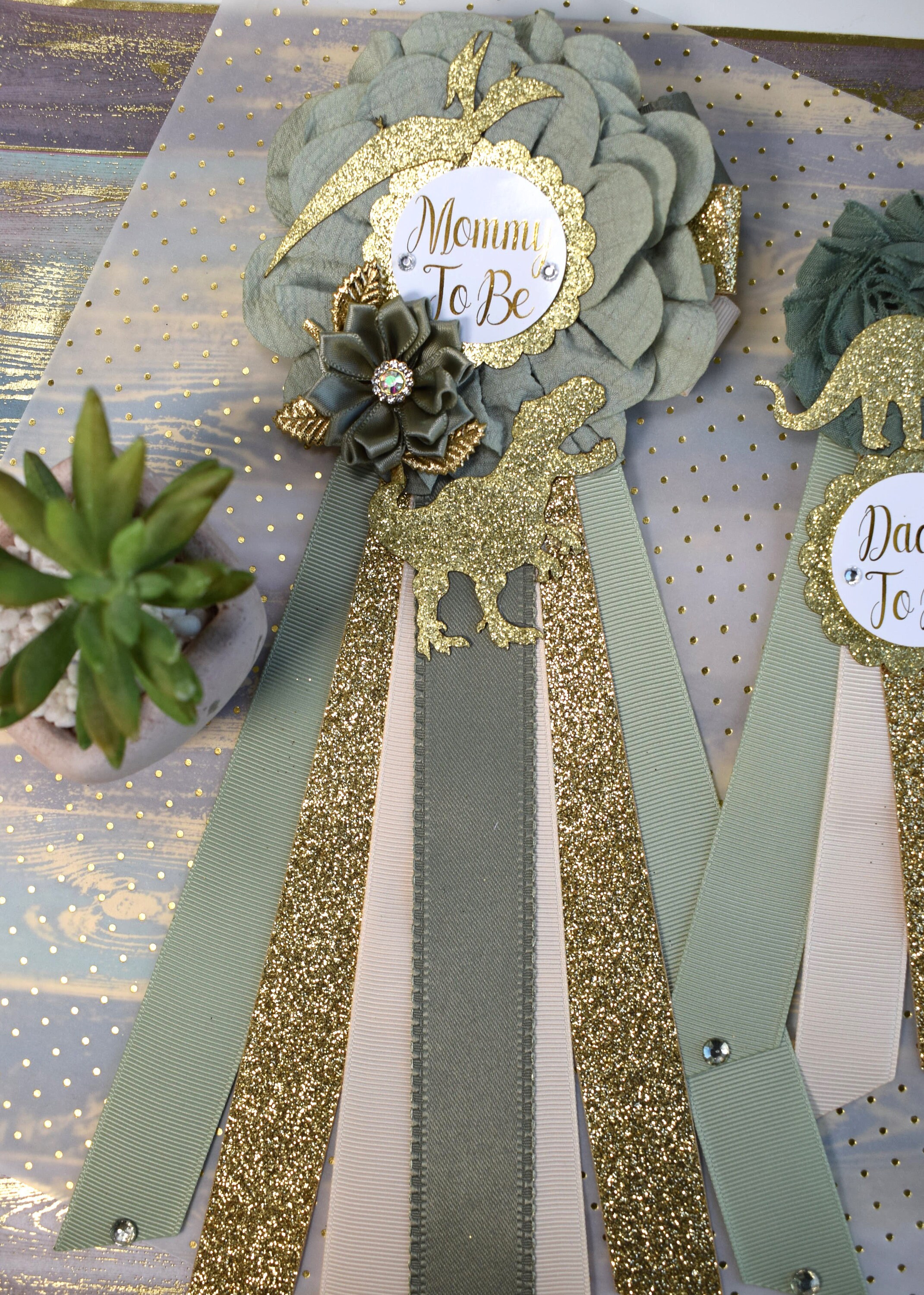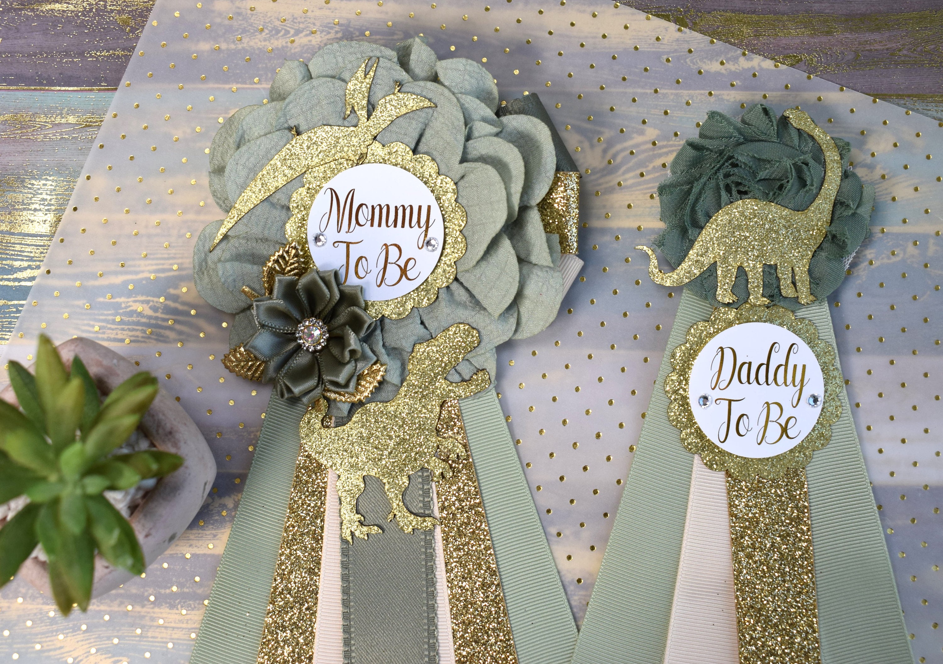 Dinosaur Baby Shower, Green Gold Flower Sash, Gold Dinosaur Animals, Greenery Gold Maternity Sash, Green Gold Dinosaur Baby Shower, Custom