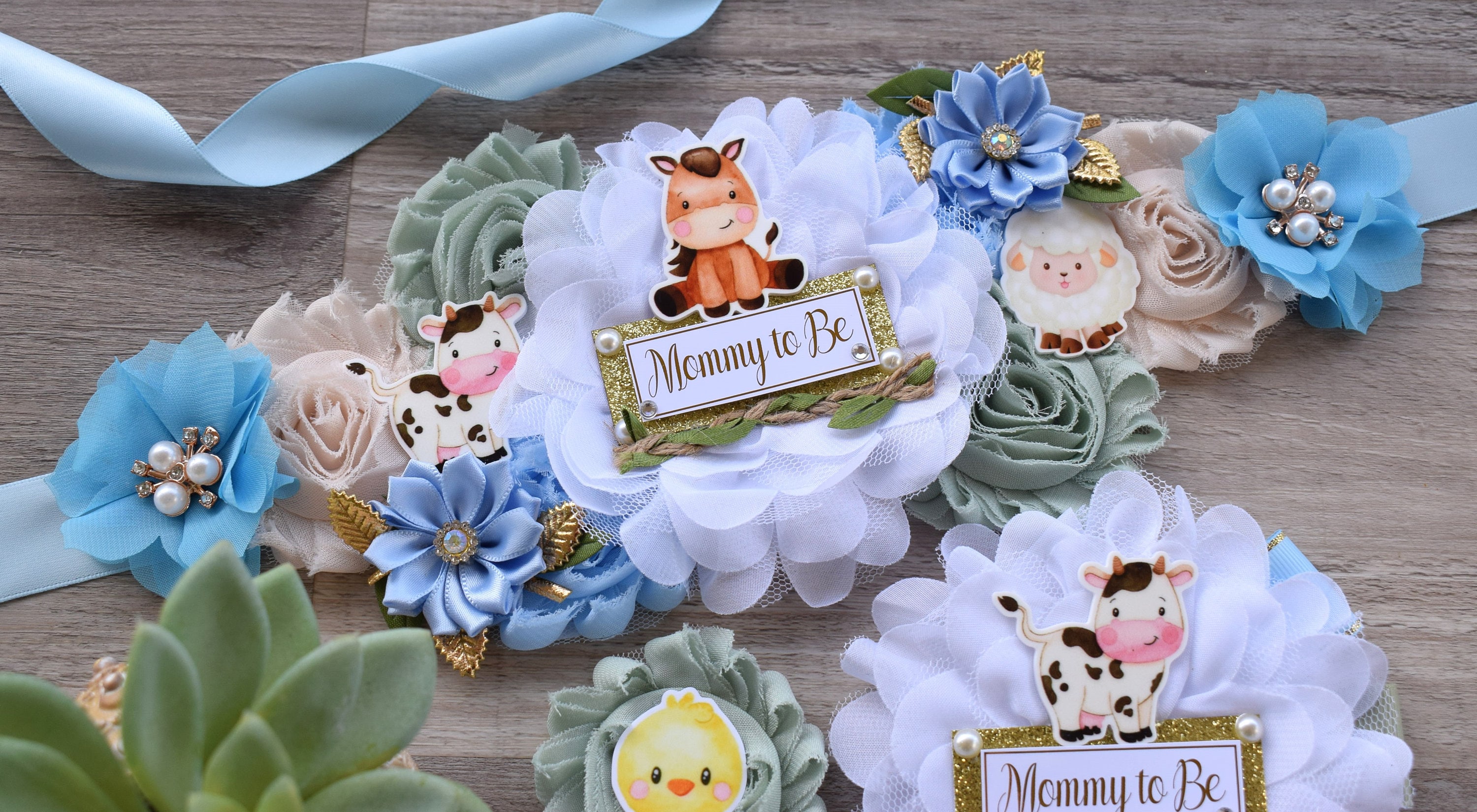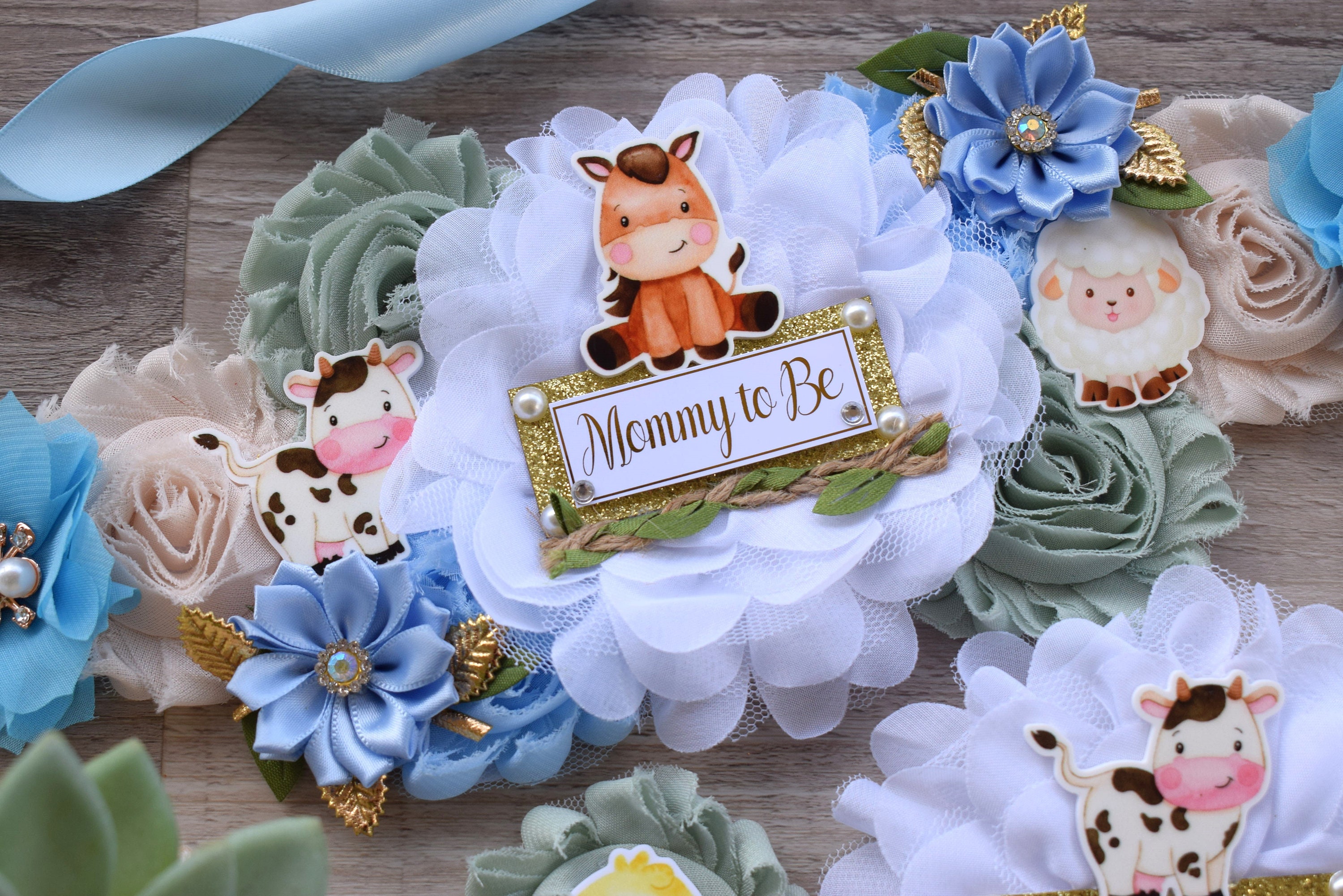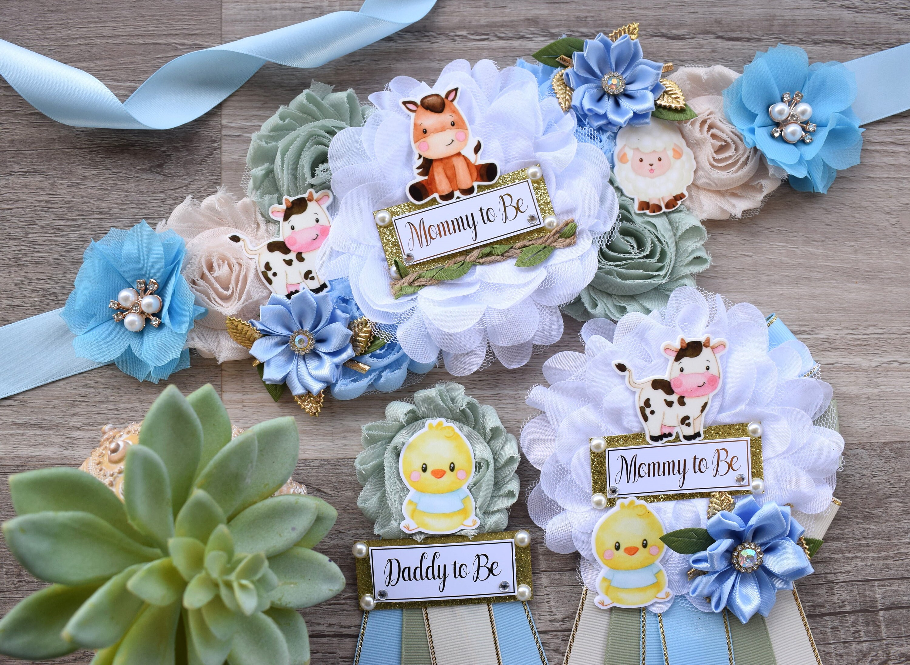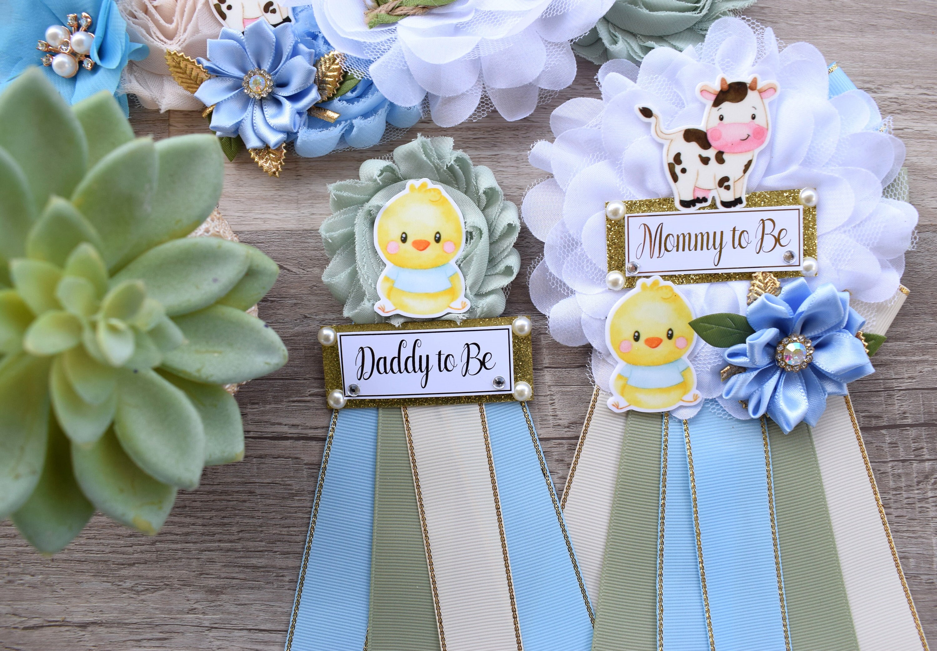 Boy Farm Animal Baby Shower, Barn Animal Baby Shower, Cow Sheep Horse Mommy To Be Ribbon Pin, Farm Daddy To Be Ribbon Pin, Baby Shower Gift - S0007