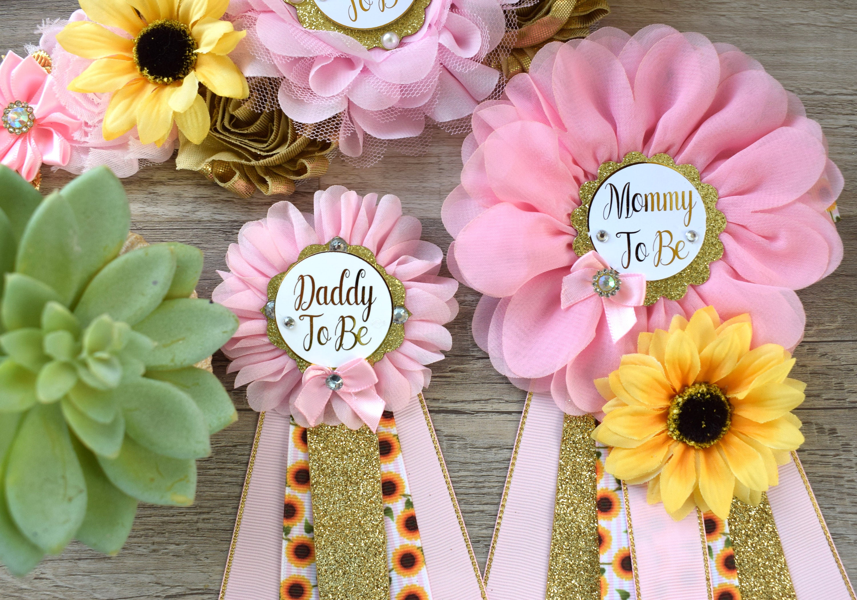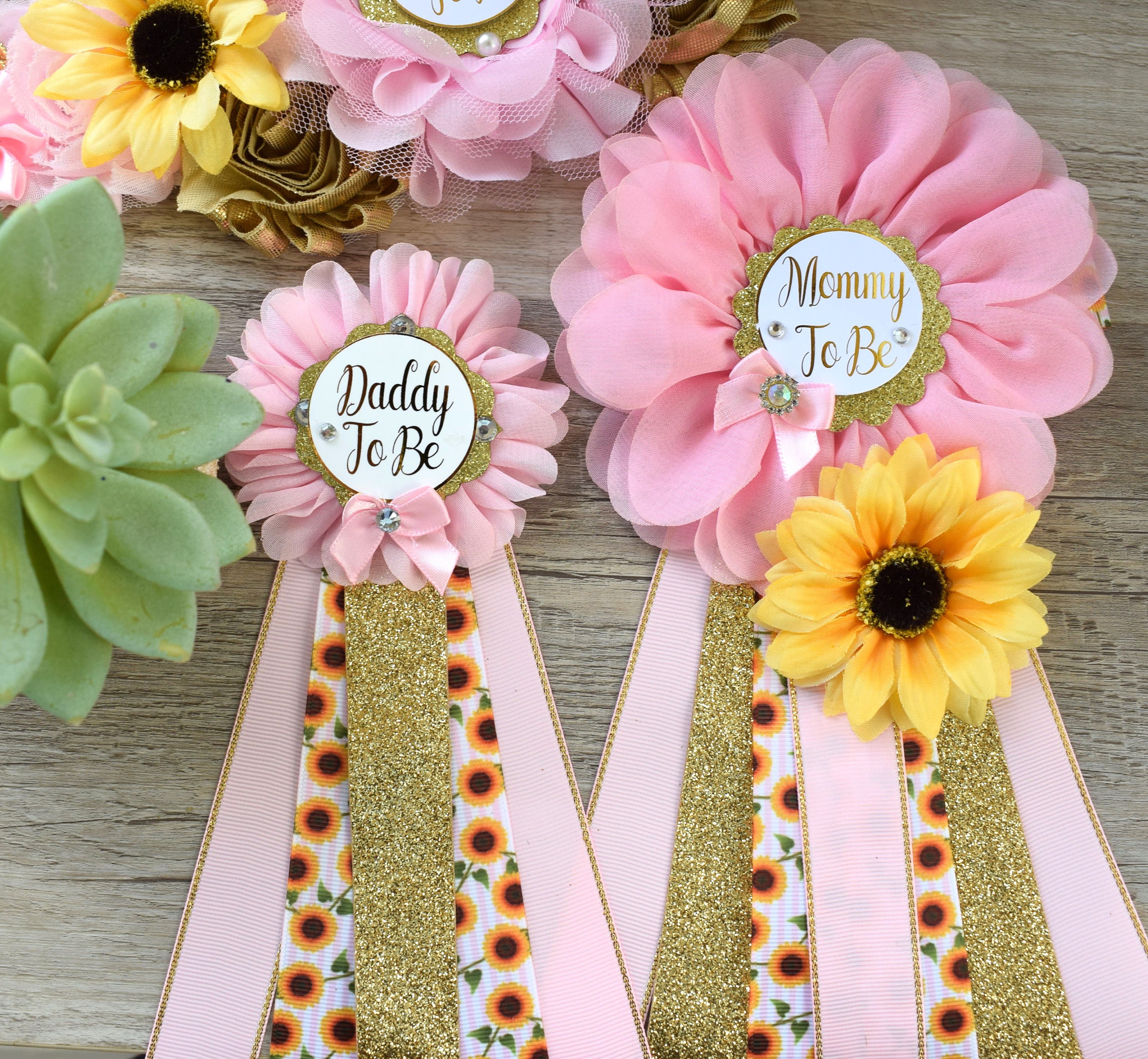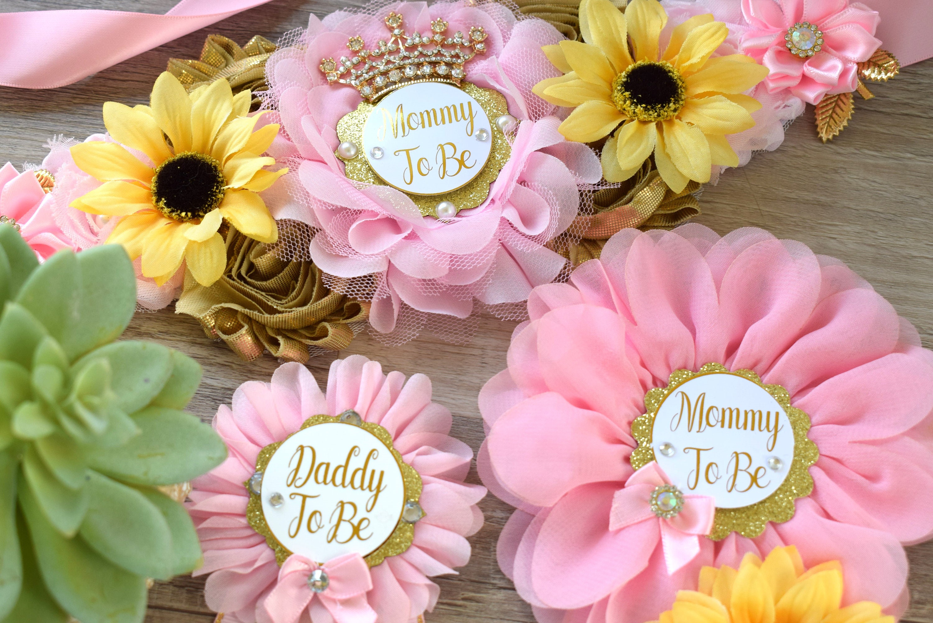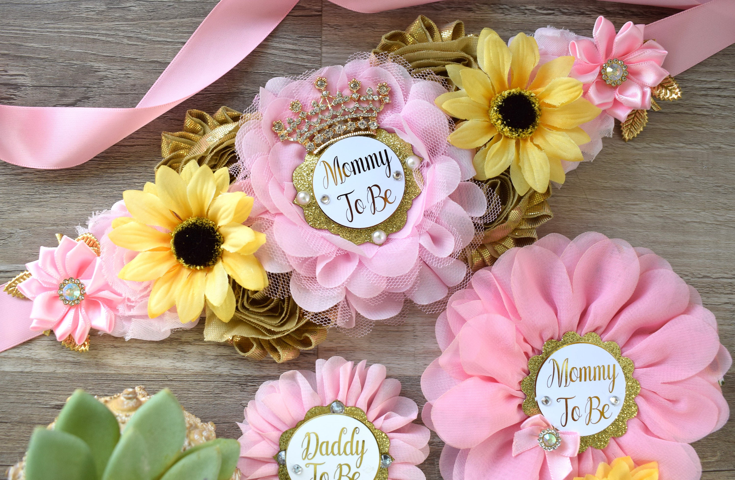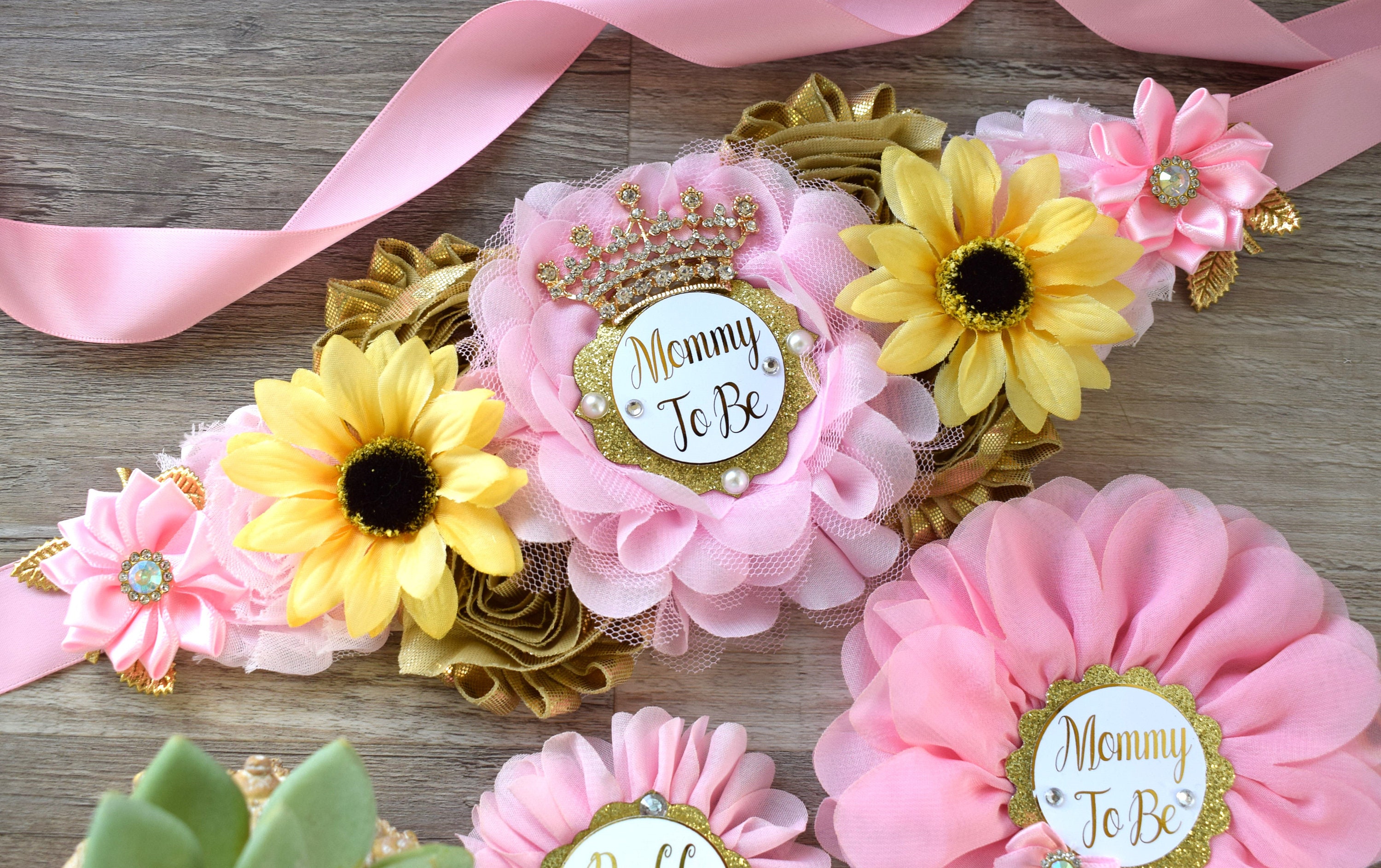 Pink Sunflower Baby Shower, Yellow Gold Pink Maternity Sash, Girl Sunflower Baby Shower, Pink Sunflower Mommy to Be, Daddy To Be, Custom
