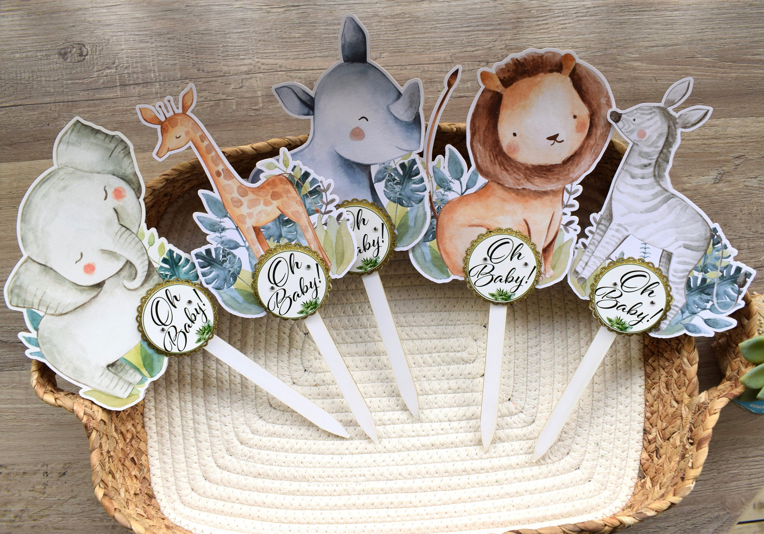 -Cake Topper: Animal cut out: 6.5" - 7"plus the stick is 12" (approx.).