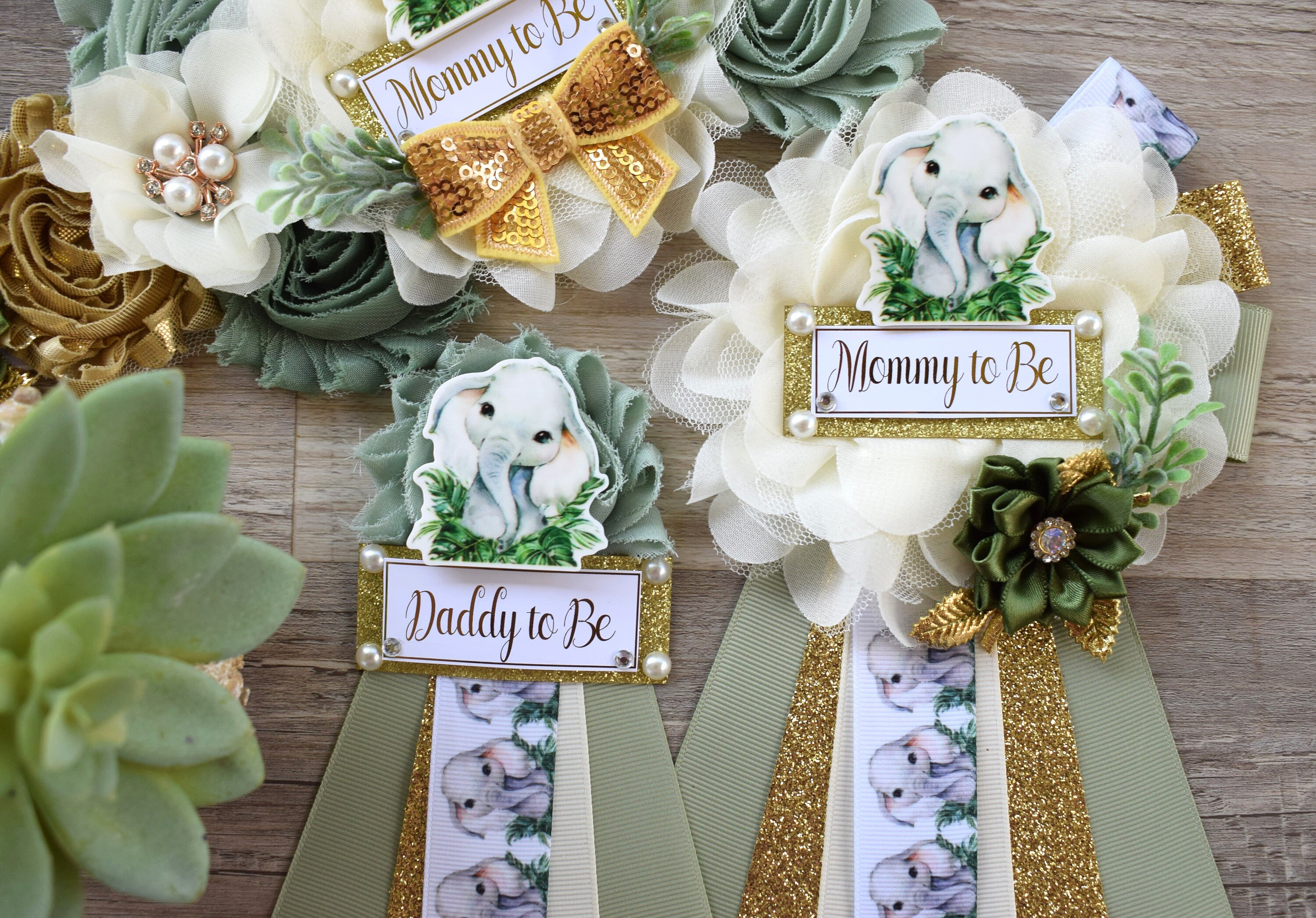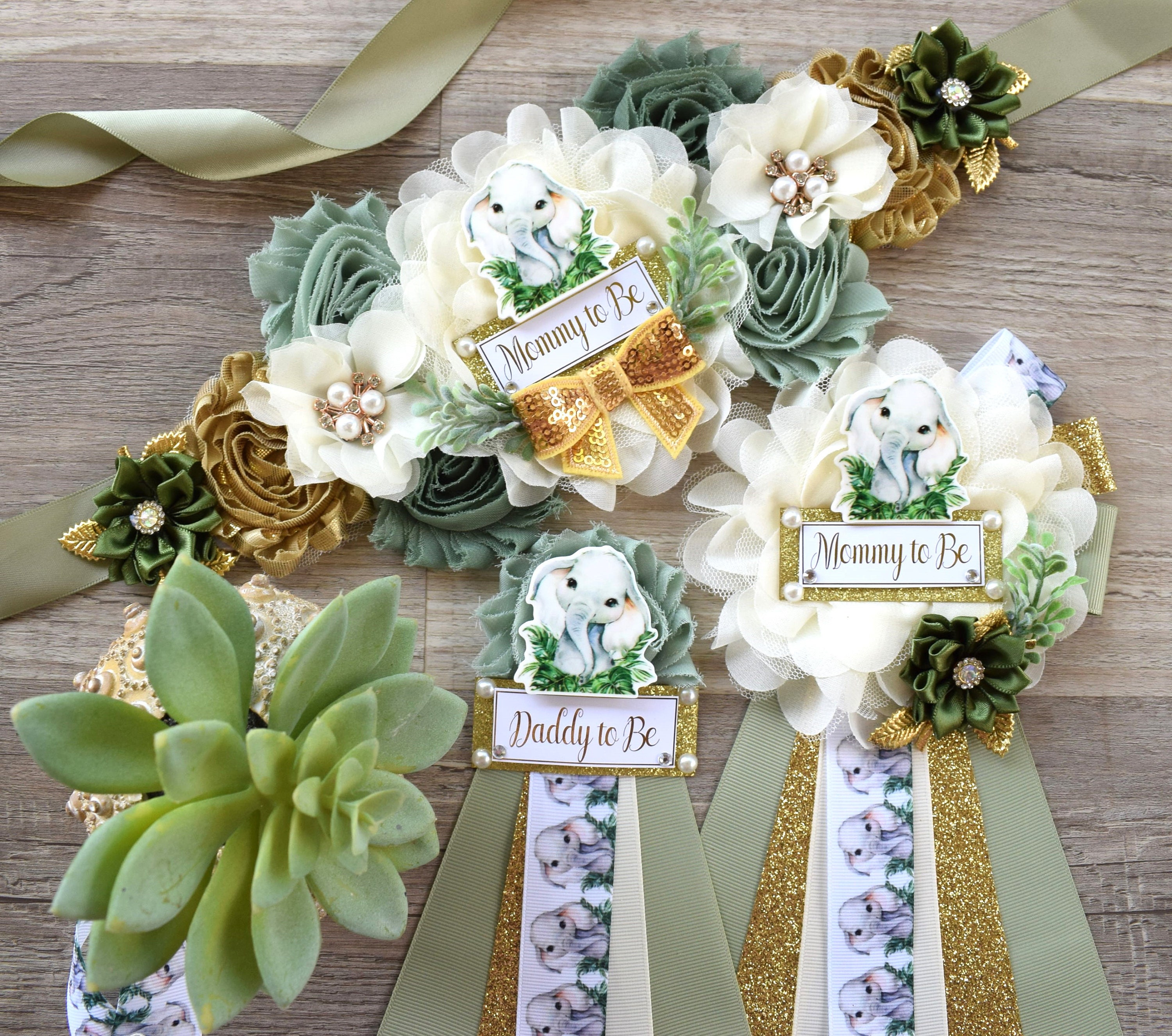 Elephant Safari Baby Shower, Sage Safari Maternity Sash, Elephant Mommy To Be Ribbon Pin, Daddy To Be Ribbon, Baby shower Gift - S0001