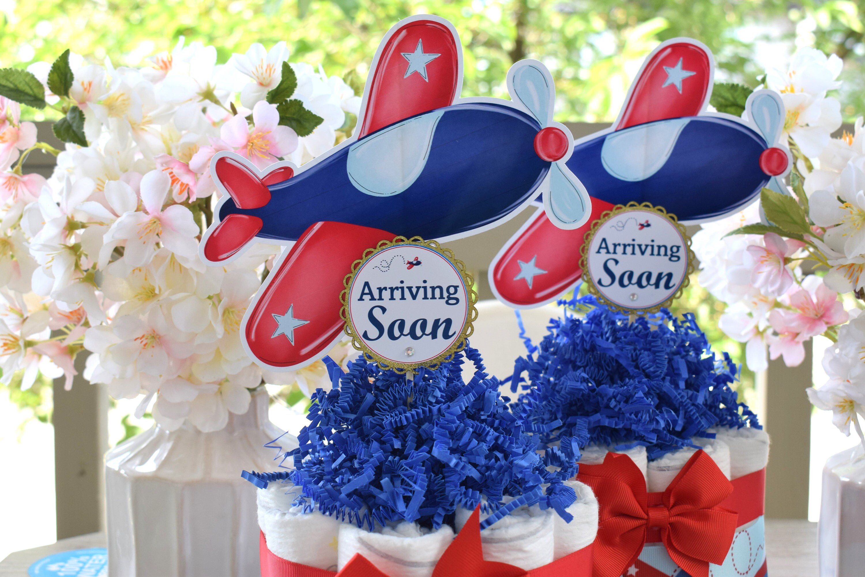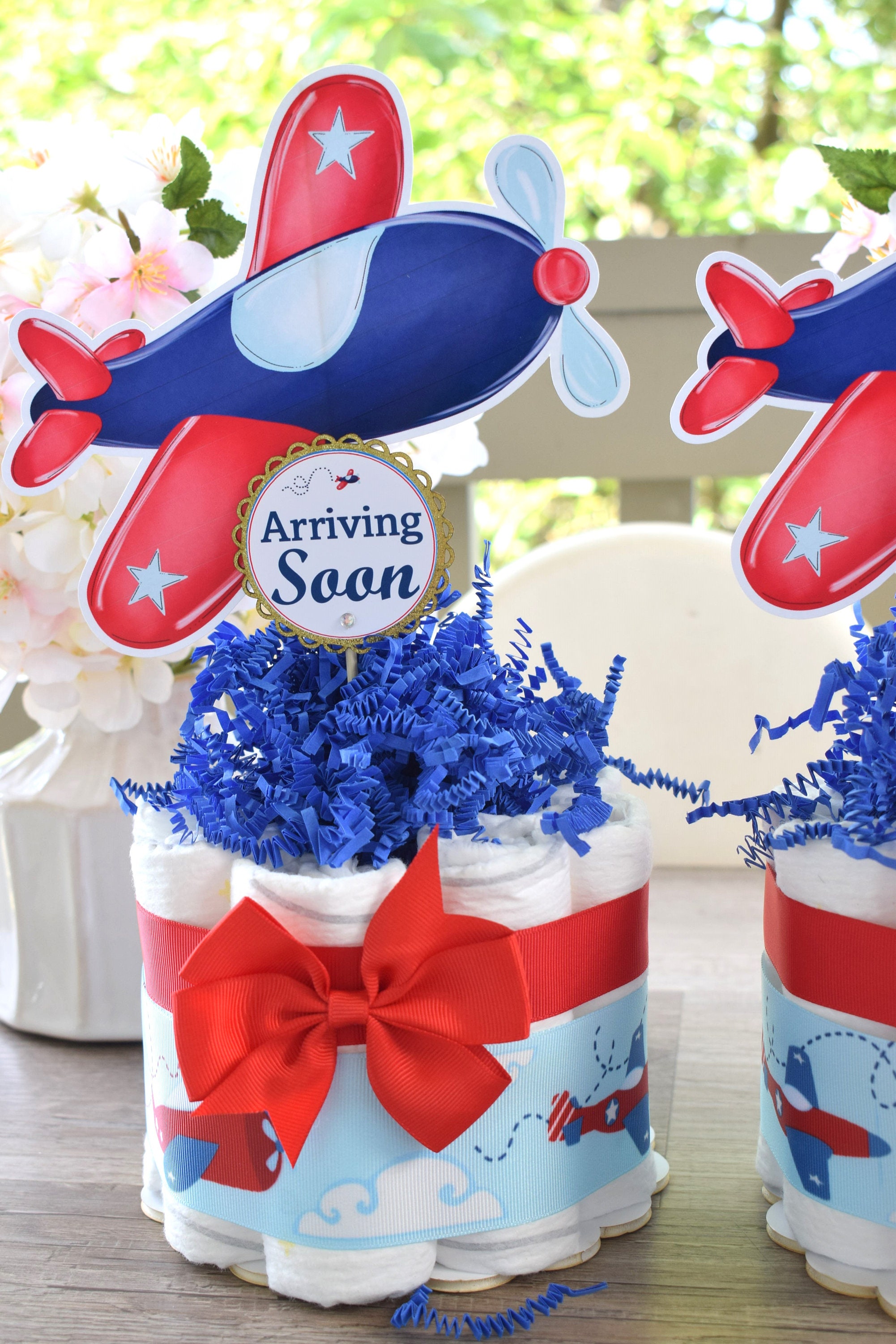 Airplane Mini Diaper Cake Baby Shower, Baby Shower Centerpieces Decorations, Girls Room Nursery Decor, New Mom Gifts, Baby Shower Gift