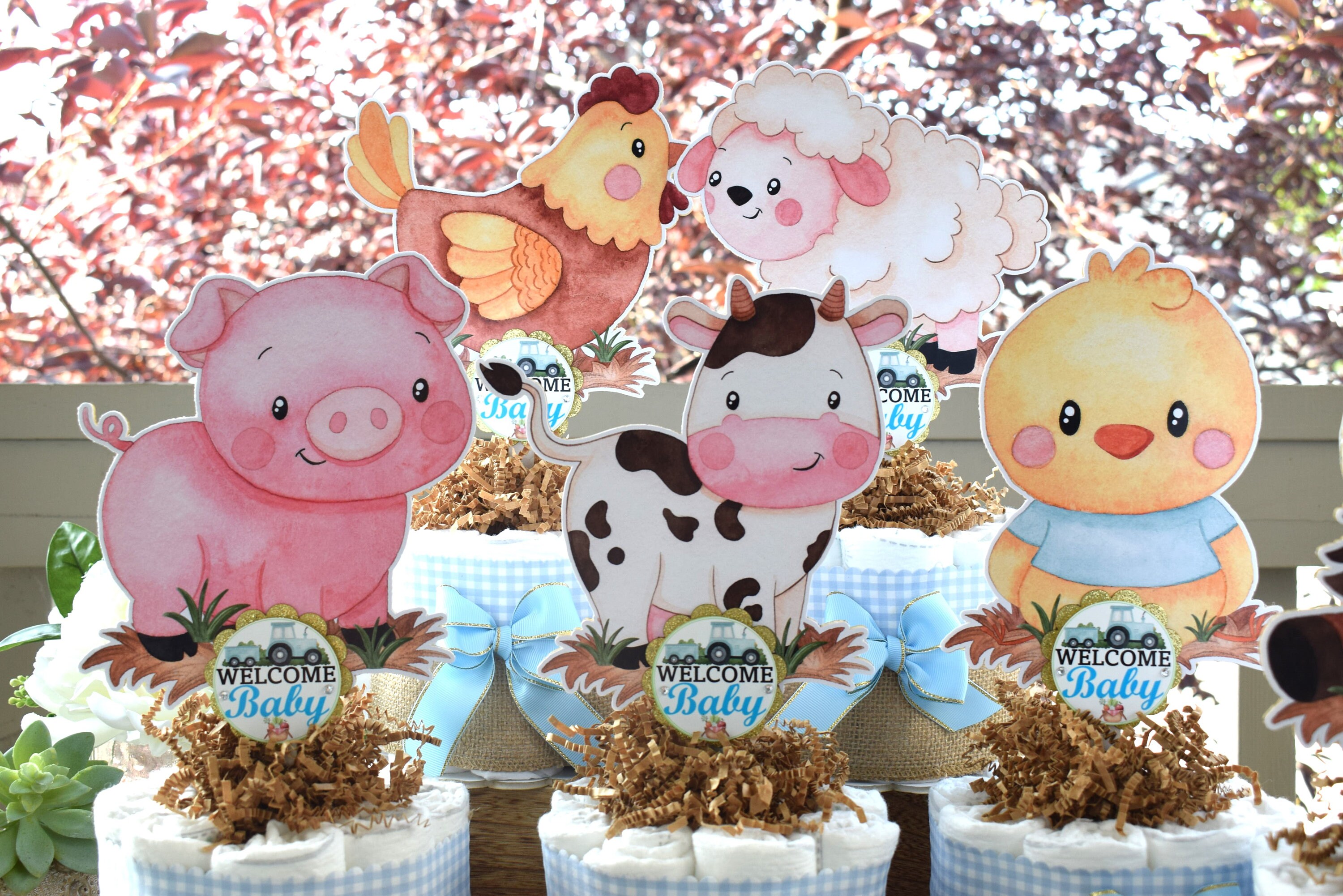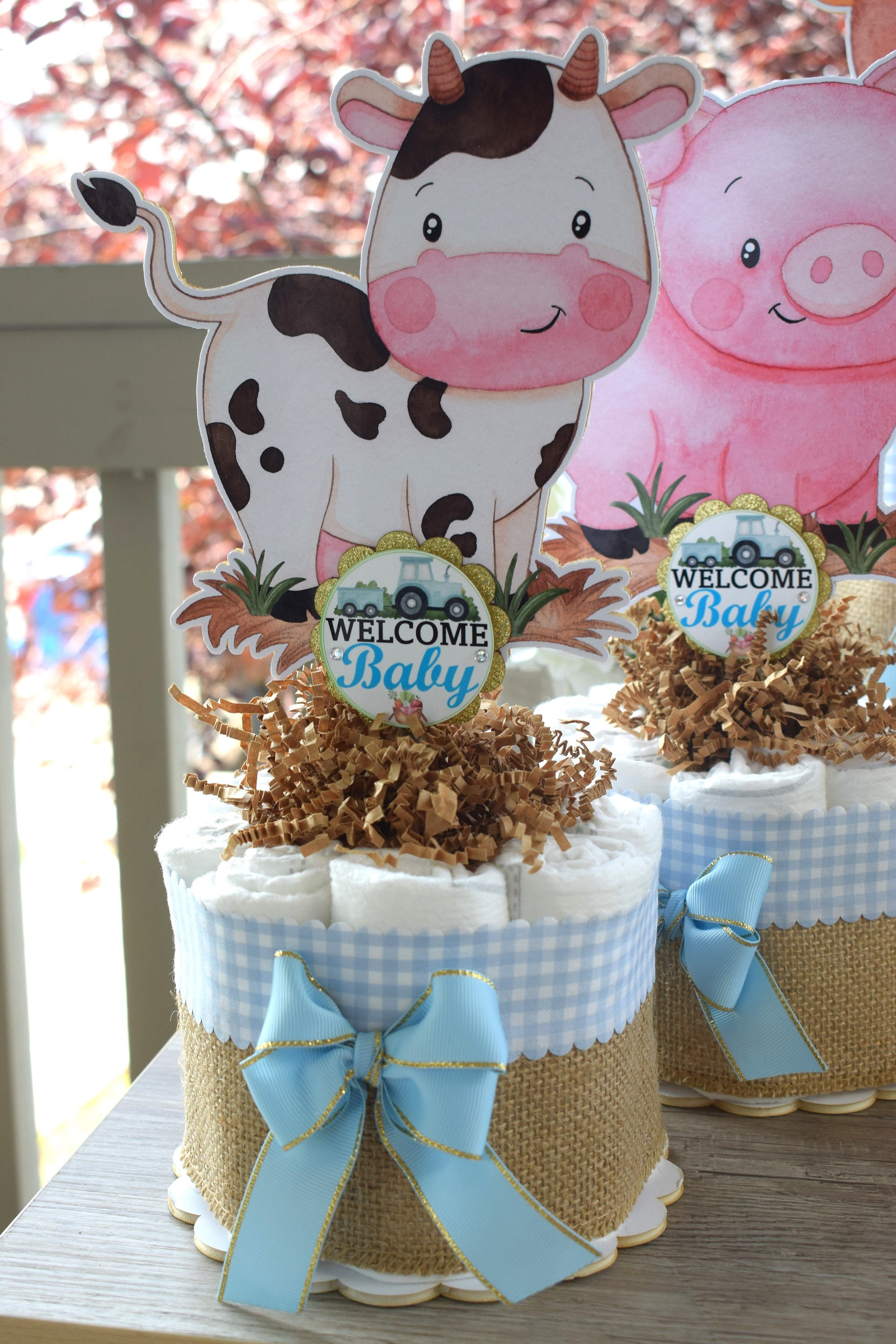 This Gorgeous Boy Farm Animal Diaper Cakes are the perfect centerpieces for your baby shower. We can match any shower theme.