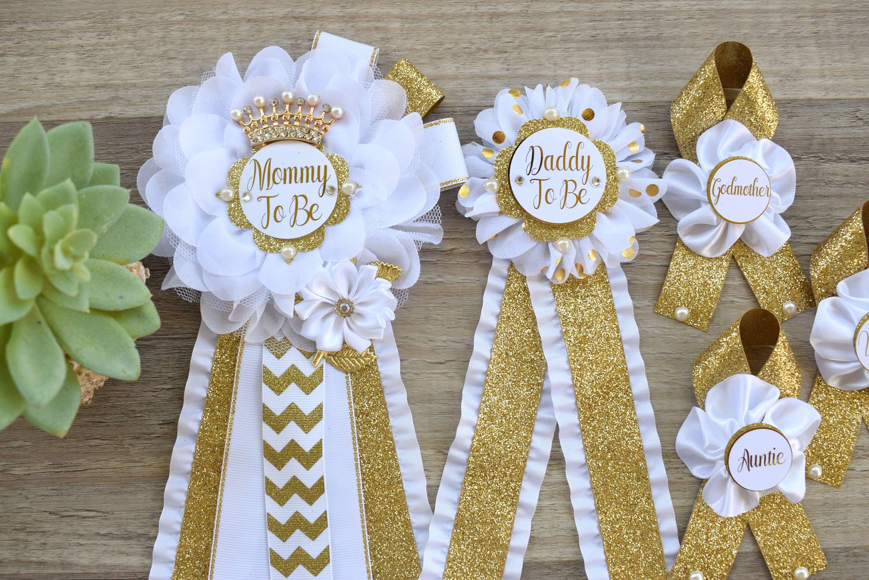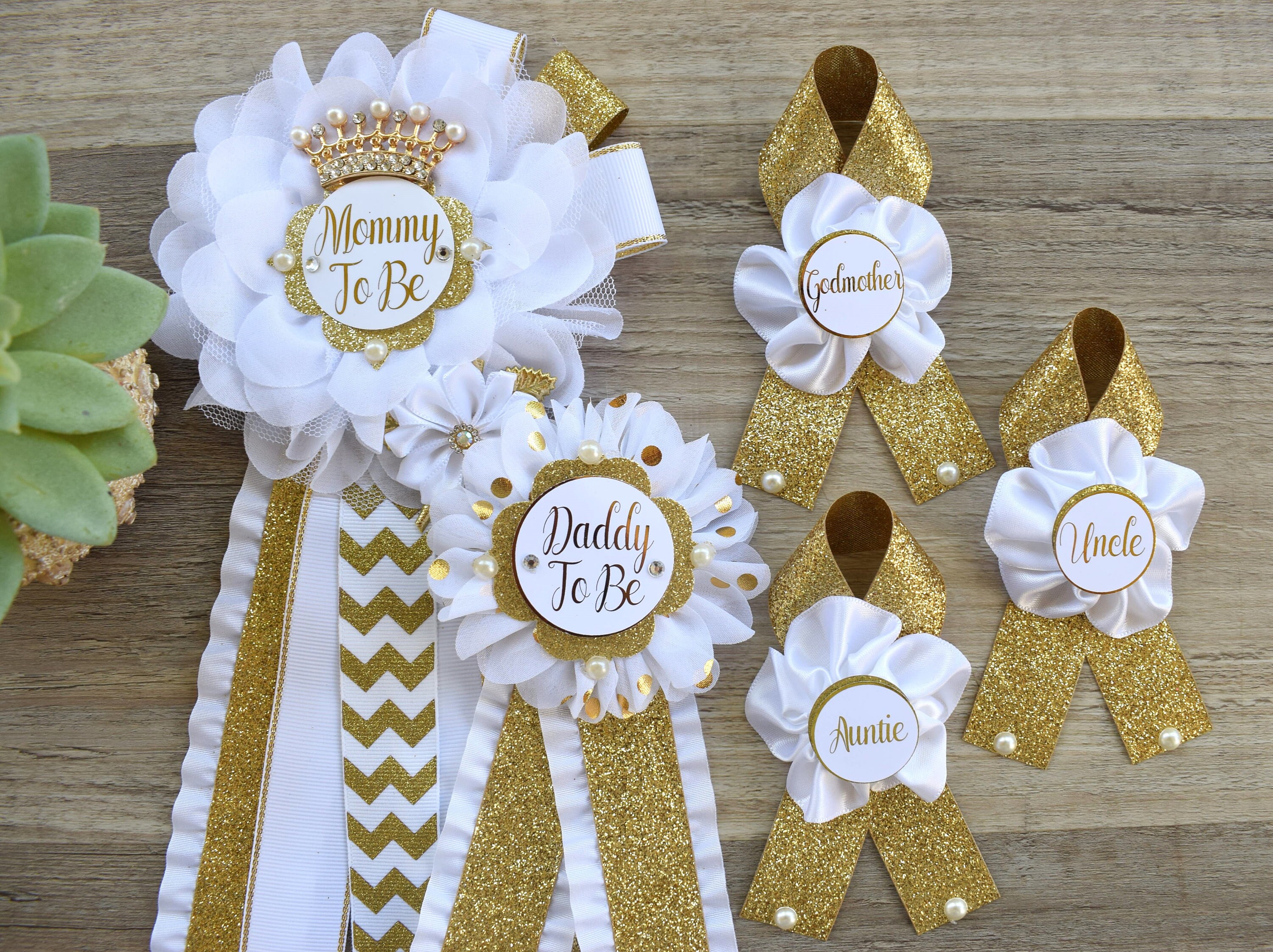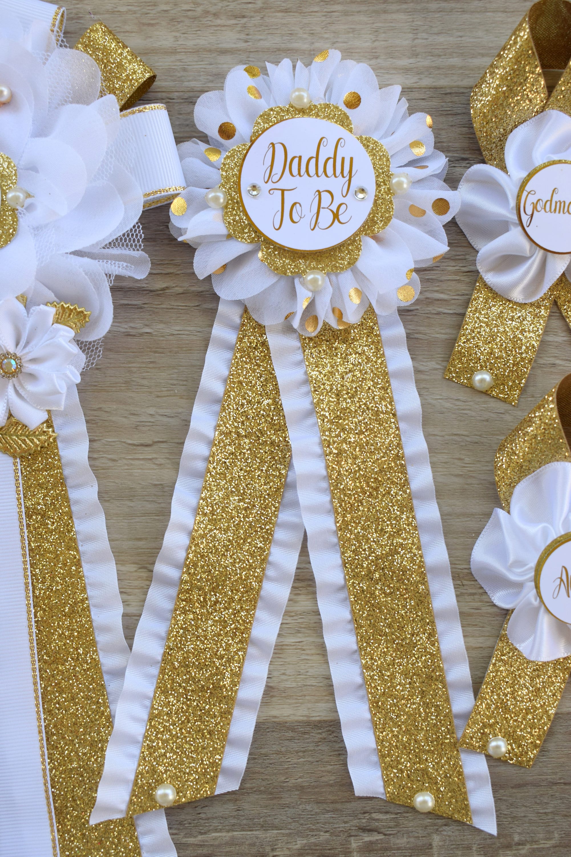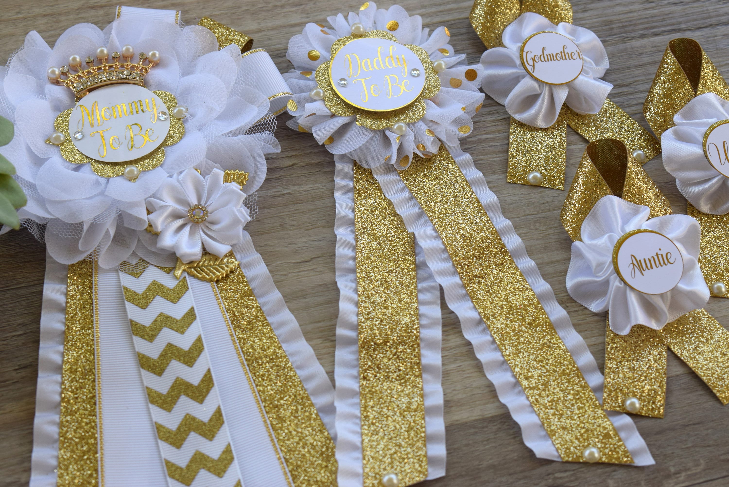 This Gold & White Pins are made especially for a Baby Shower or a Photo Prop.