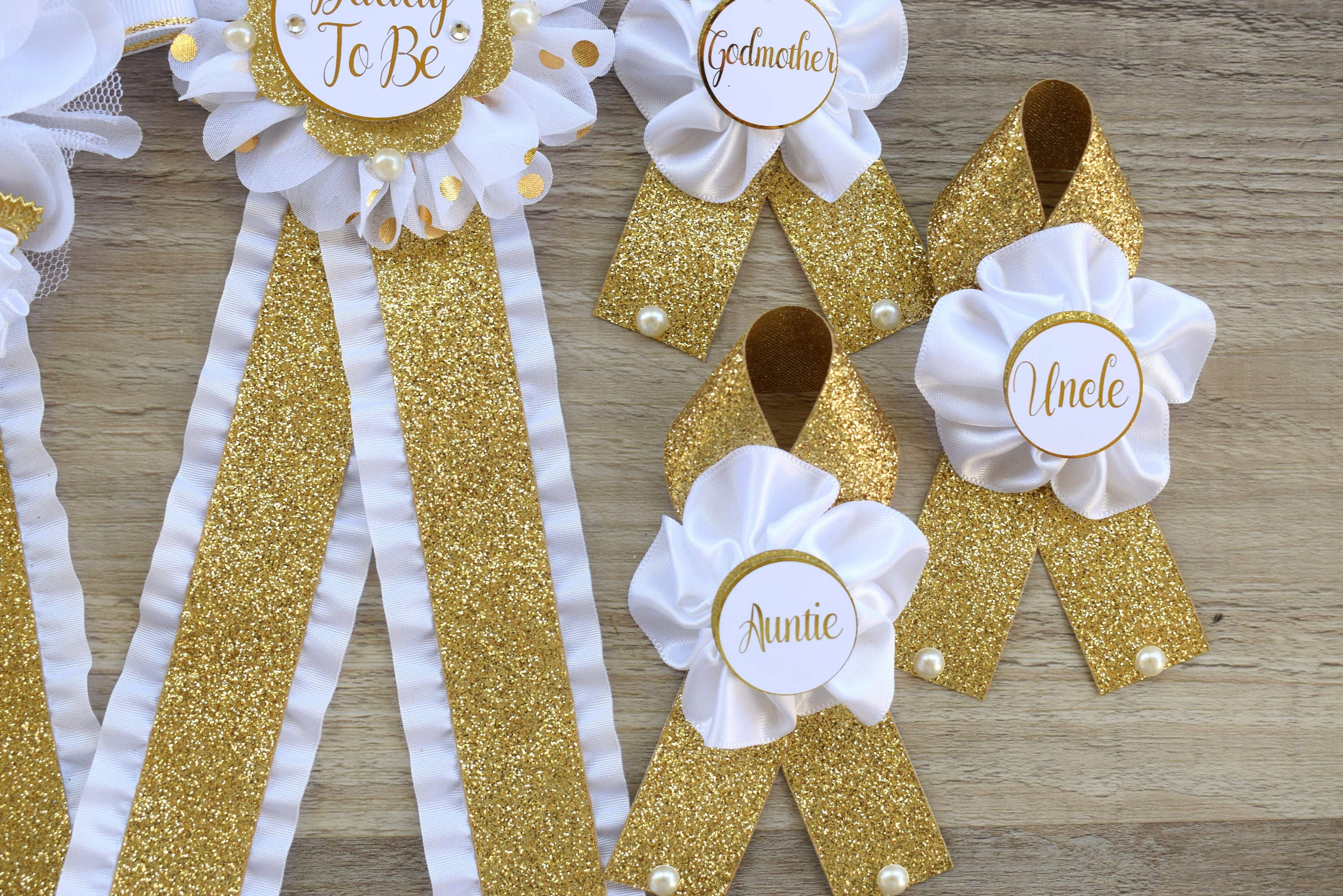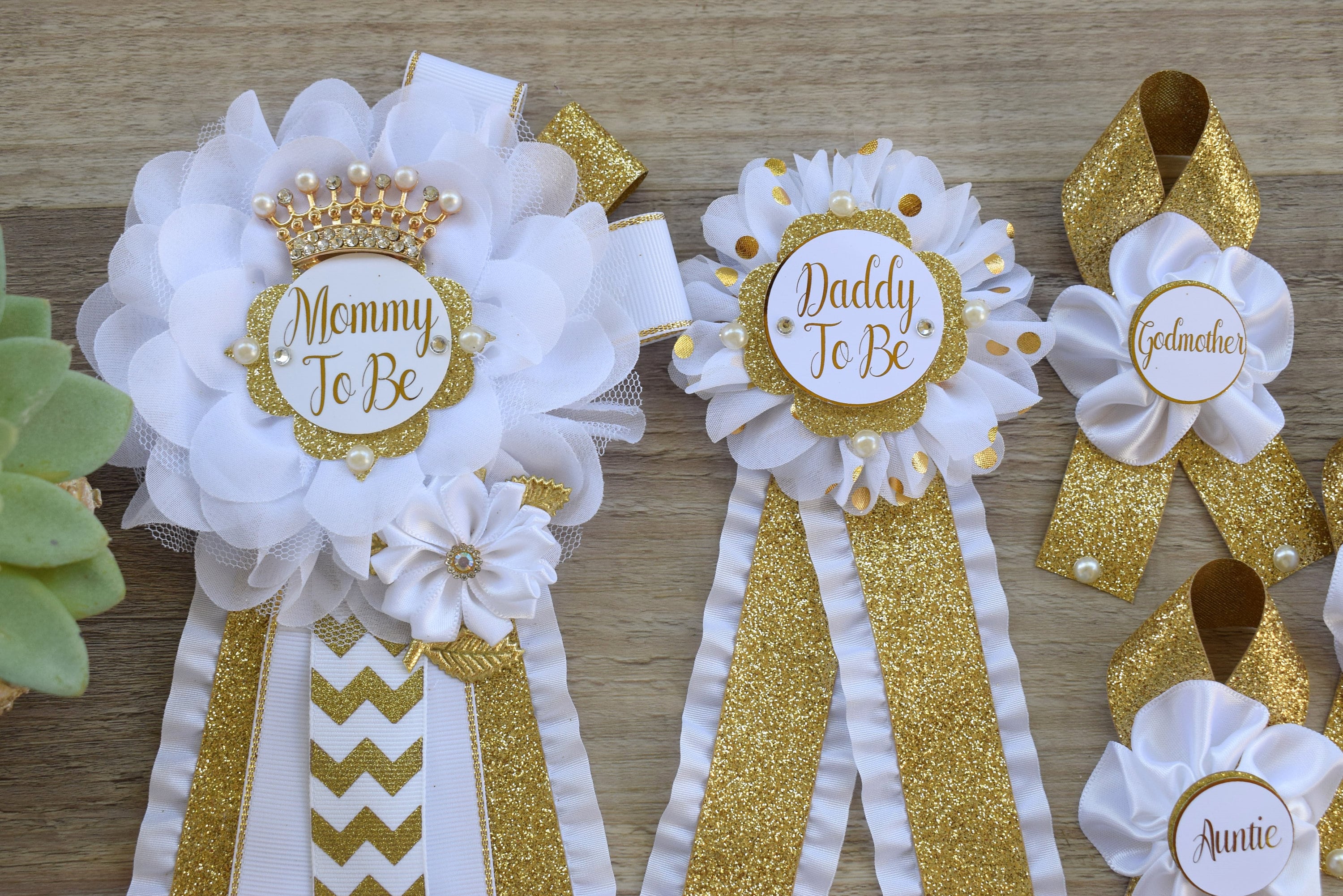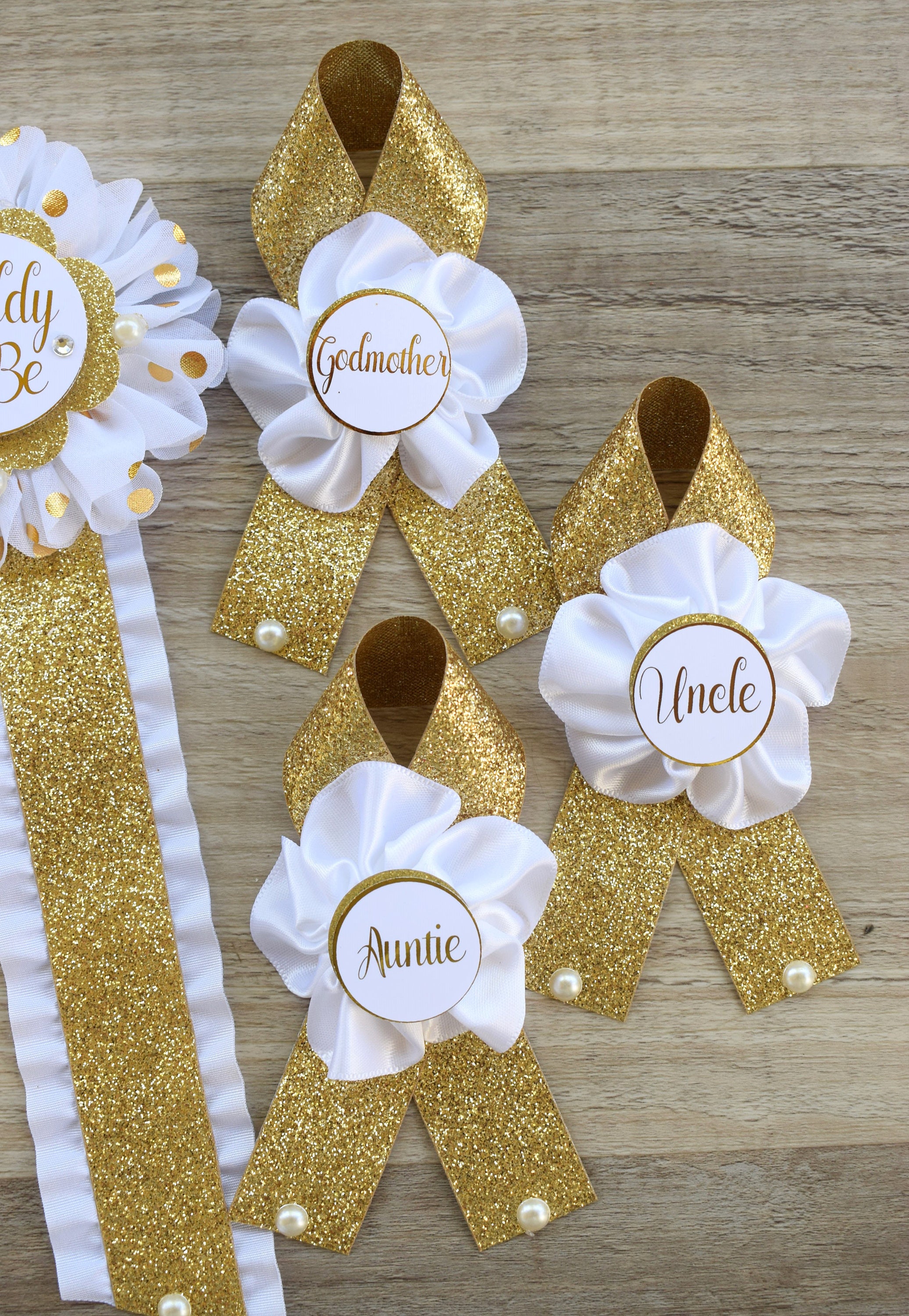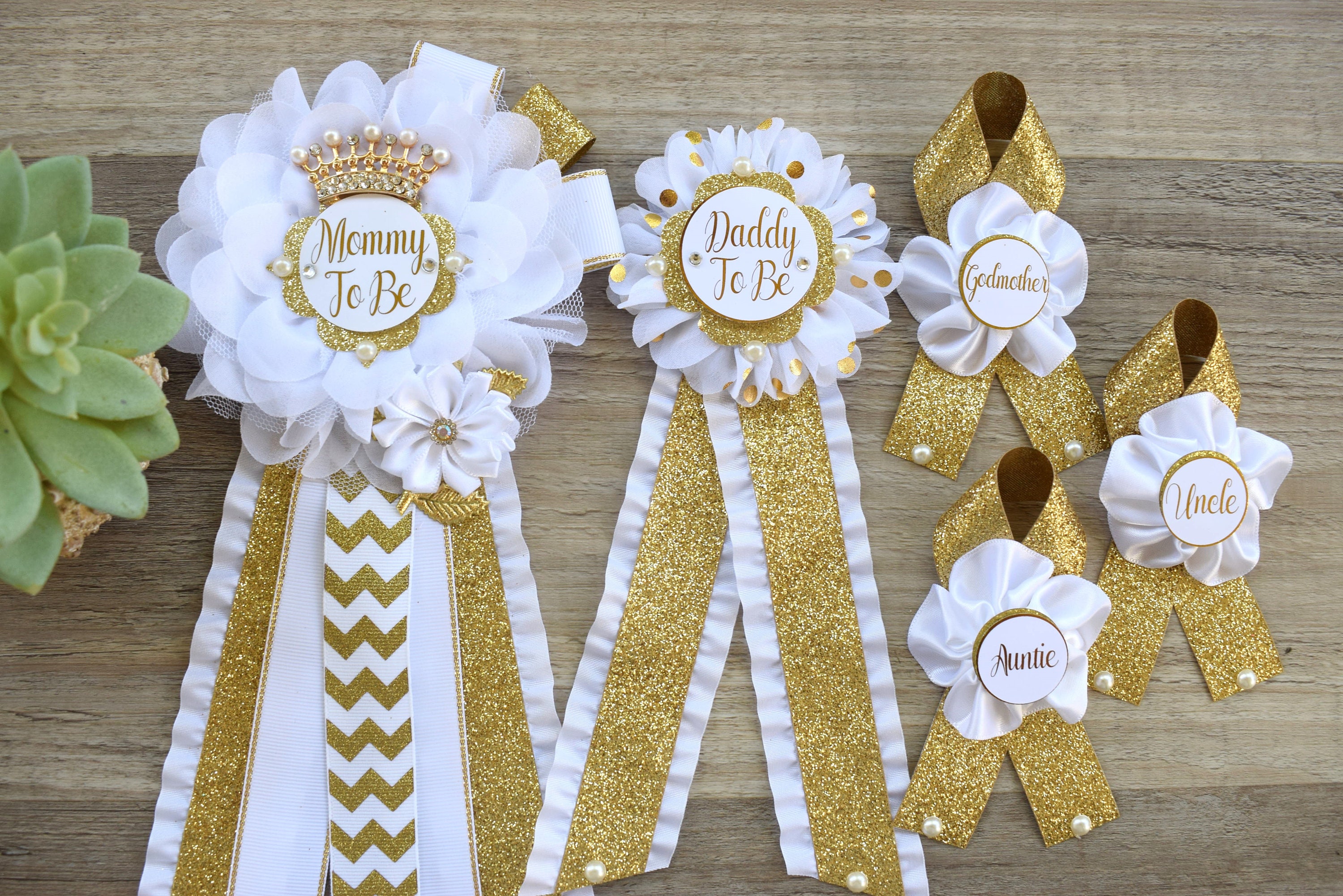 This Gold & White Pins are made especially for a Baby Shower or a Photo Prop.