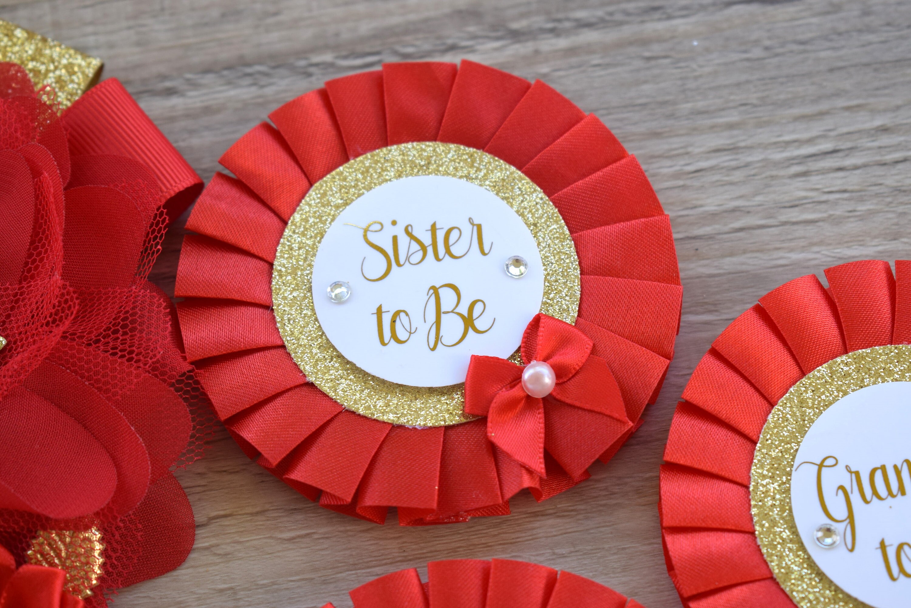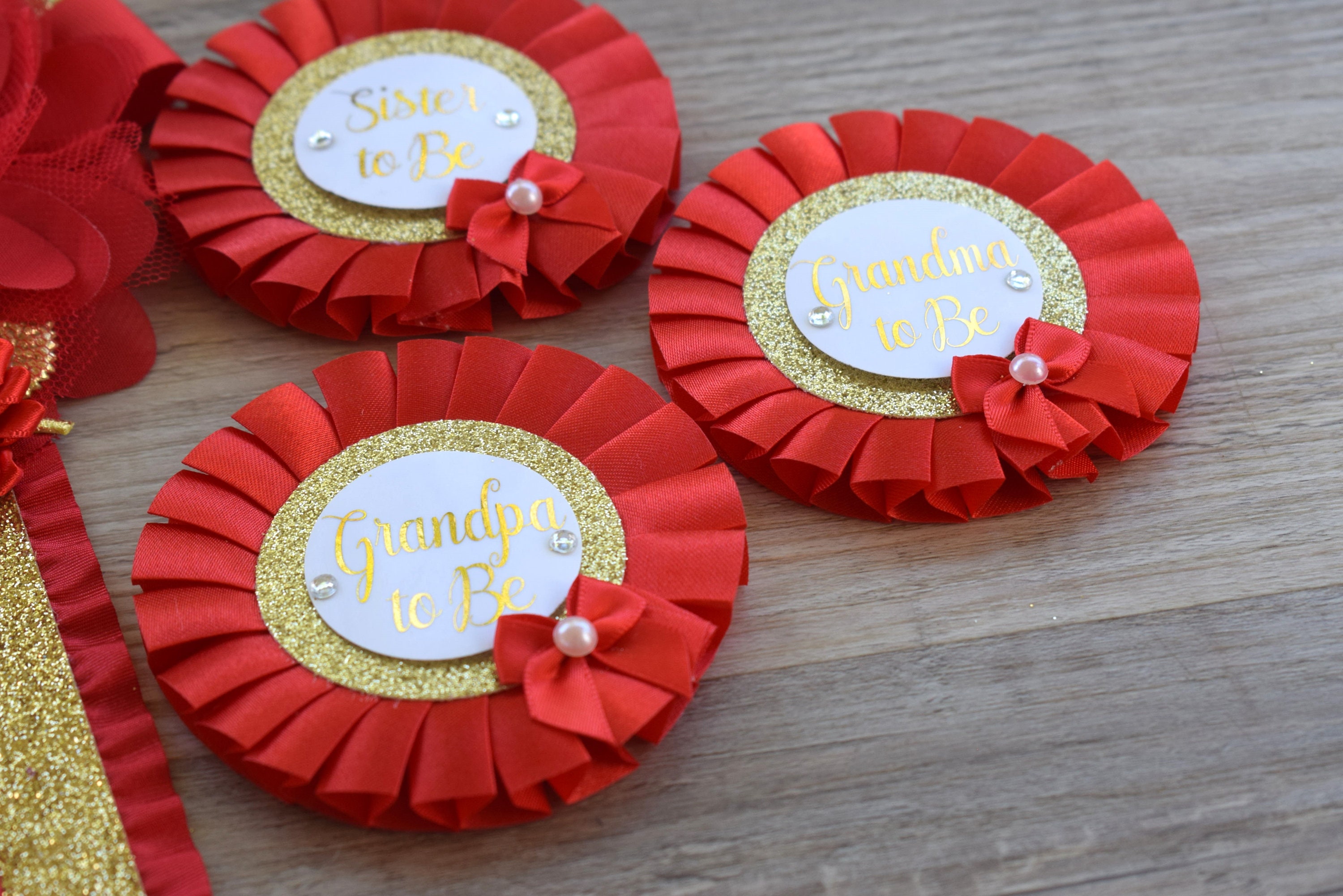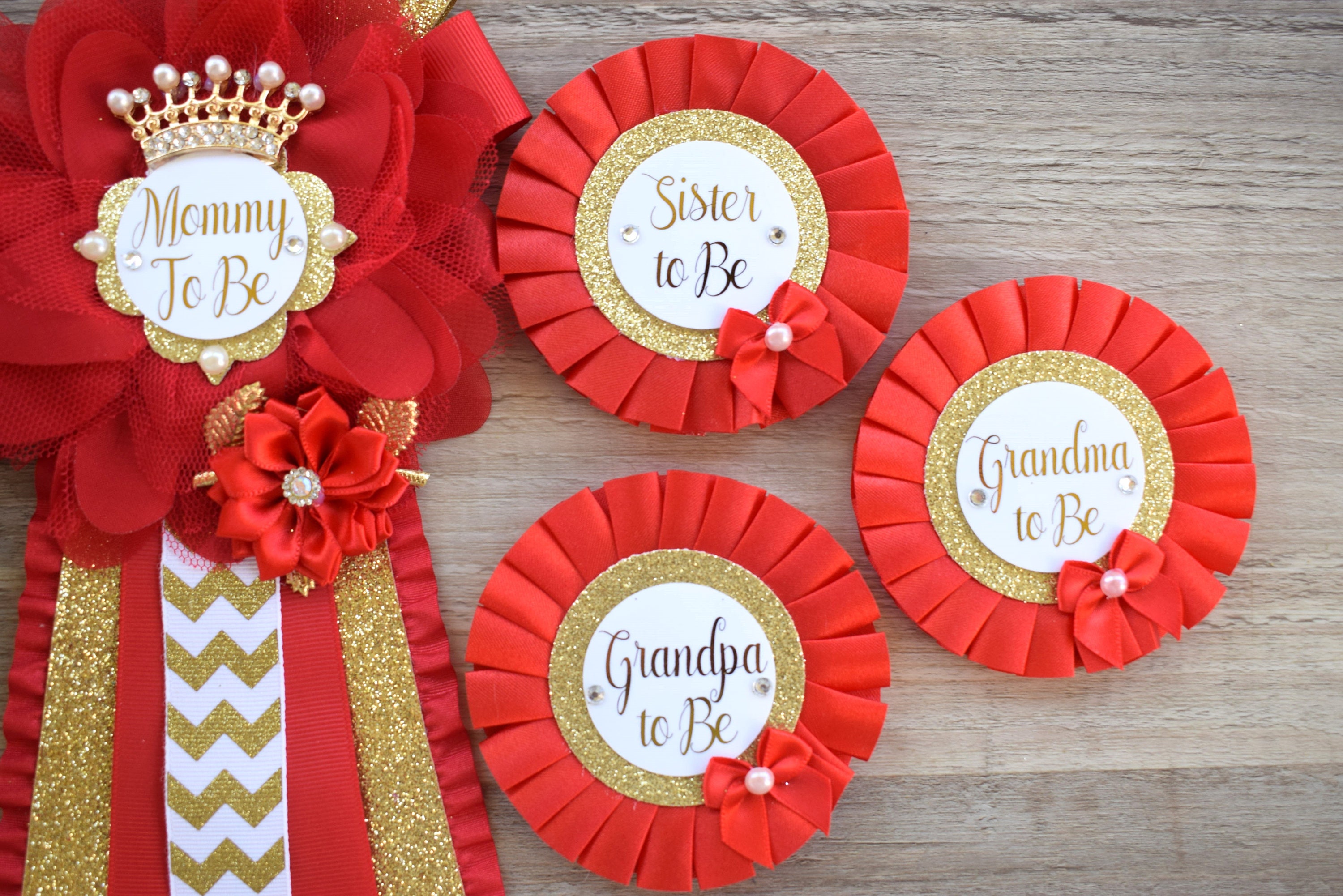 This Gold & Red Pins are made especially for a Baby Shower or a Photo Prop.