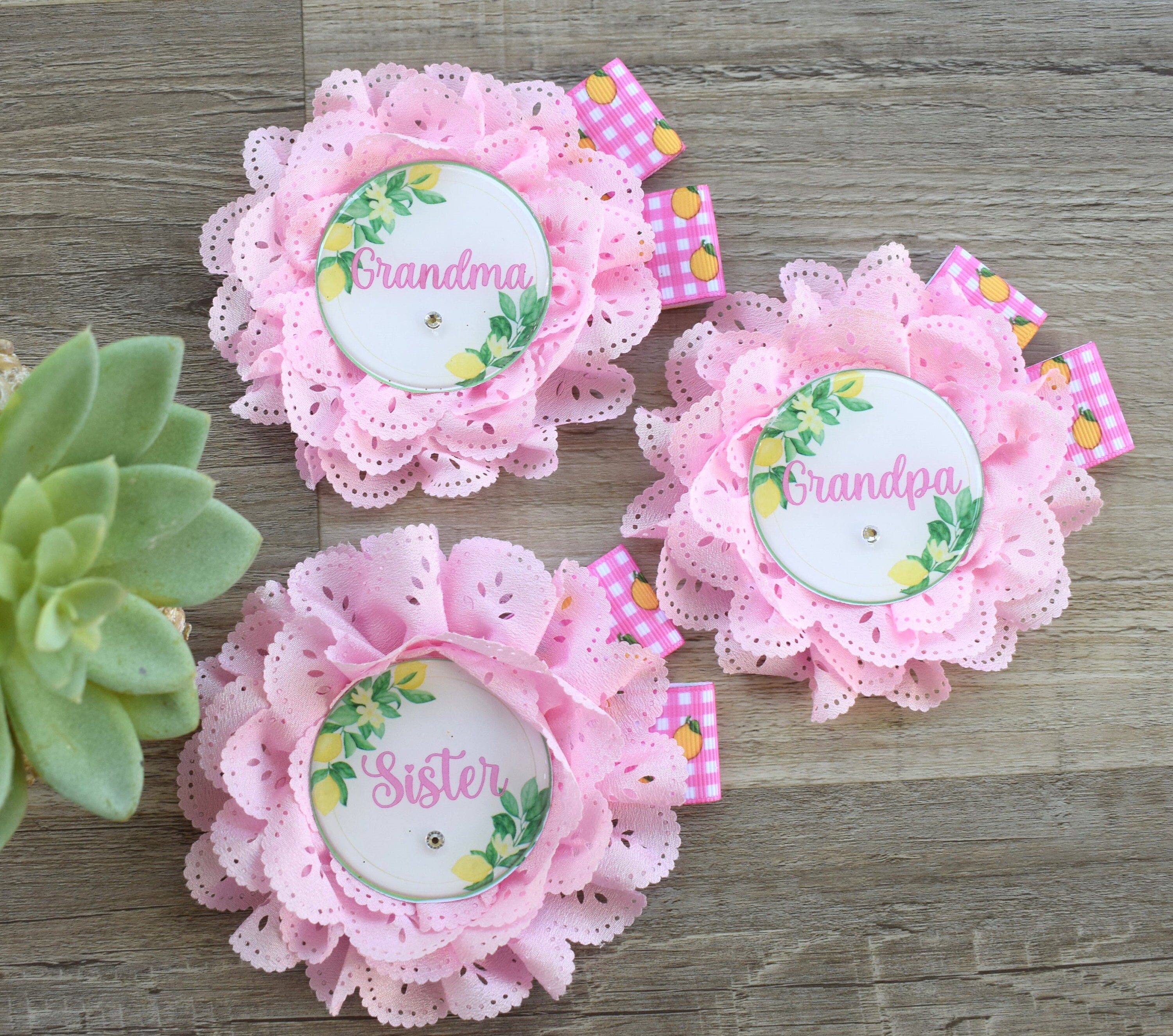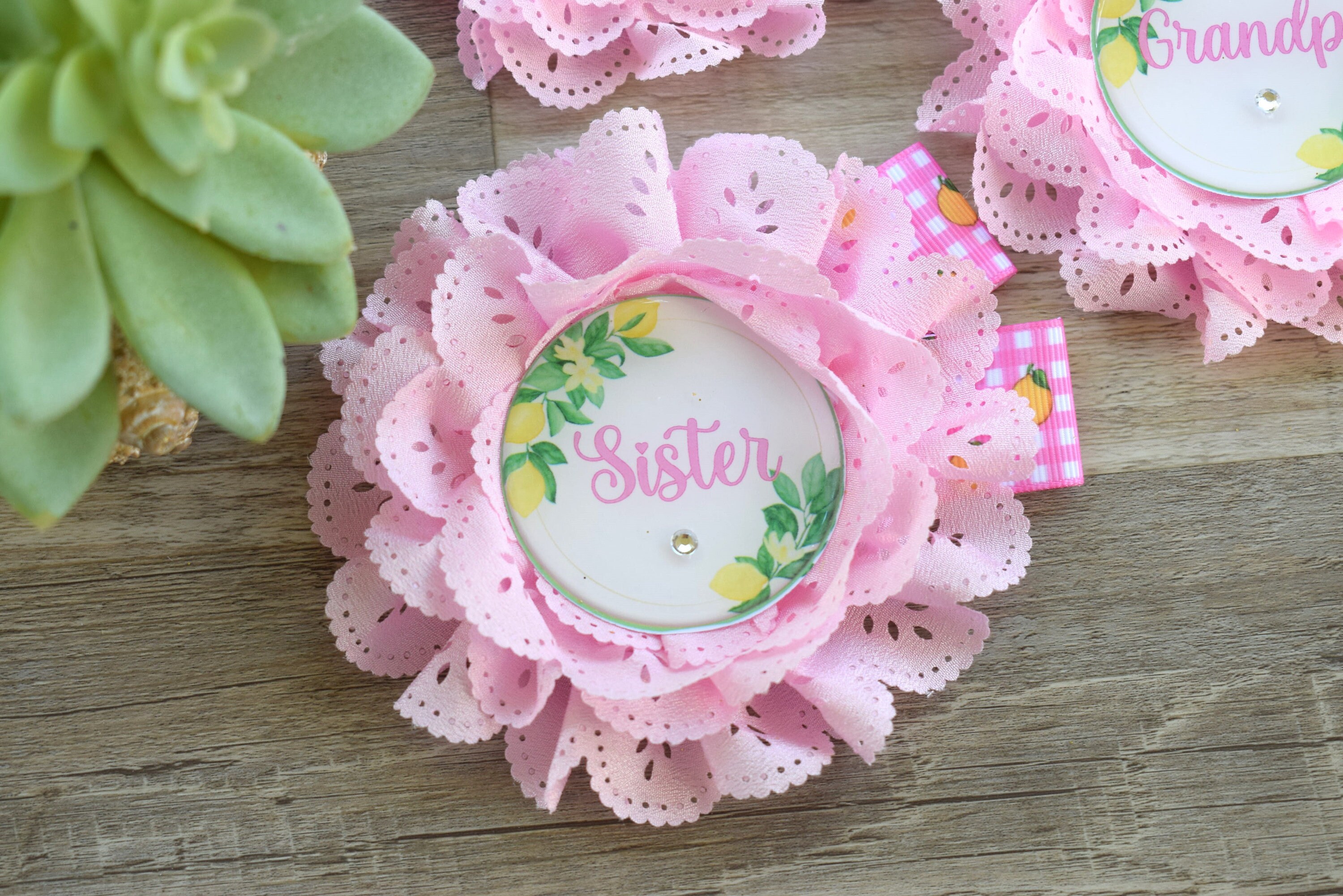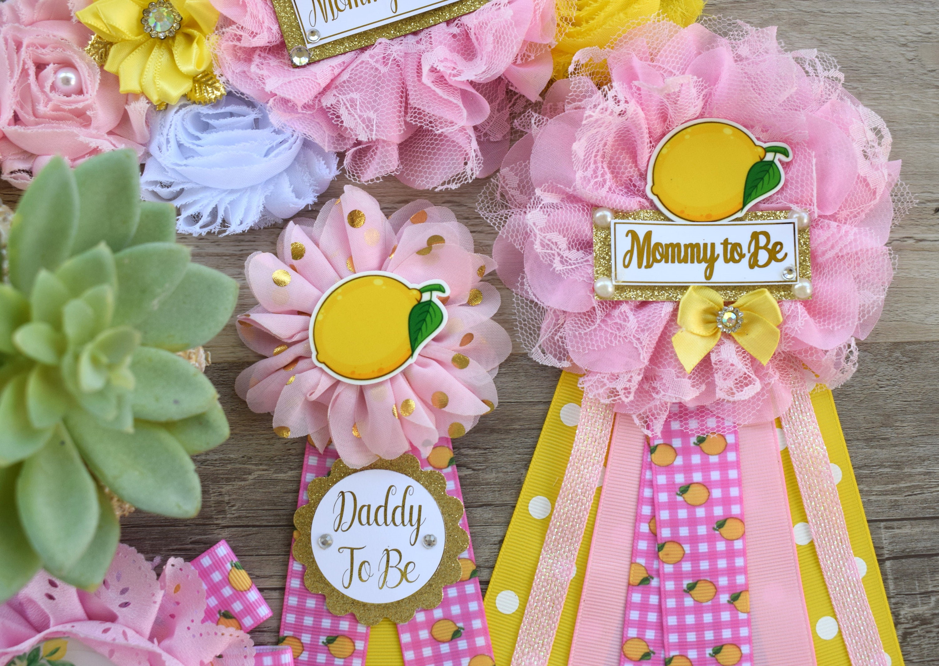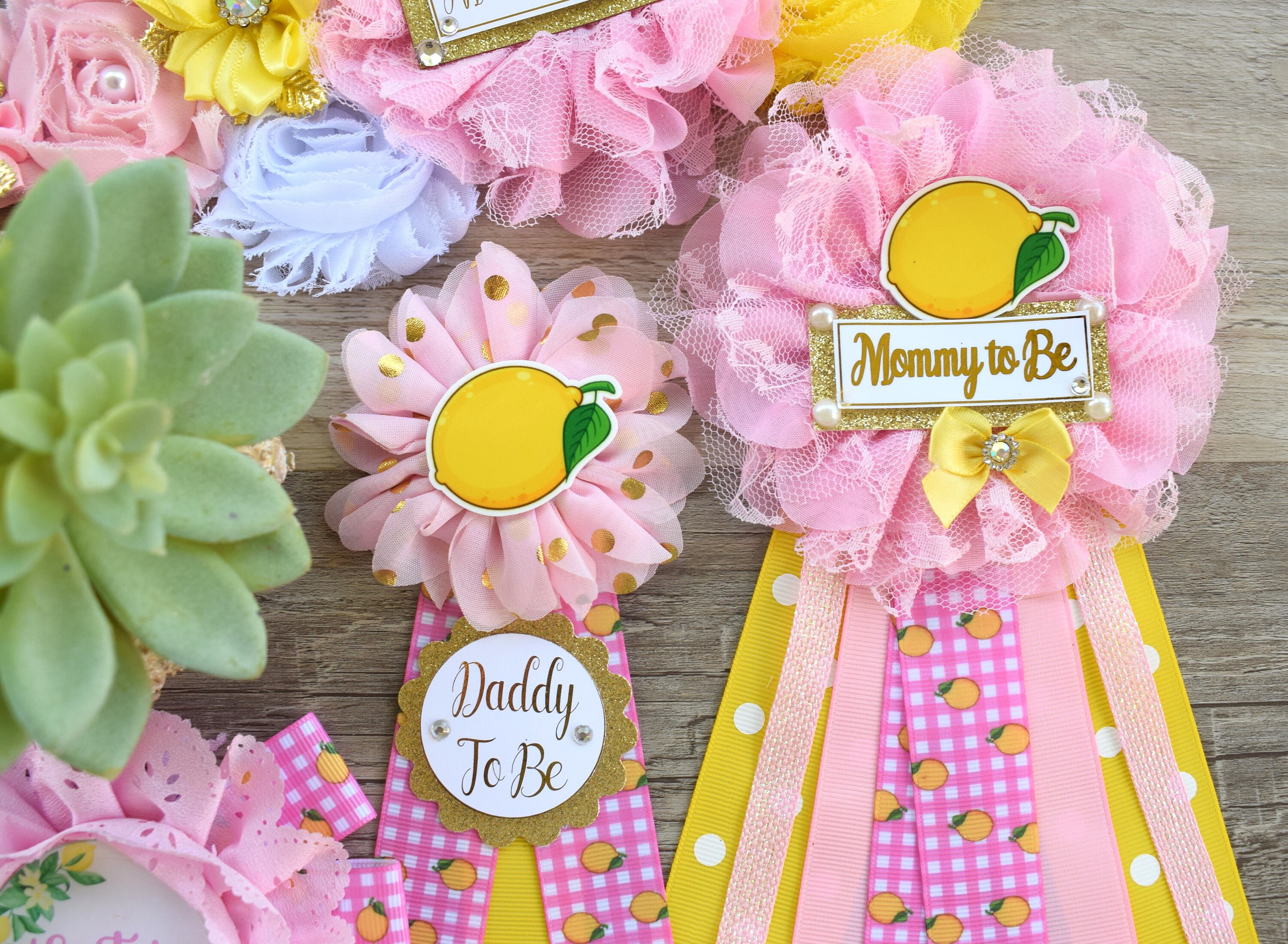 Girl Lemon Baby Shower, Lemon Fruit Maternity Sash, Pink Lemon Mommy To Be Ribbon Pin, Girl Lemon Daddy To Be Ribbon, Custom