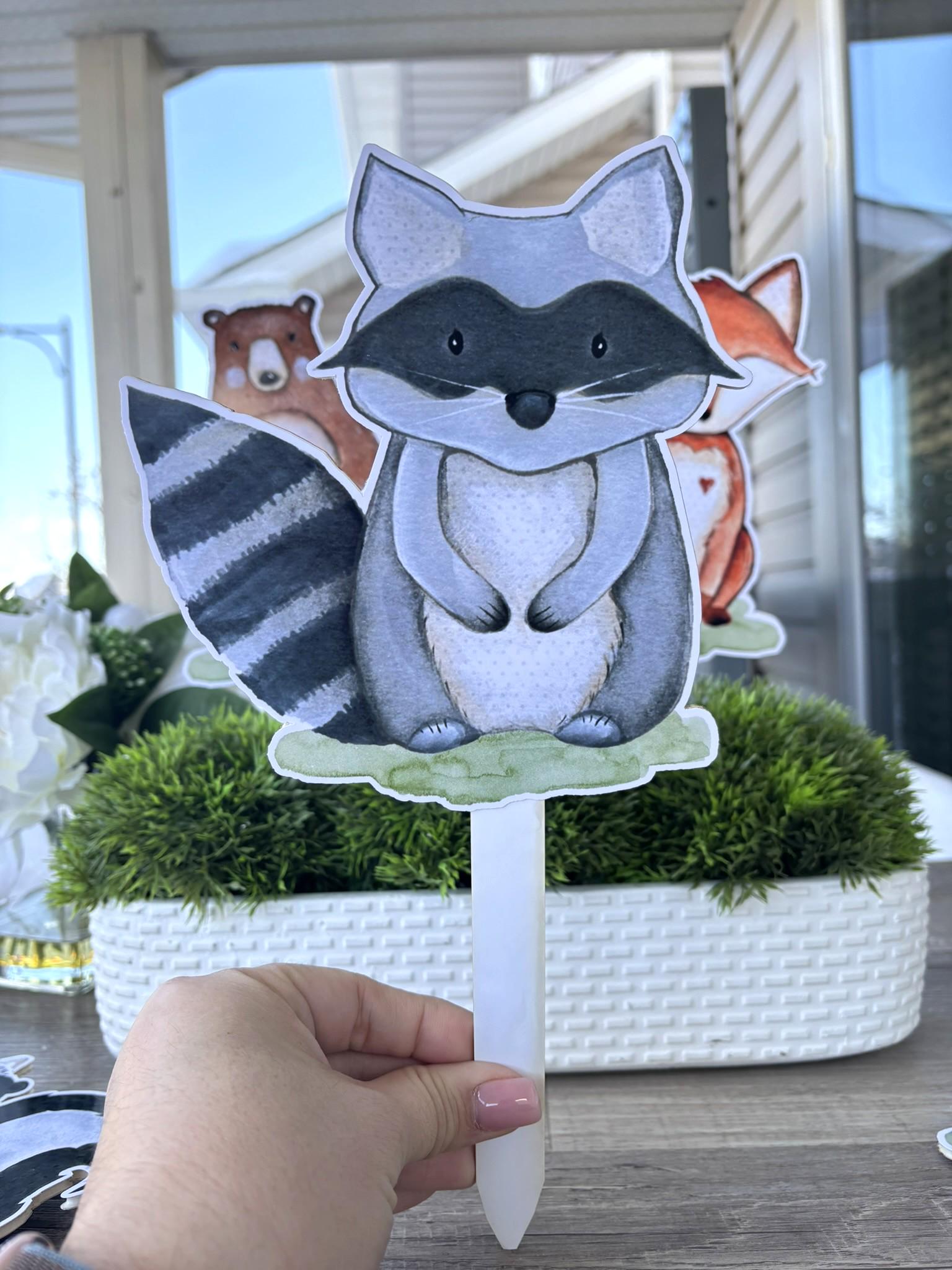 ❤ Animals in the cake topper: fox, bear, deer, rabbit, raccoon, skunk & squirrel.