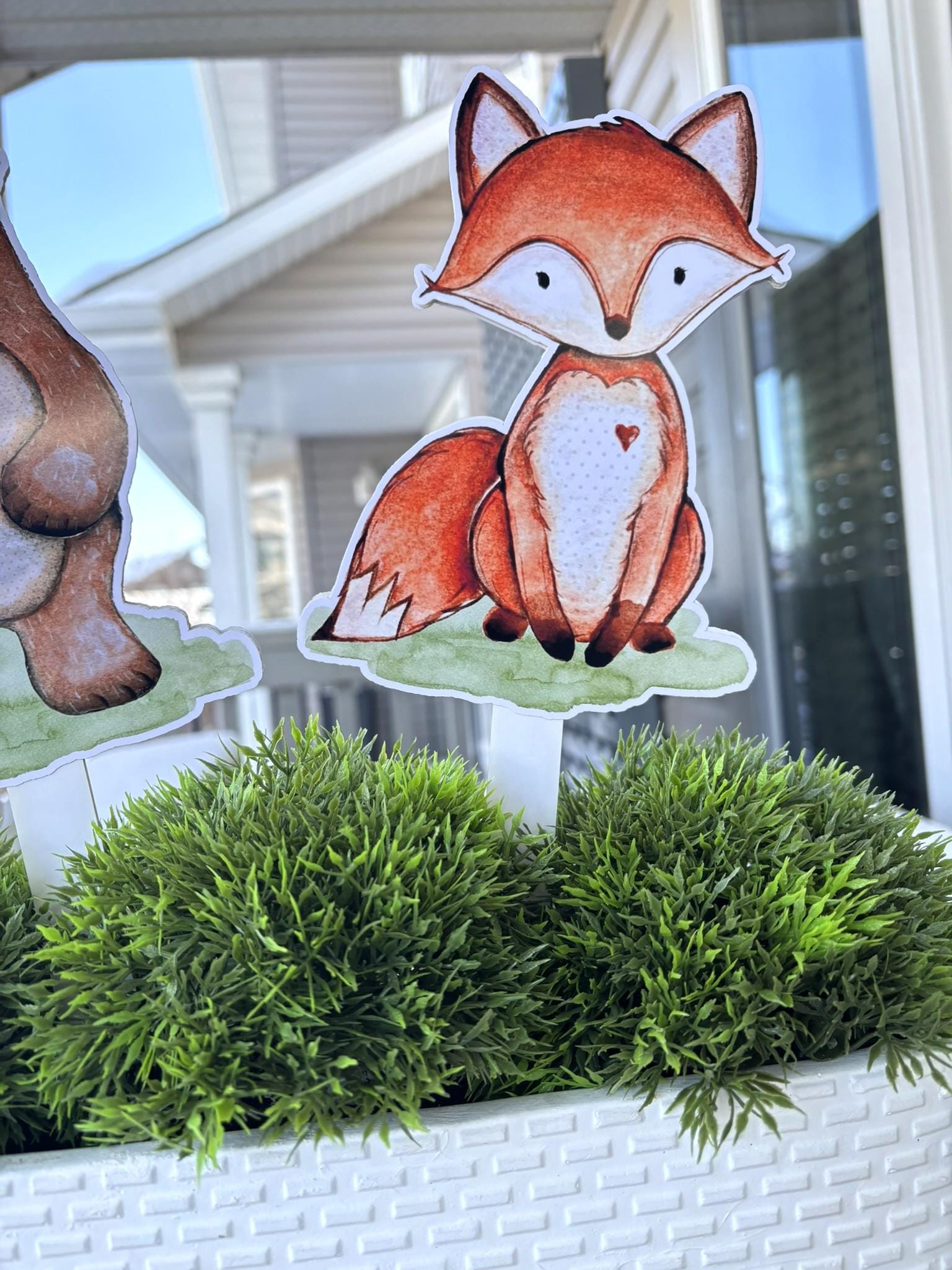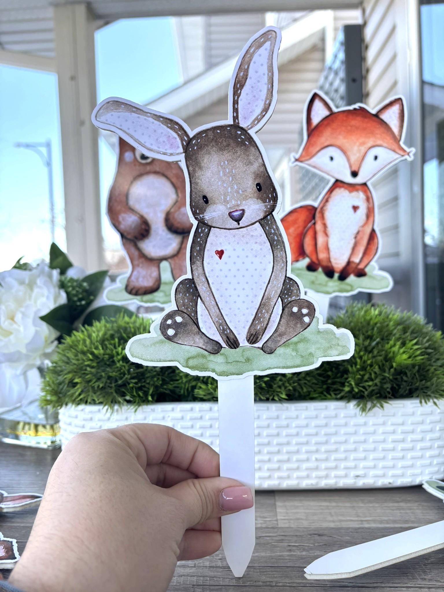 Woodland Cake Topper, Woodland Centerpieces Decorations, Fox Bear Deer Rabbit Raccoon, Girl and Boy Room Nursery Decor, New Mom Gifts- S0005