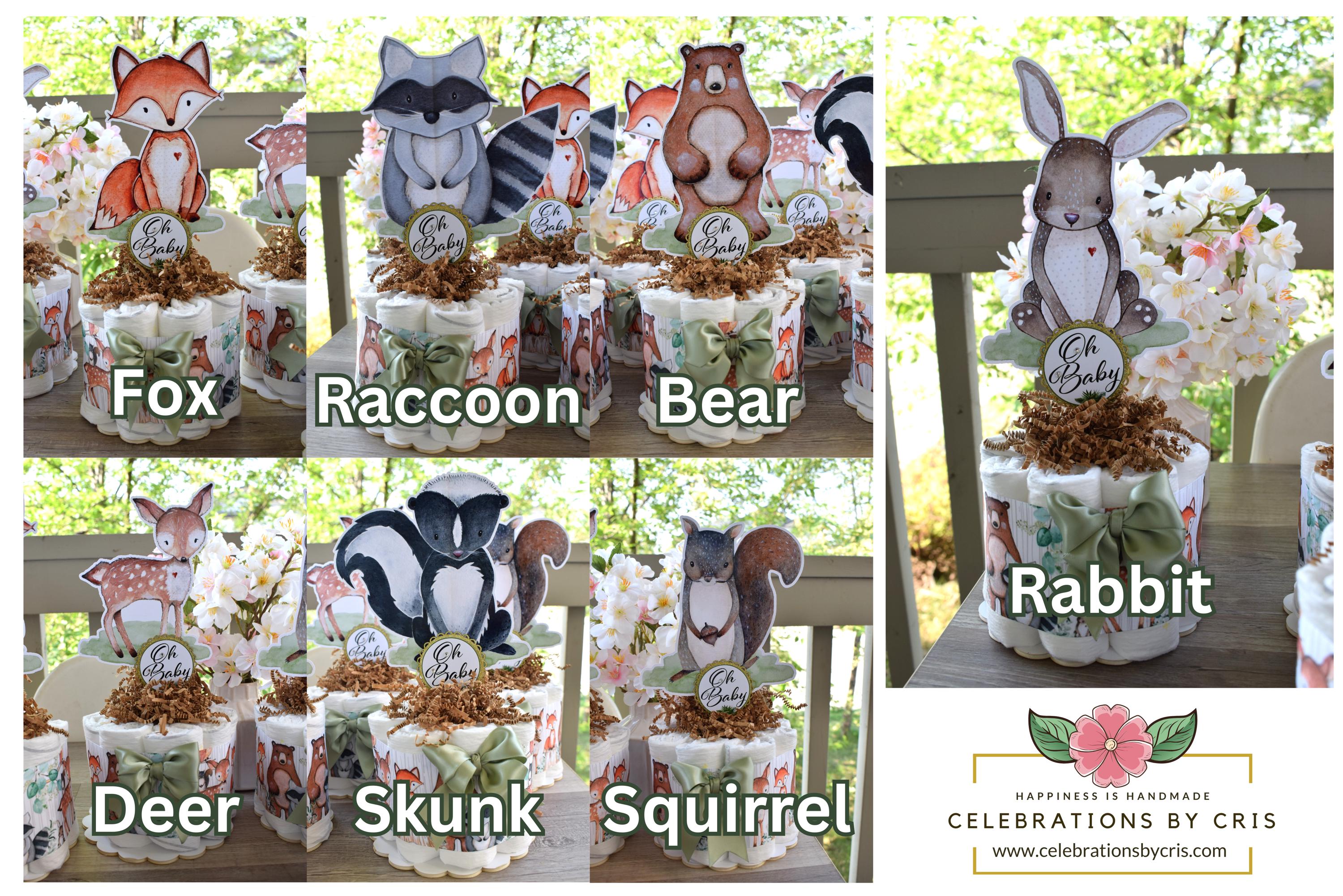 This Gorgeous Woodland Diaper Cakes are the perfect centerpieces for your baby shower. We can match any shower theme.