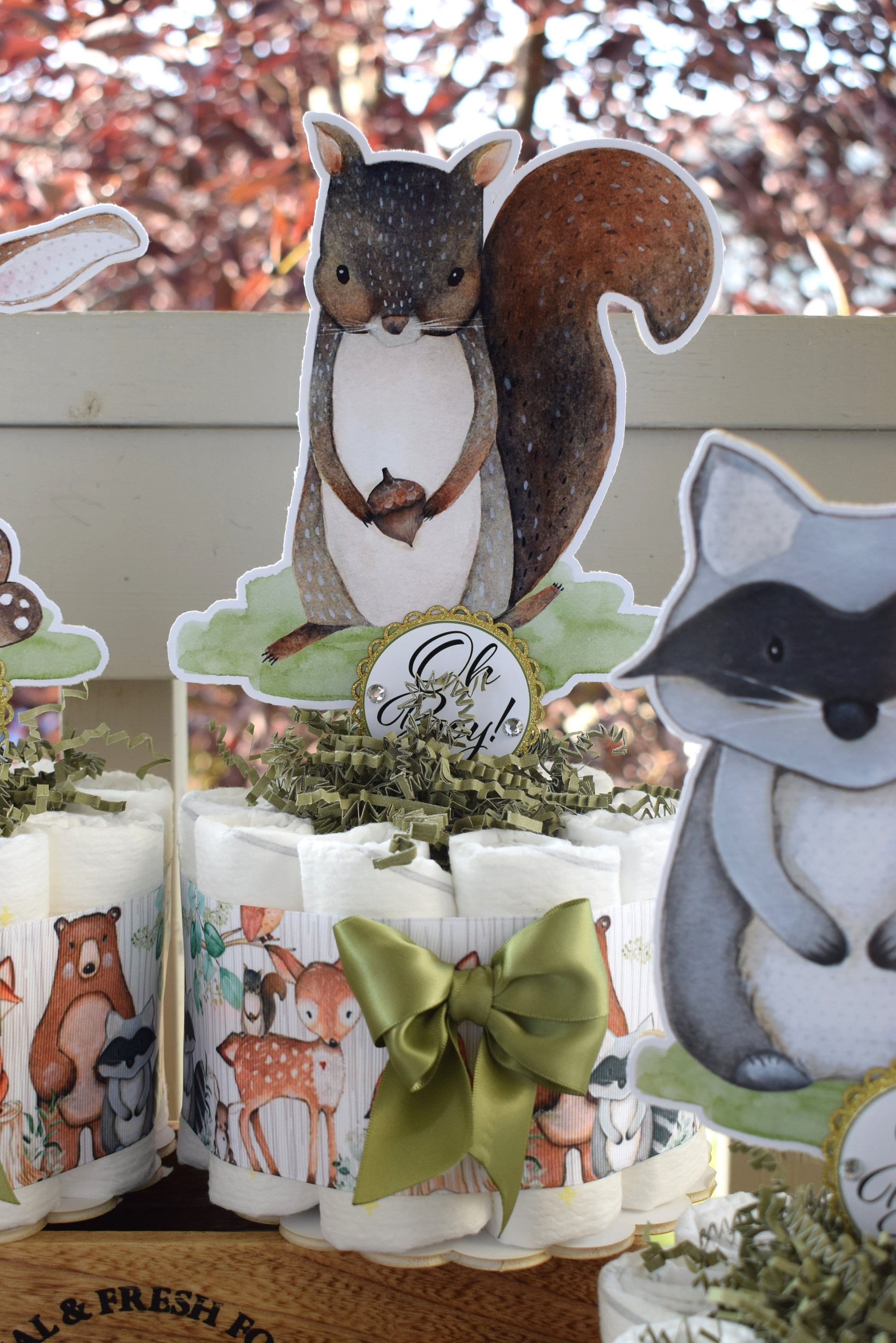 Woodland Mini Diaper Cake Set Baby Shower, Woodland Centerpieces Decorations, Girls Room Nursery Decor, New Mom Gifts - S0005