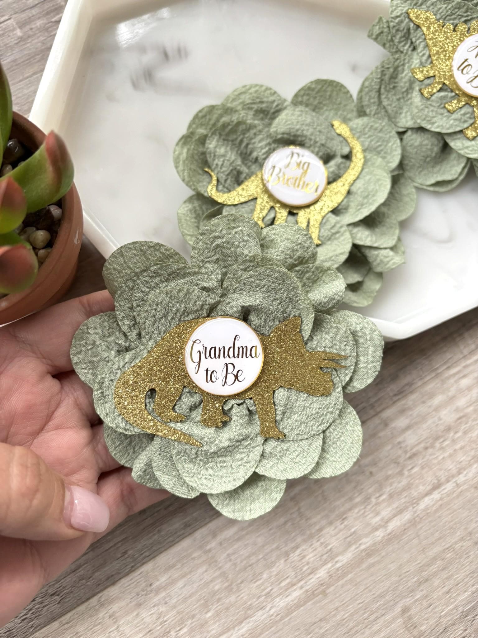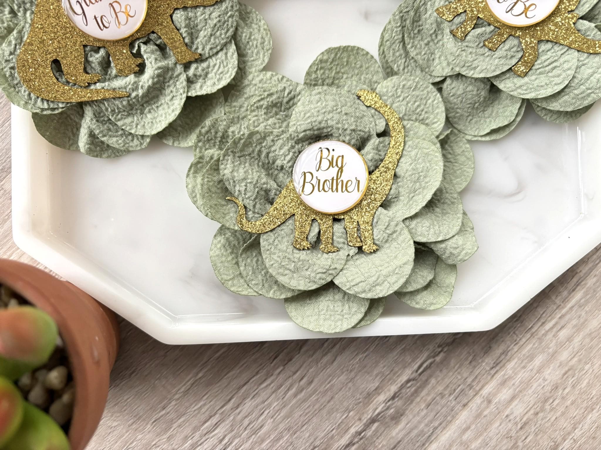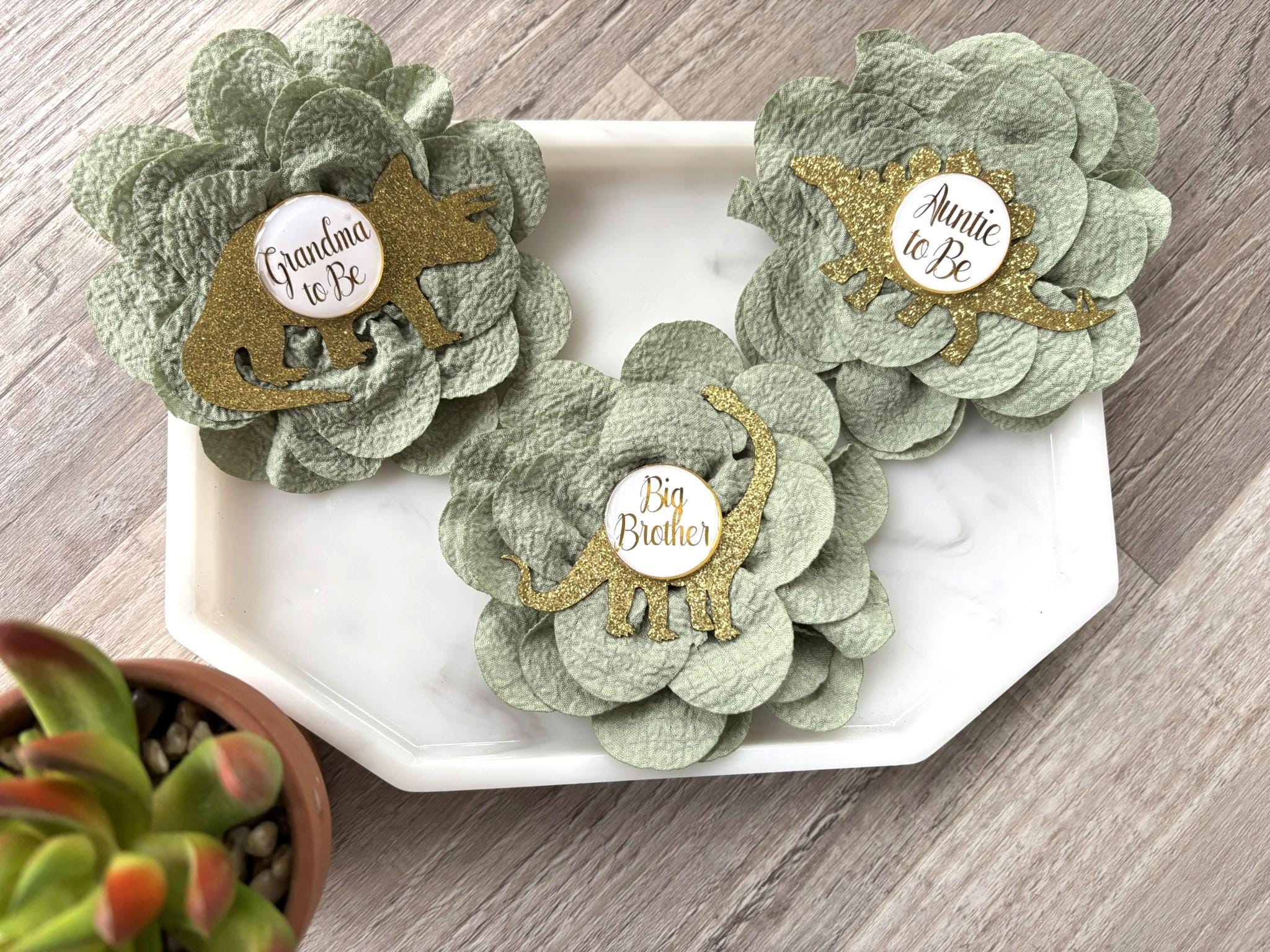 This Dinosaur Gold & Sage Green Dinosaur Set is made especially for a Baby Shower or a Photo Prop.