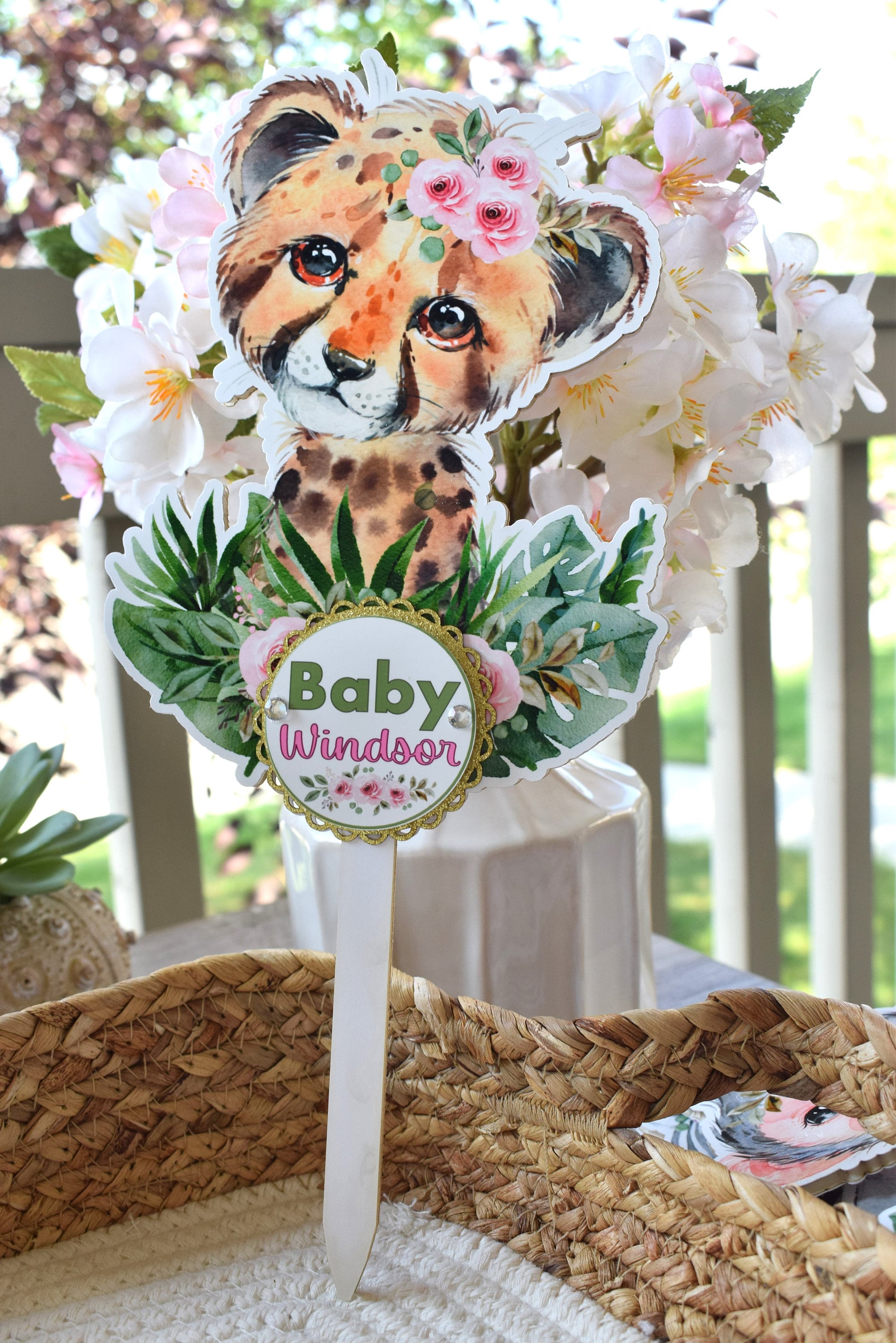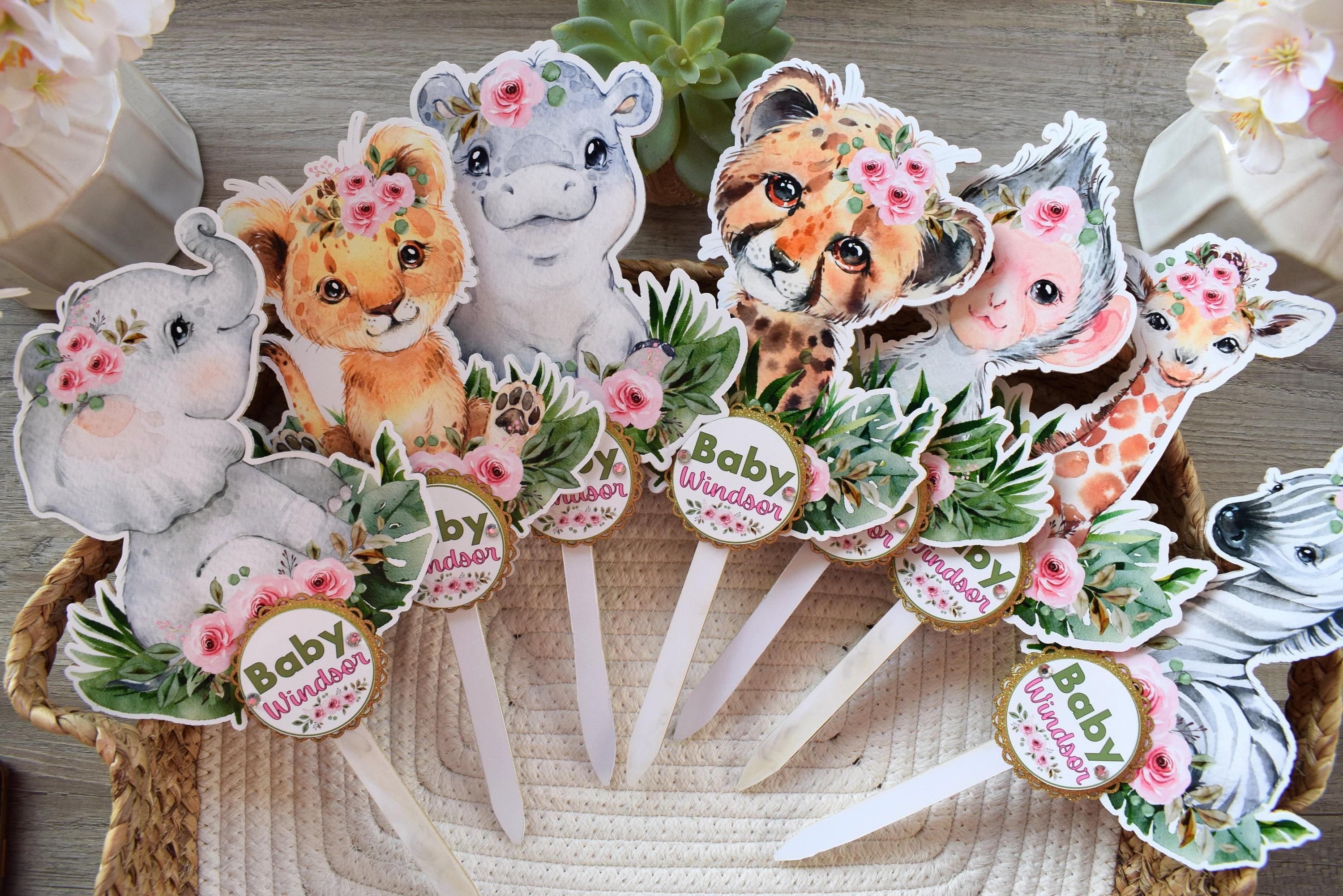 This Gorgeous Girl Jungle Safari Cake Toppers are the perfect centerpieces for your baby shower. We can match any shower theme.
