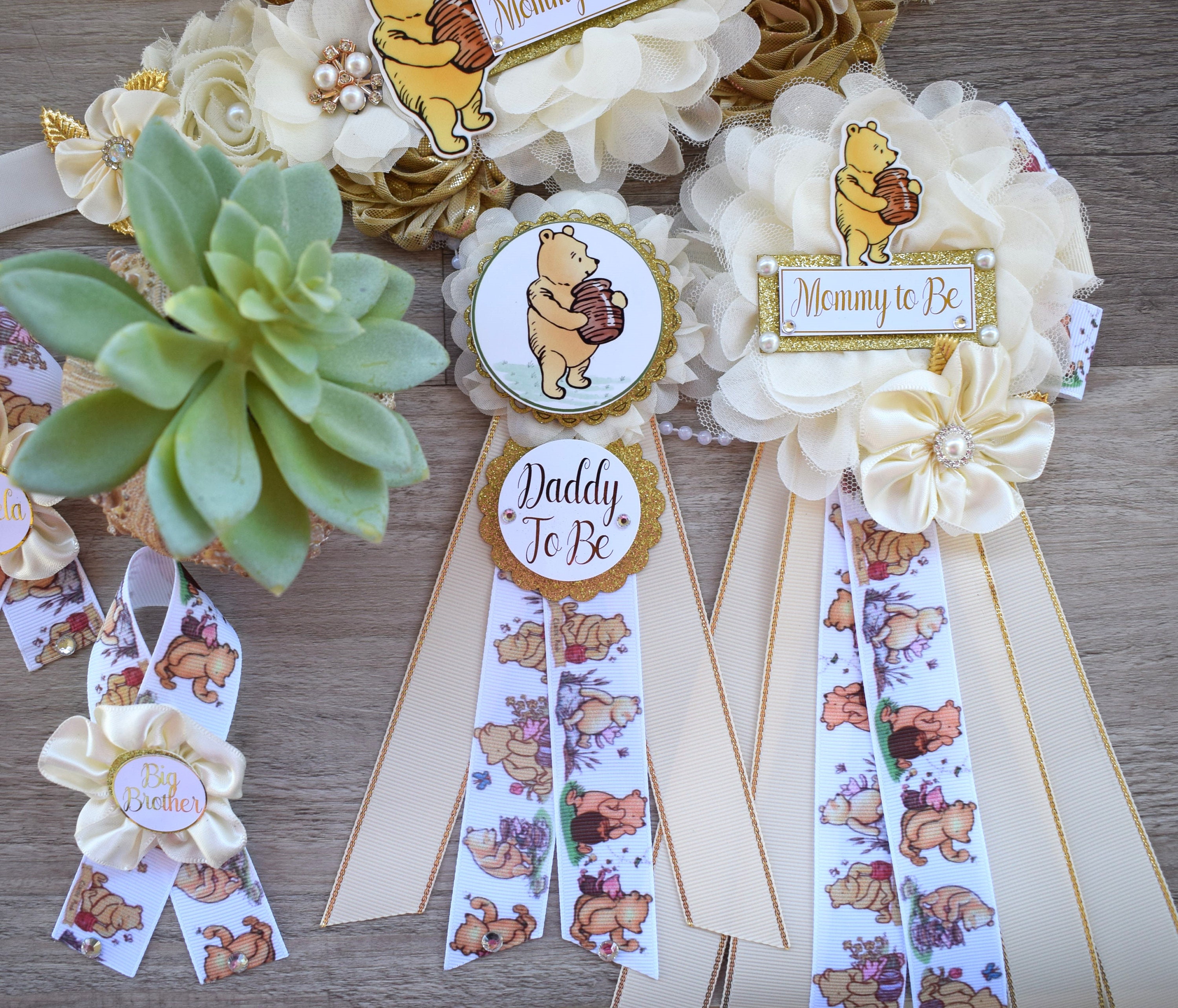 Classic Winnie The Pooh Baby Shower, Winnie the Pooh Mommy To Be Pin, Classic Winnie the Pooh, Winnie the Pooh Mommy and Daddy Pin, Custom