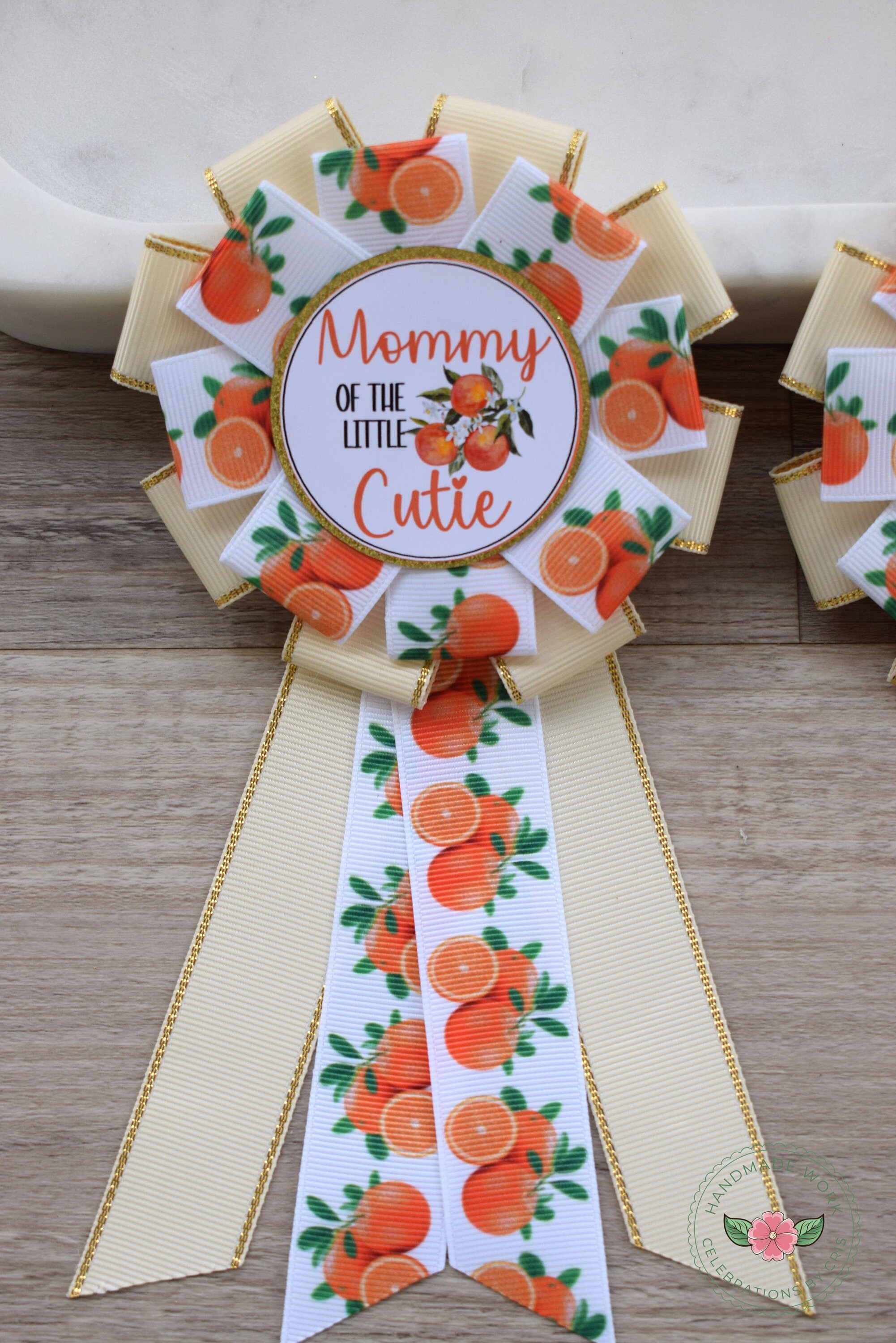 Orange Baby Shower, A Little Cutie Is On The Way, Orange Mommy To Be Ribbon Pin, Daddy To Be Ribbon, Orange Cutie Maternity Sash