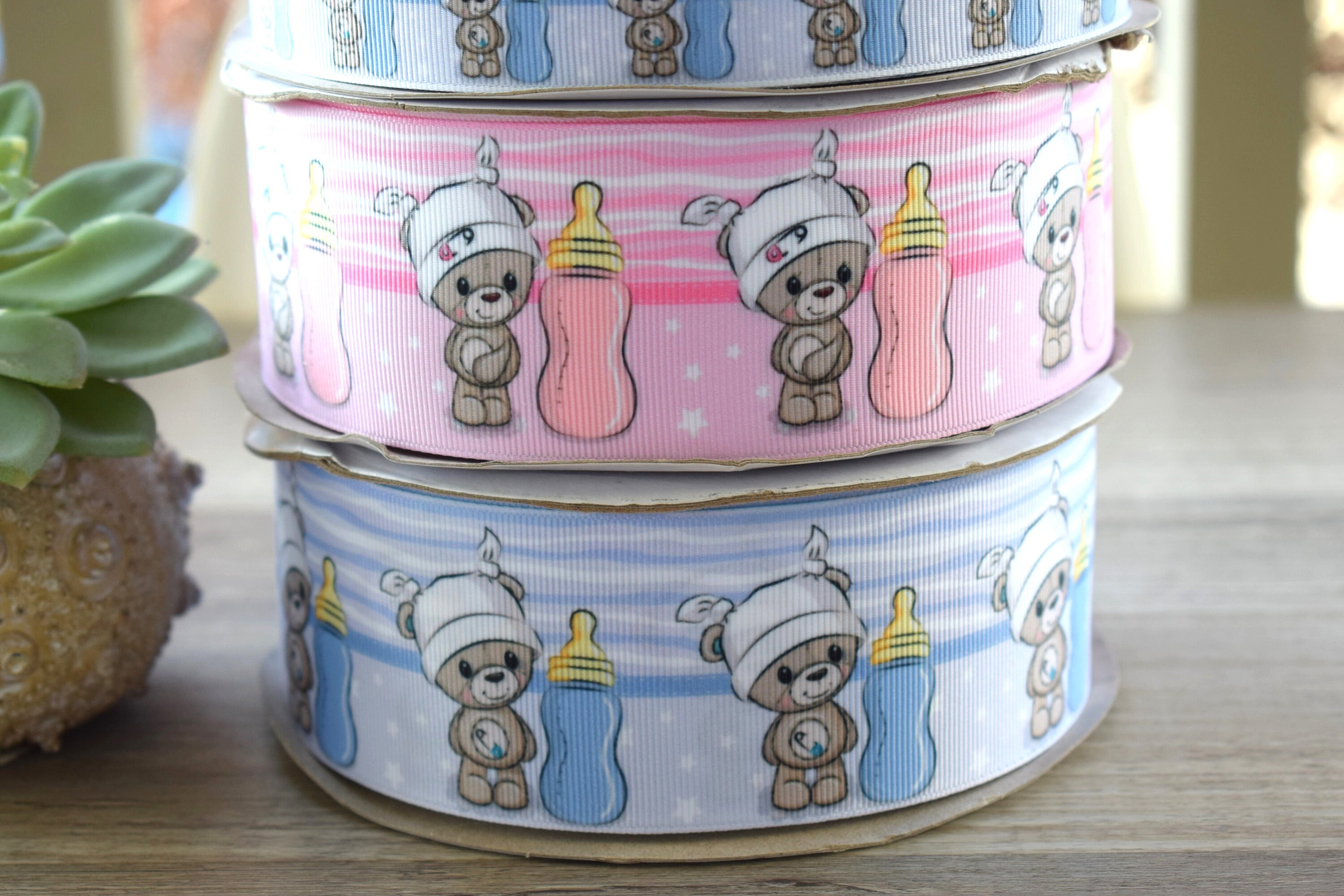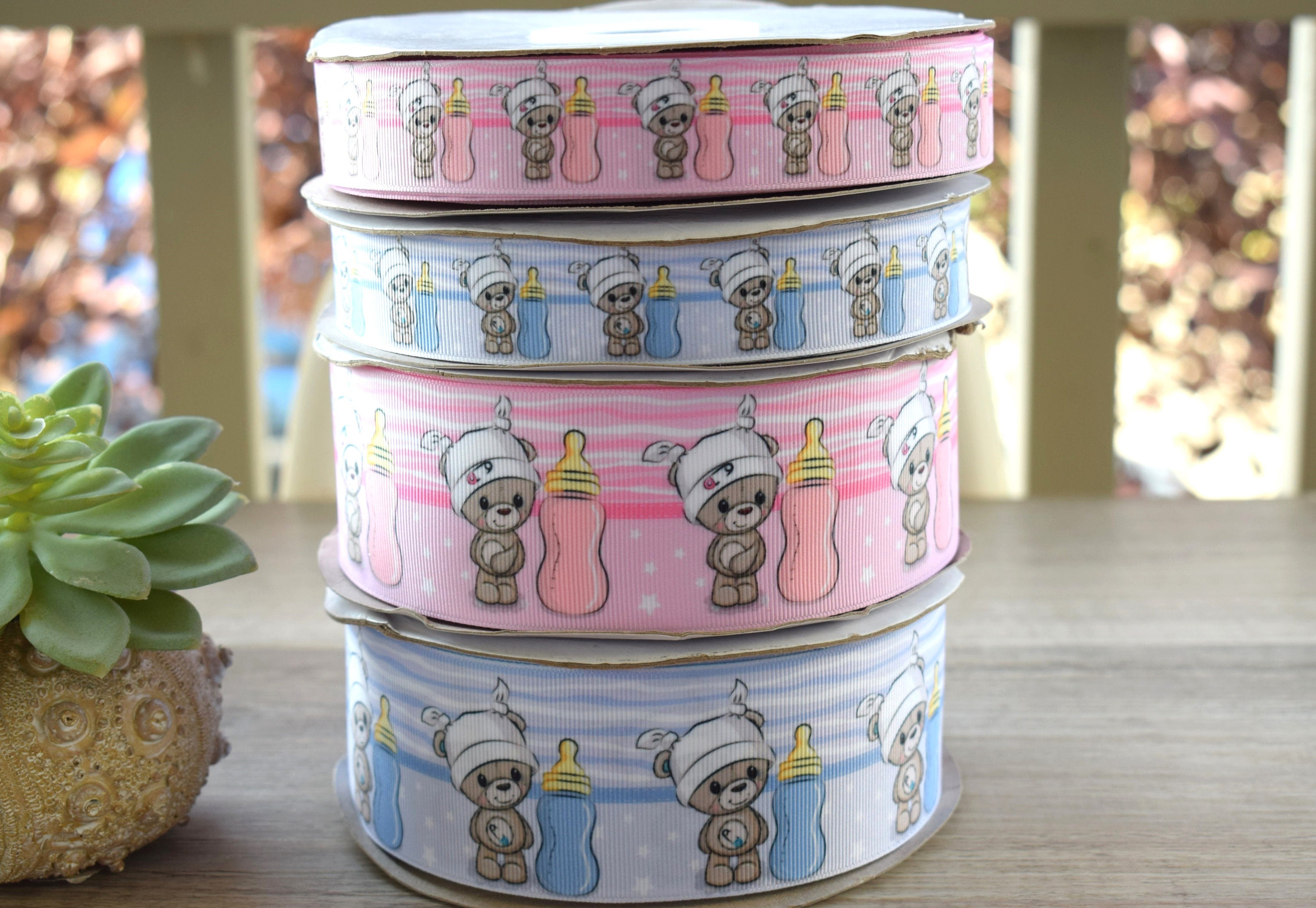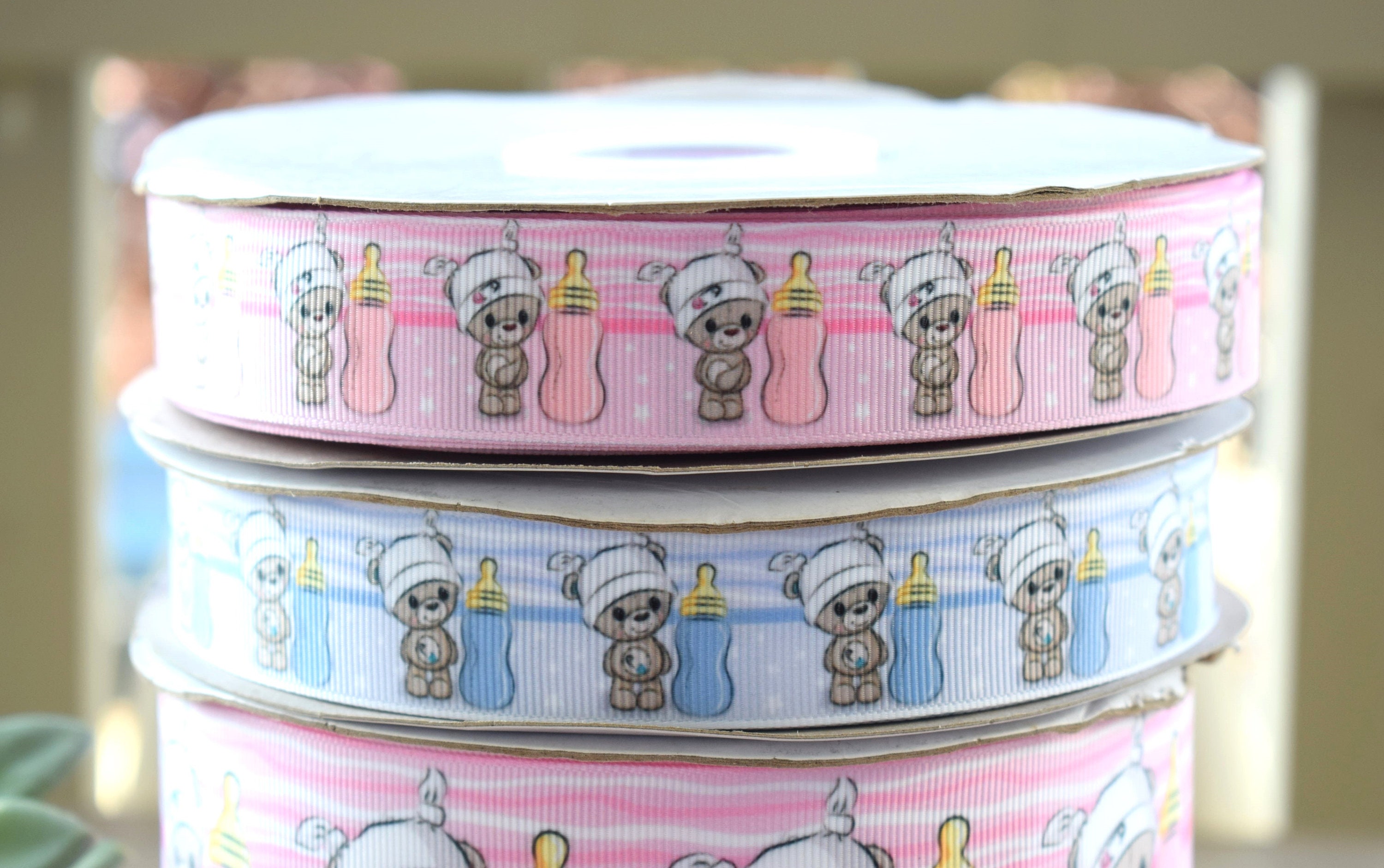 Bear Baby Shower Ribbon, Pink and Blue Baby Bear Ribbon, Girl And Boy Bear Ribbon || 3 Yards of Ribbon - 1" (25mm) / 2" (50mm)