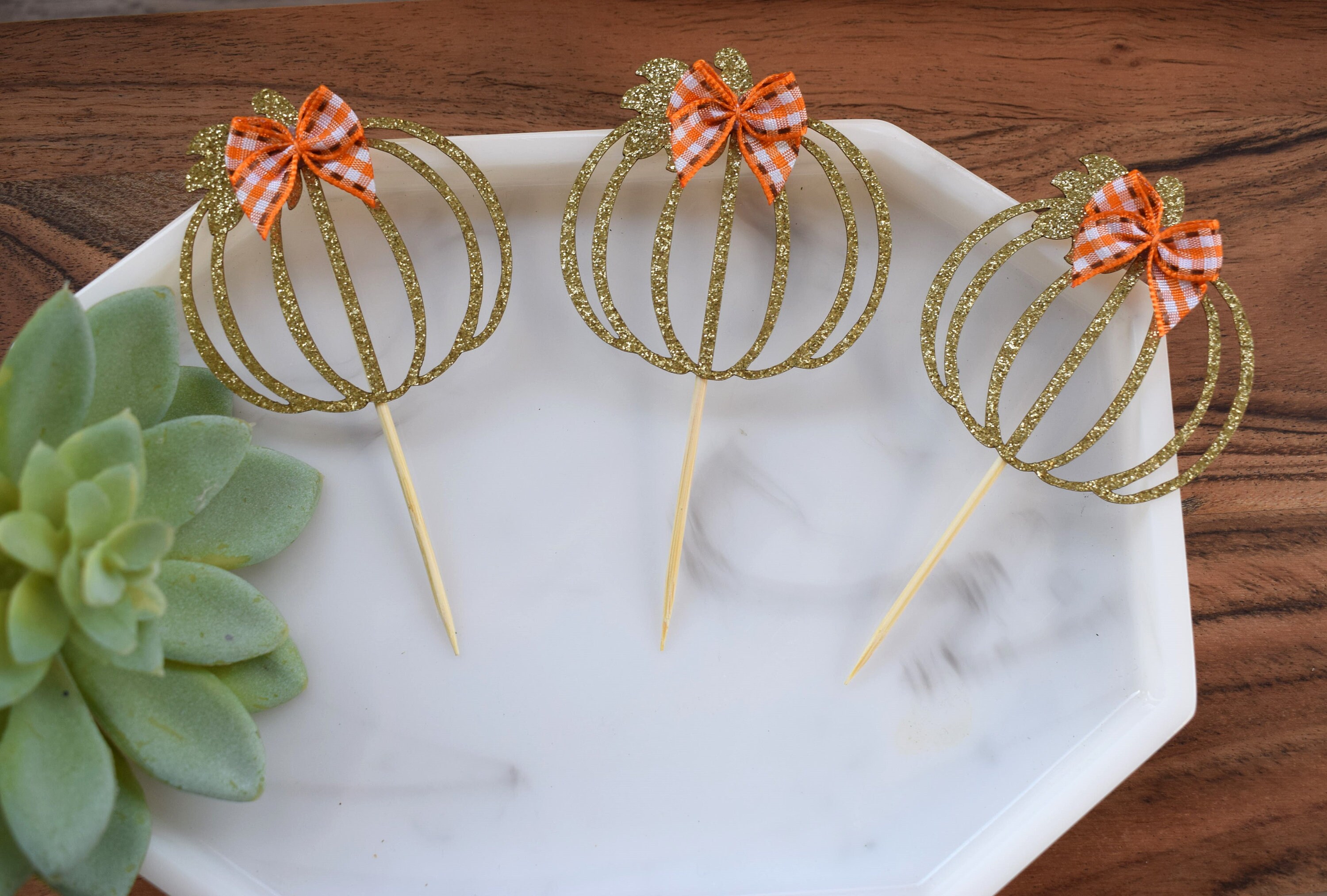 12 Orange Gold Pumpkin Cupcake Topper, Pumpkin Baby Shower, Orange Pumpkin Party, Set of 12