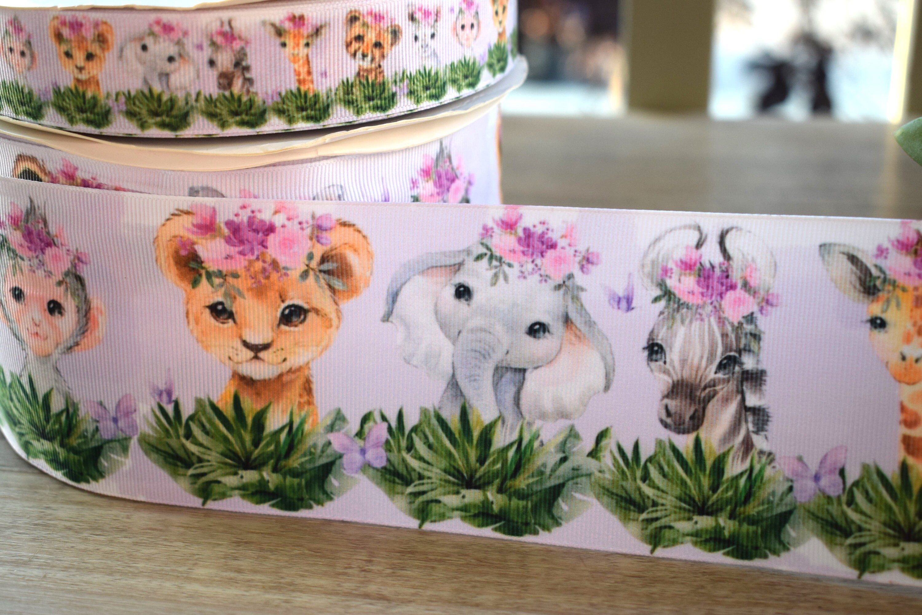Pink Lavender Girl Animal Safari Ribbon, Baby Safari Ribbon, Diaper Cake Ribbon, Safari Jungle || 3 Yards of Ribbon -1" (25mm) / 3" (75mm)