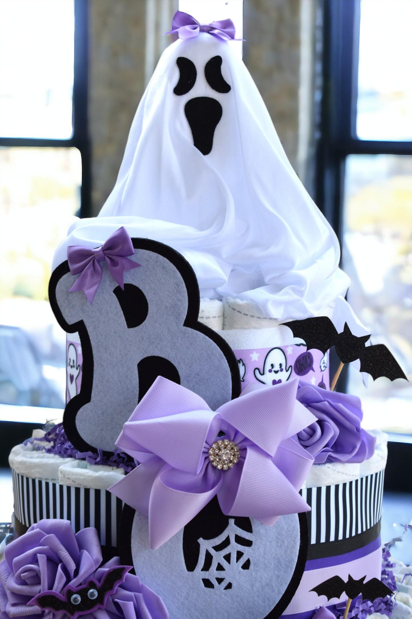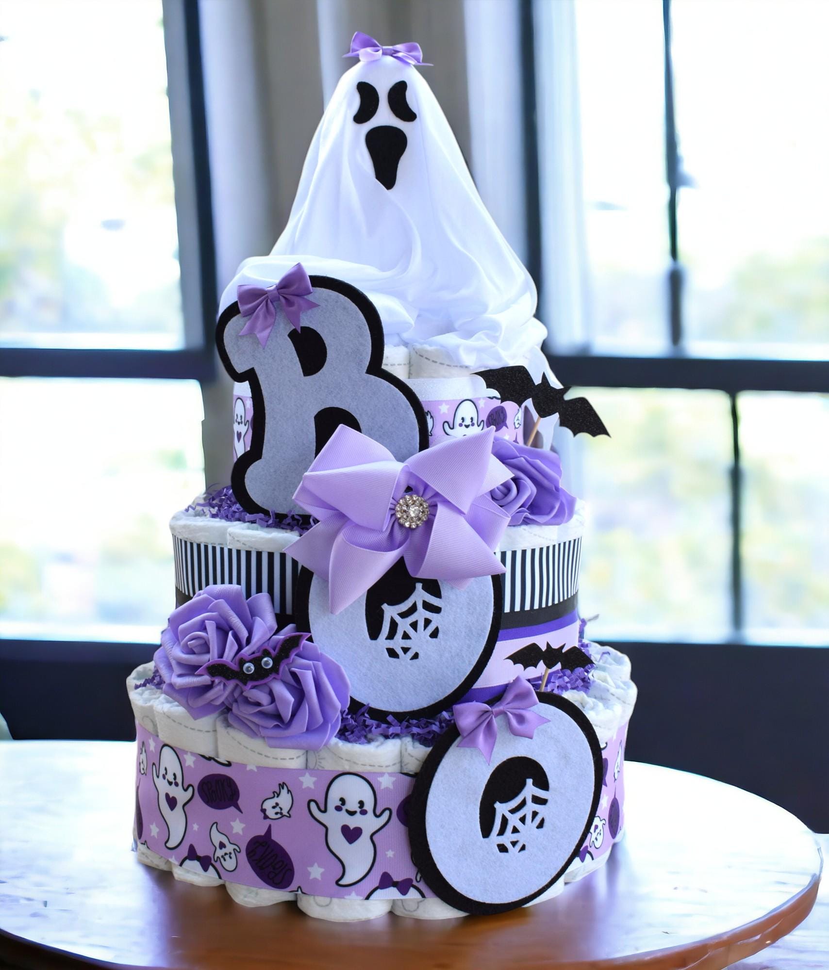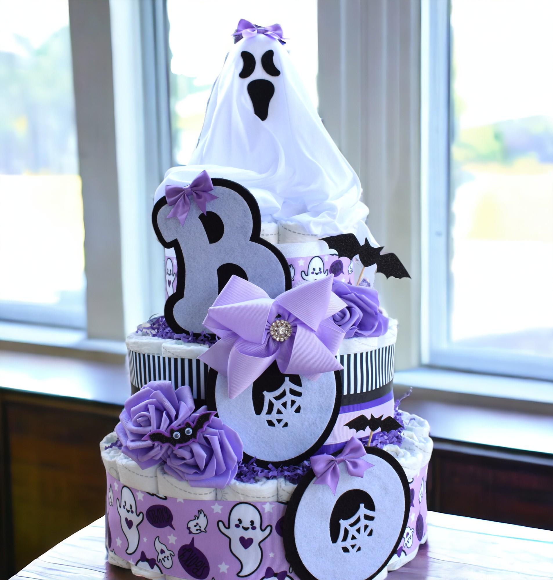 Purple Ghost Diaper Cake Baby Shower, Girl Lilac Halloween Baby Shower Centerpieces Decorations, Lavender Ghost Shower Party Decor - S0011