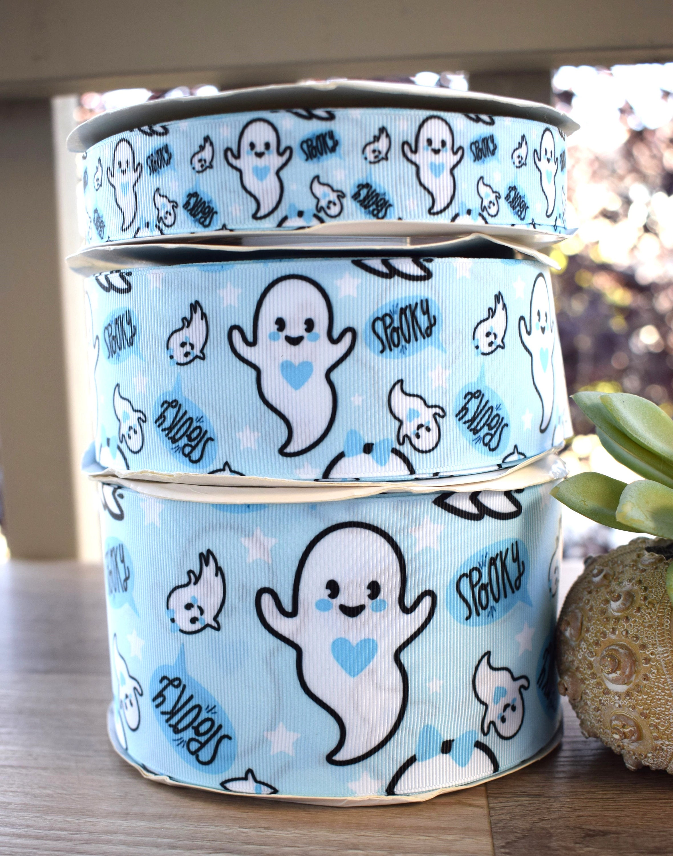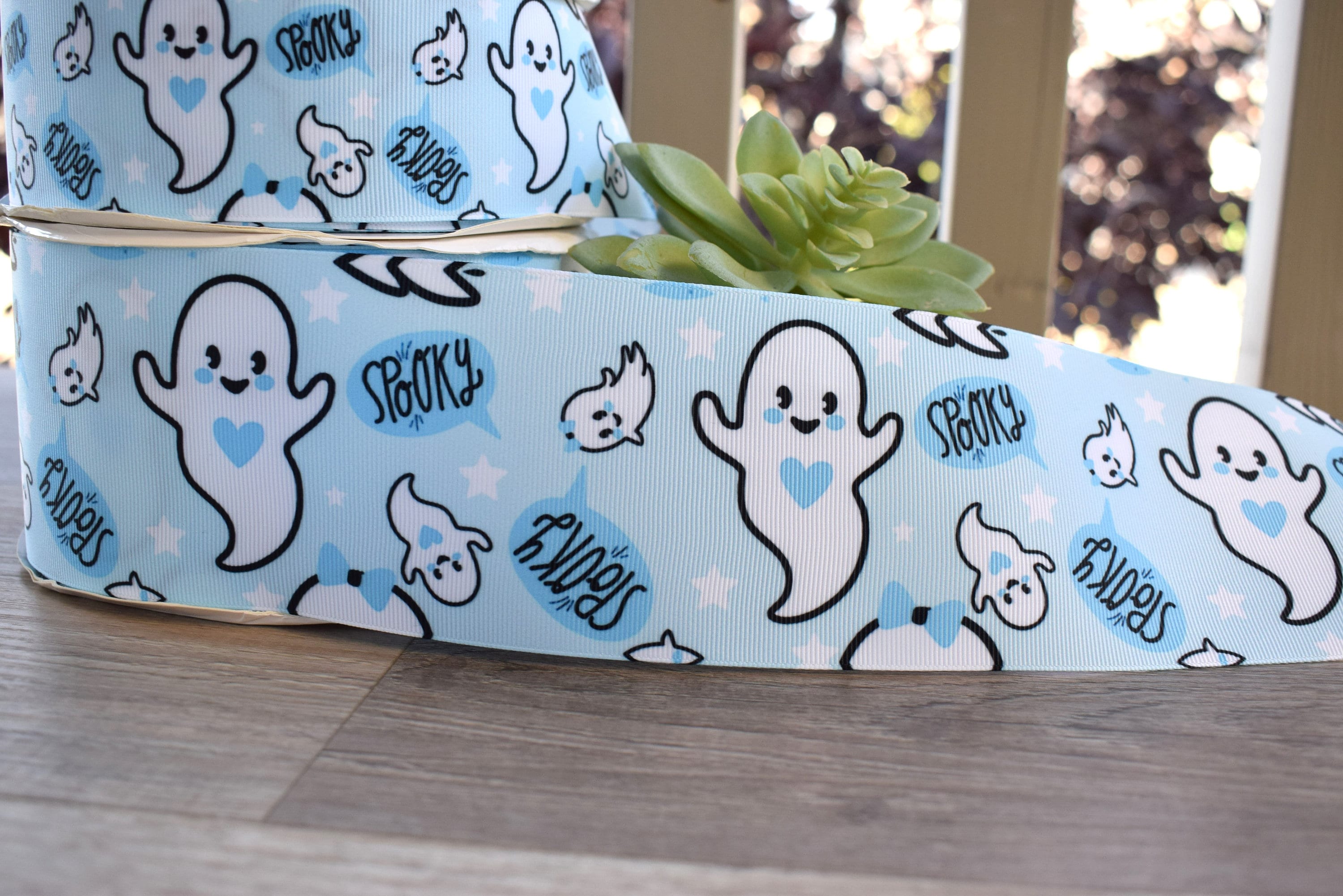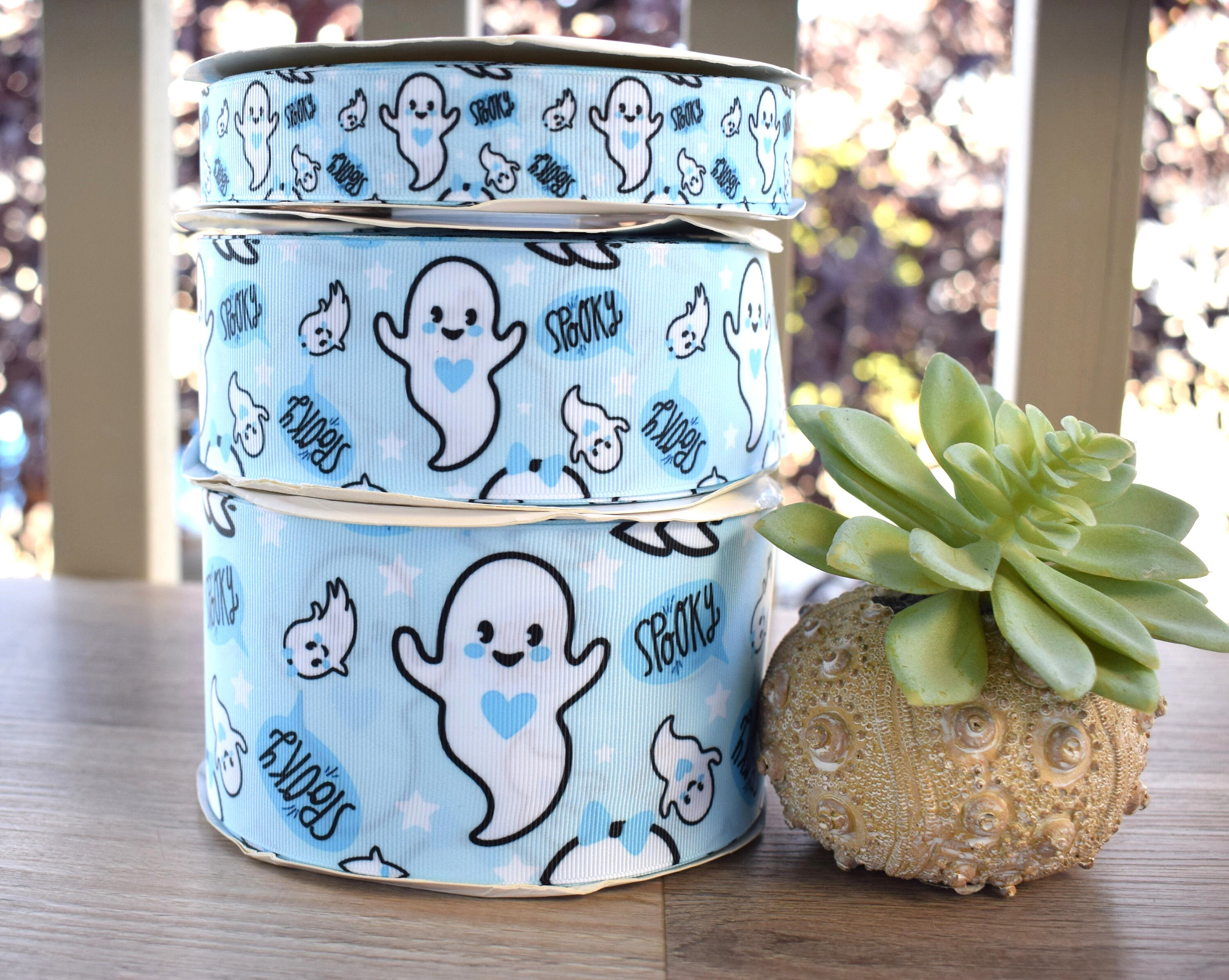 Blue Ghost Grosgrain Ribbon, Boy Blue Halloween Ghost Baby Shower Party, Diaper Cake || 3 Yards of Ribbon - 1" (25mm) 2" (50mm) / 3" (75mm)