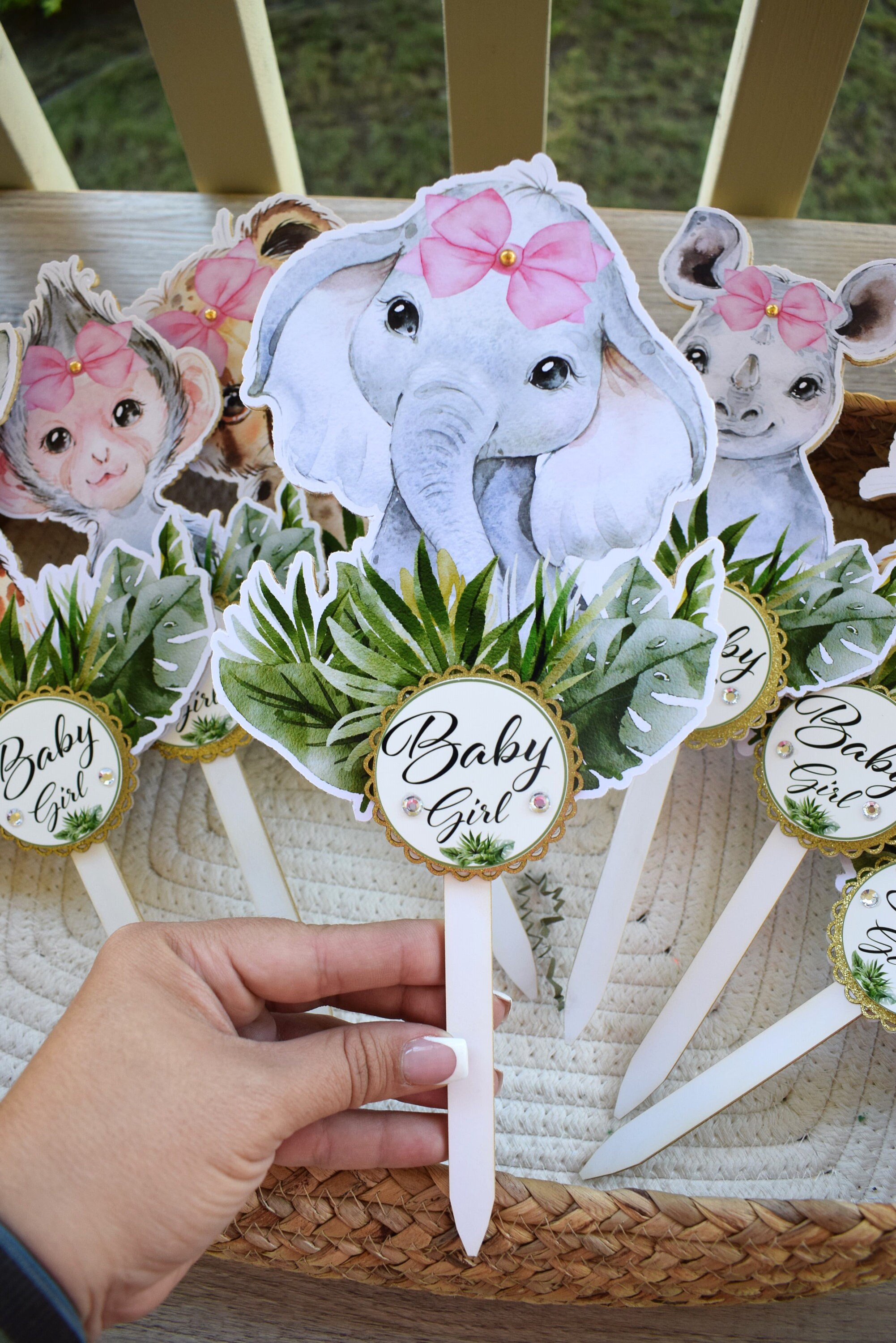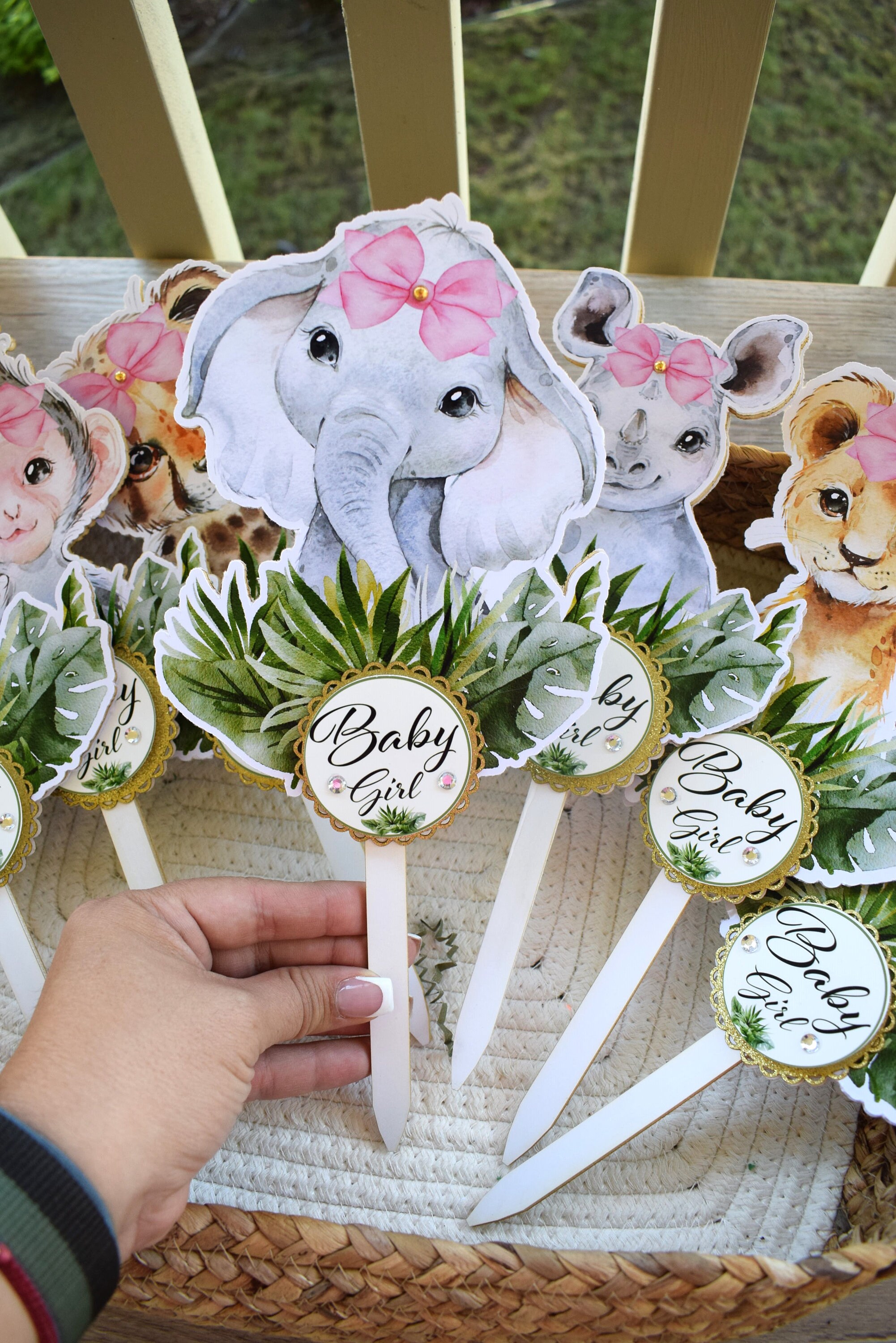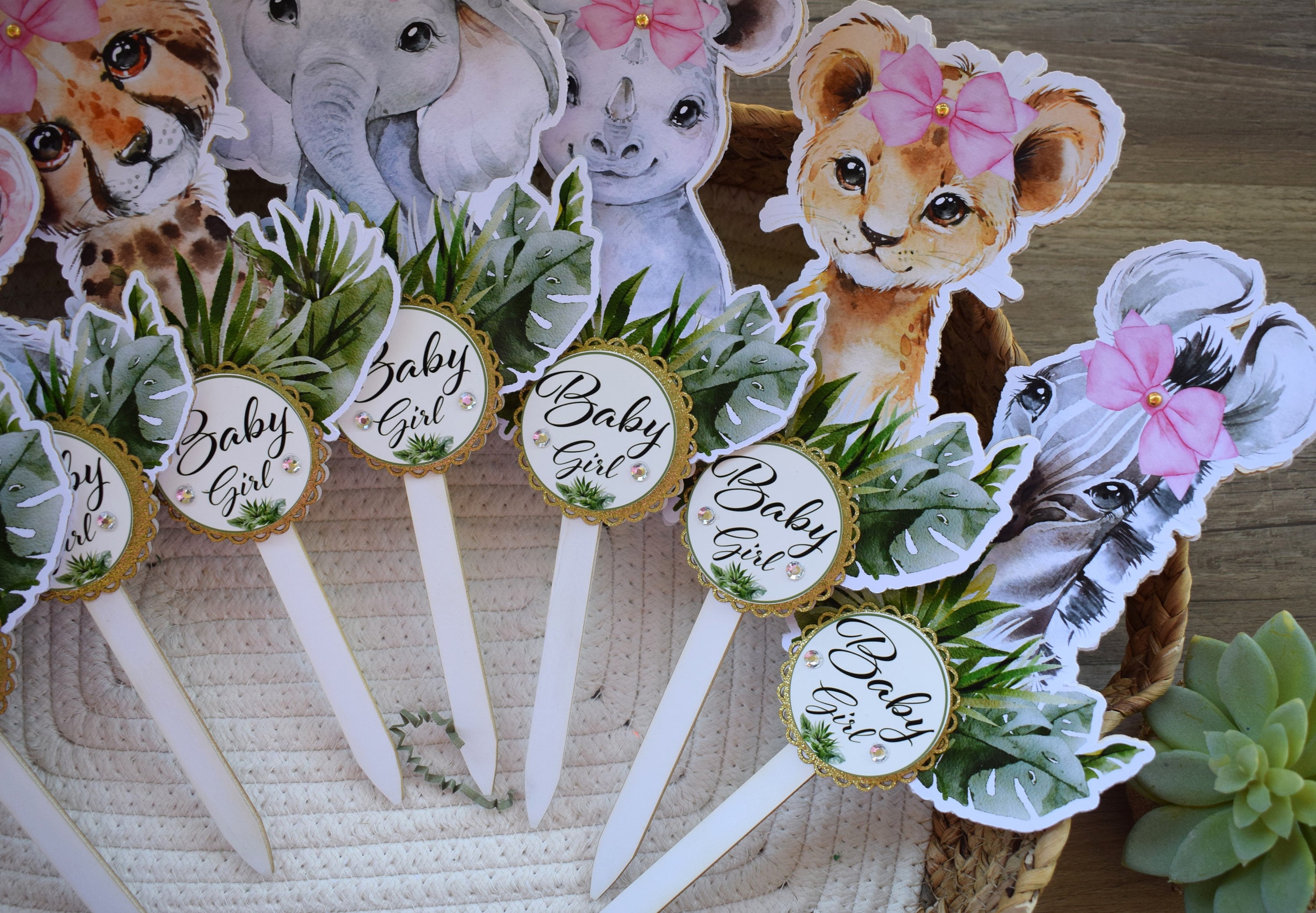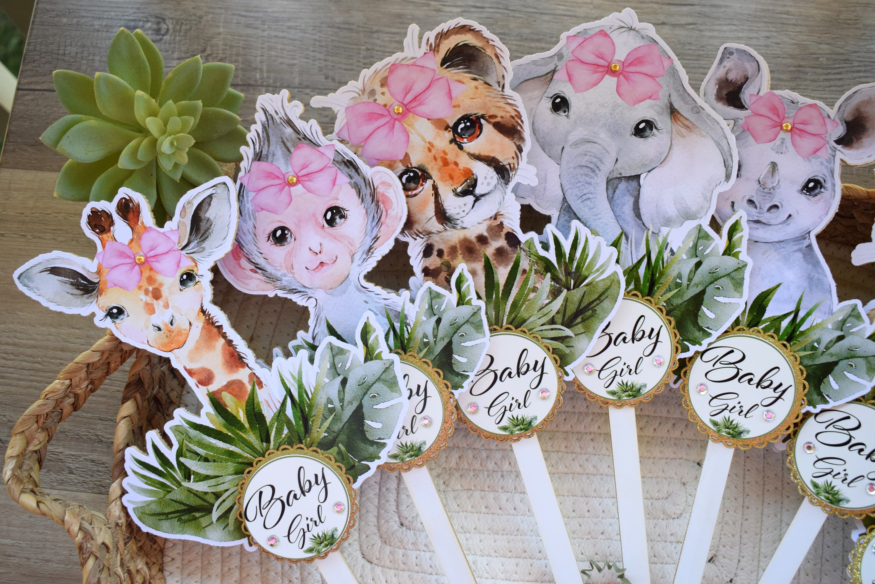 This Gorgeous Girl Jungle Safari Cake Toppers are the perfect centerpieces for your baby shower. We can match any shower theme.