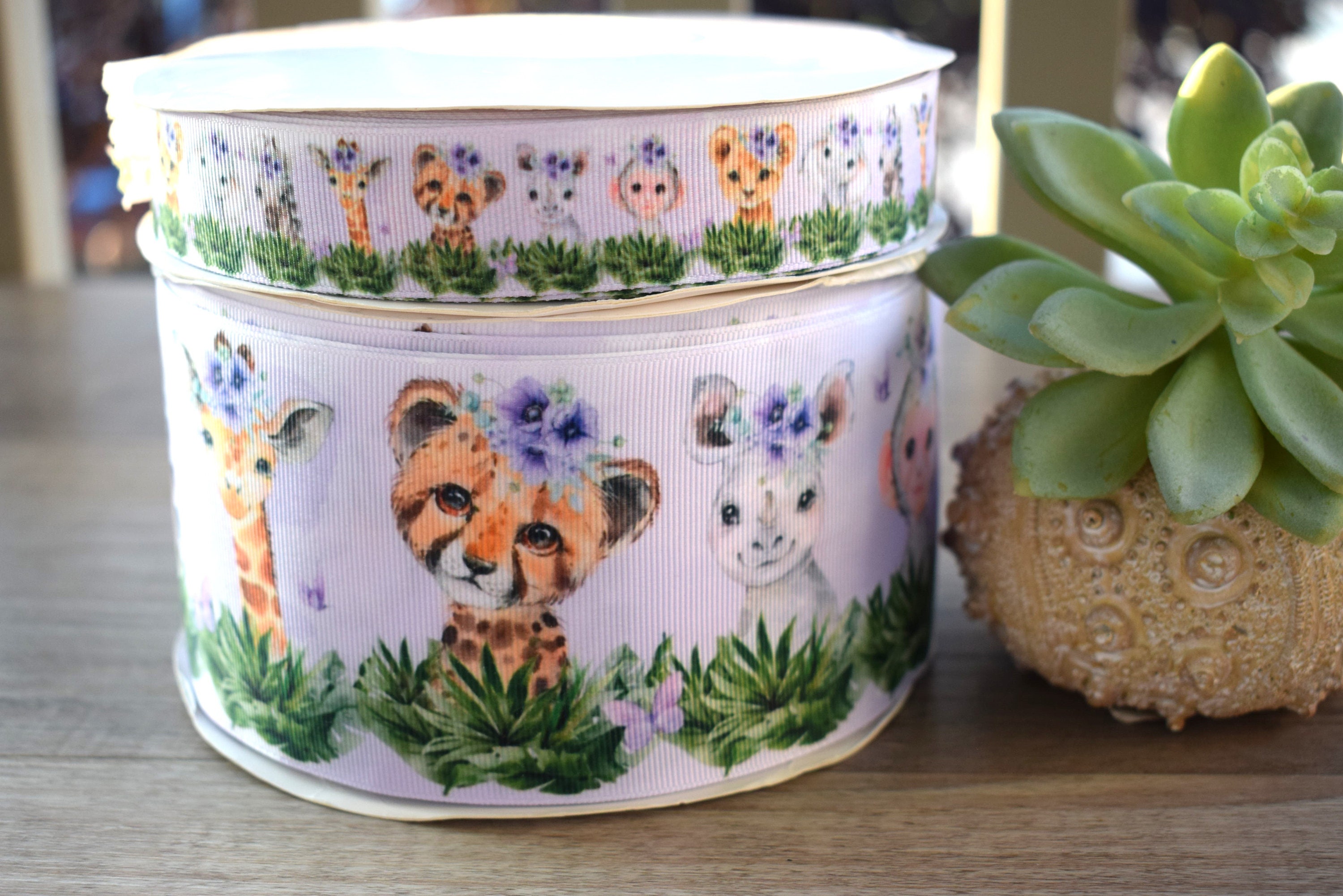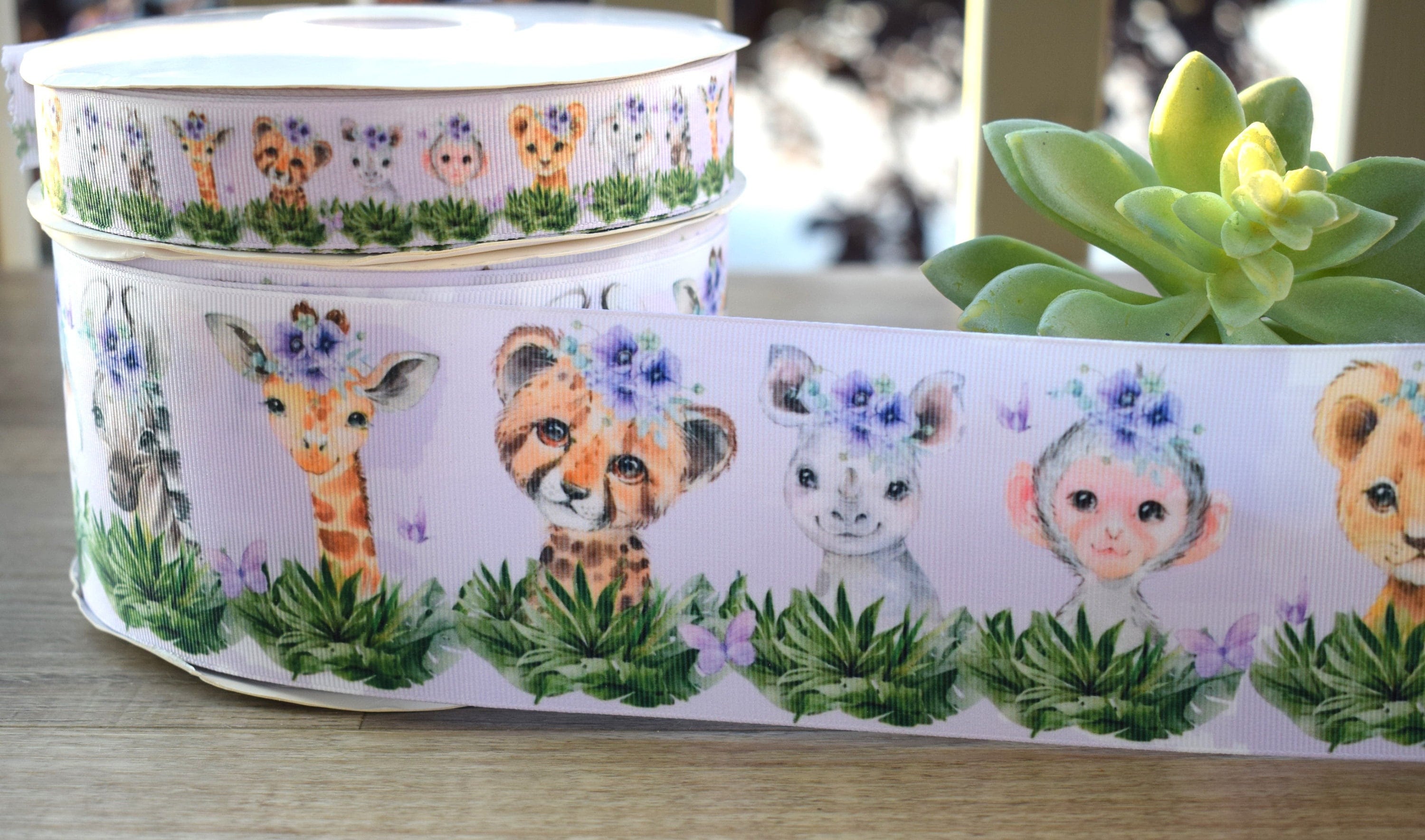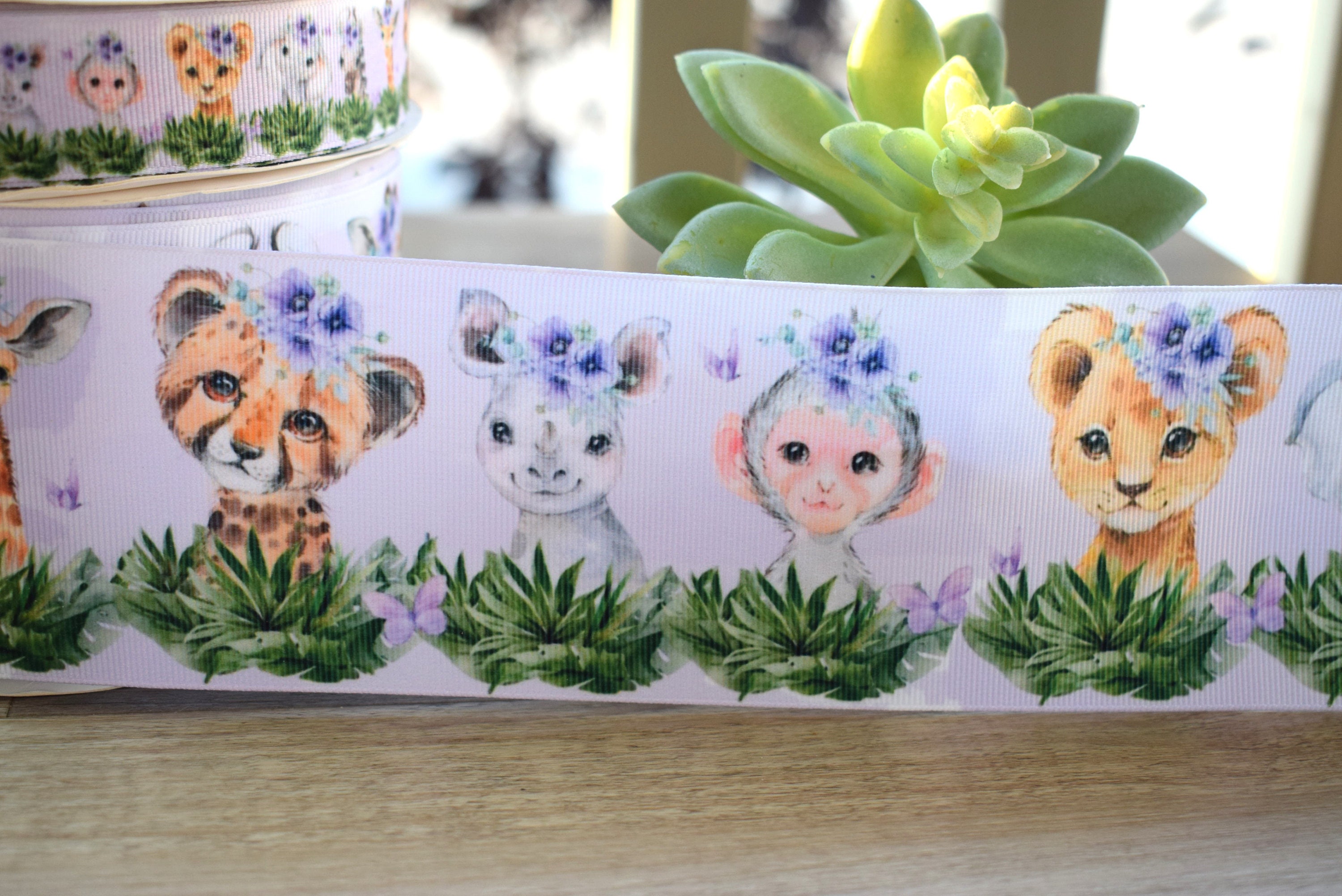 Purple Girl Animal Safari Ribbon, Diaper Cake Ribbon, Lavender Girl Baby Safari Ribbon, Safari || 3 Yards of Ribbon -1" (25mm) / 3" (75mm)