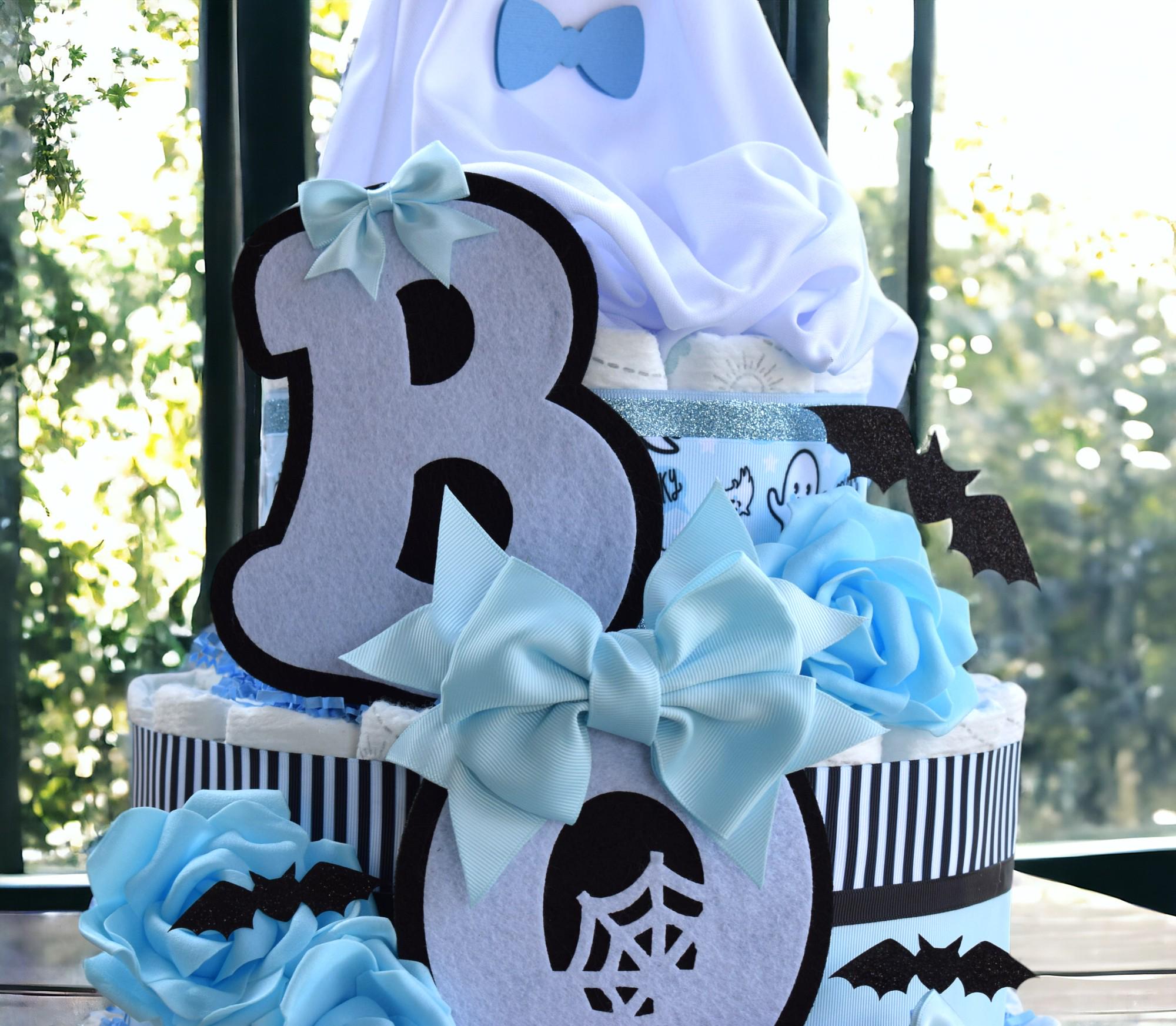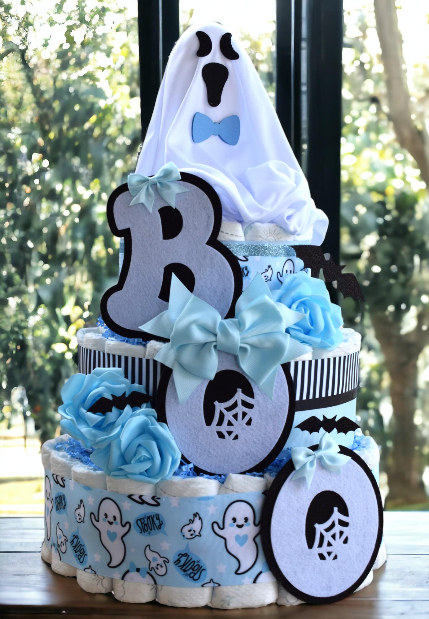 Blue Ghost Diaper Cake Baby Shower, Boy Blue Halloween Baby Shower Centerpieces Decorations, Blue Ghost Shower Party Decor - S0011