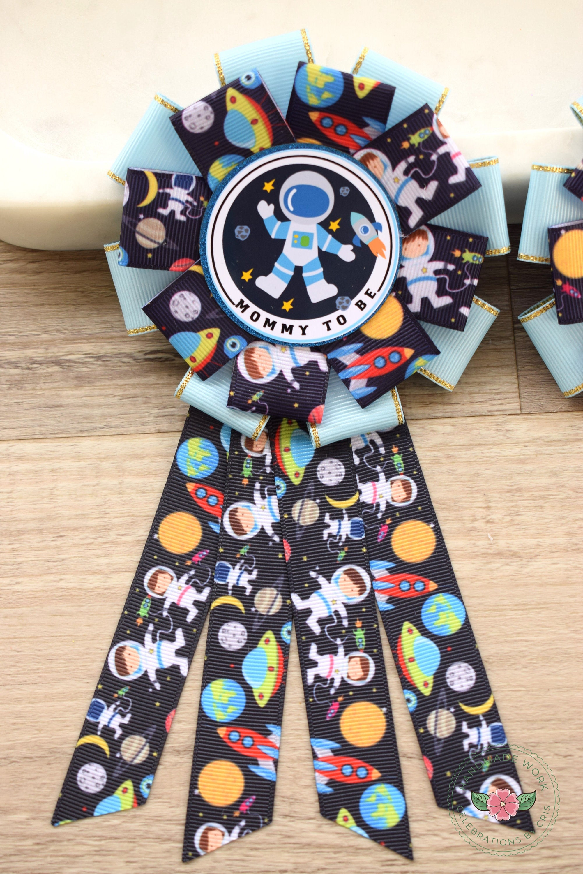 Space Planets Baby Shower, Planet Out of Space Mommy To Be Ribbon Pin, Planets Rocket Daddy To Be Badge Pin, Baby Shower Gift, Gender Reveal