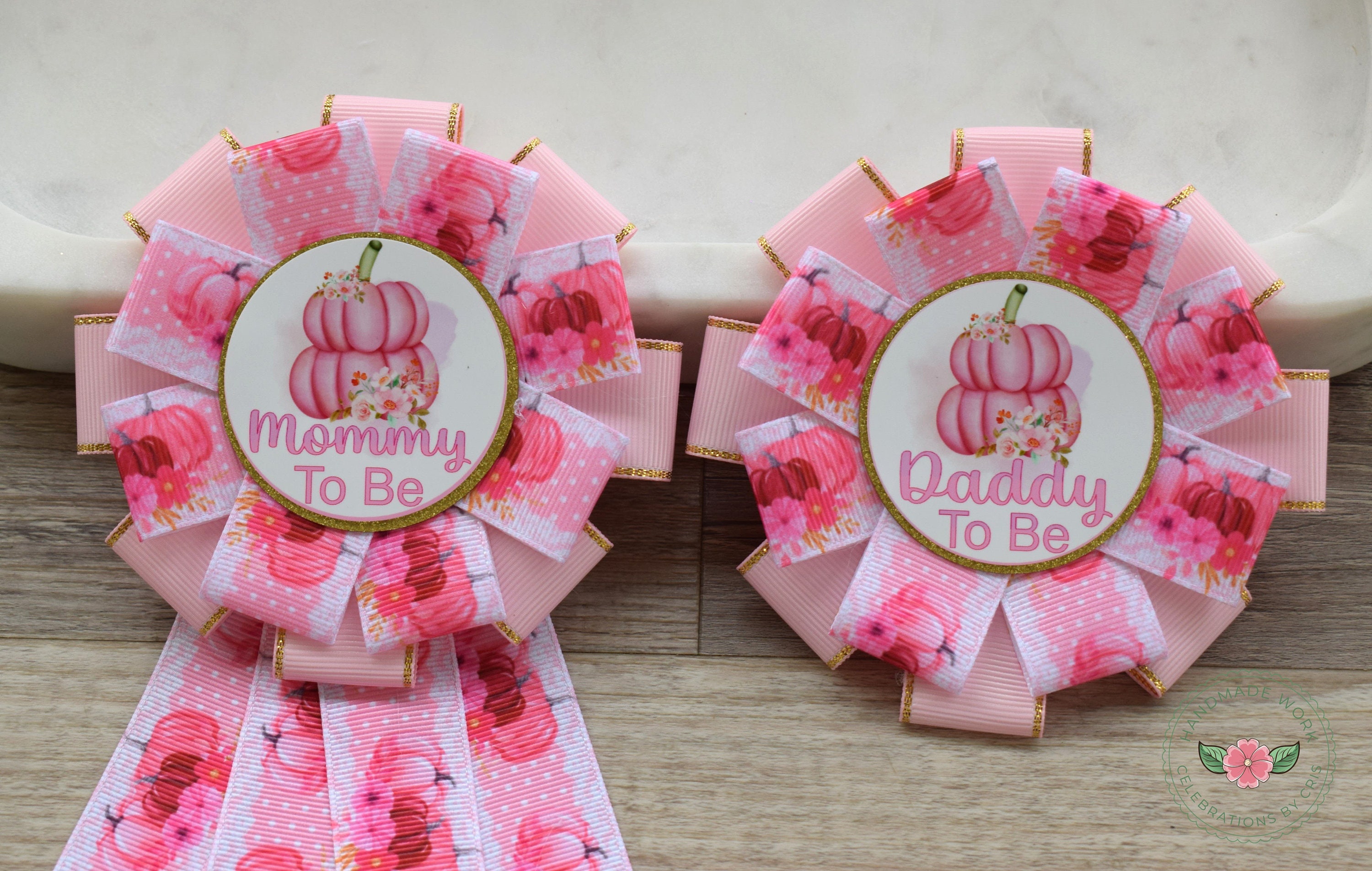 Pink Pumpkin Baby Shower, Light Pink Mommy To Be Ribbon Pin, Pumpkin Daddy To Be Pin, Big Sister Pin, Big Brother Pin