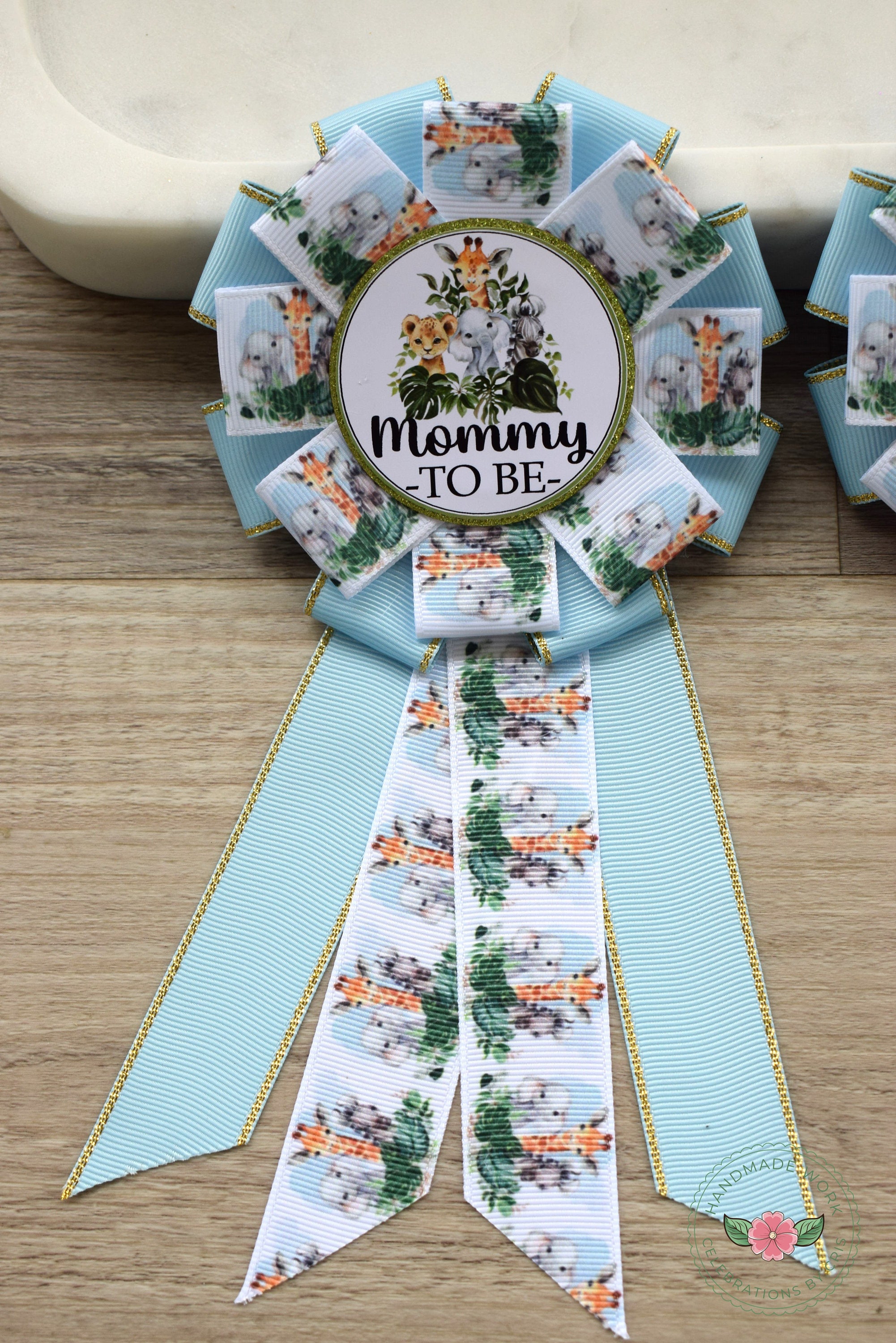 Blue Boy Jungle Safari Baby Shower, Safari Animal Mommy To Be Ribbon Pin, Animal Daddy To Be Badge Pin