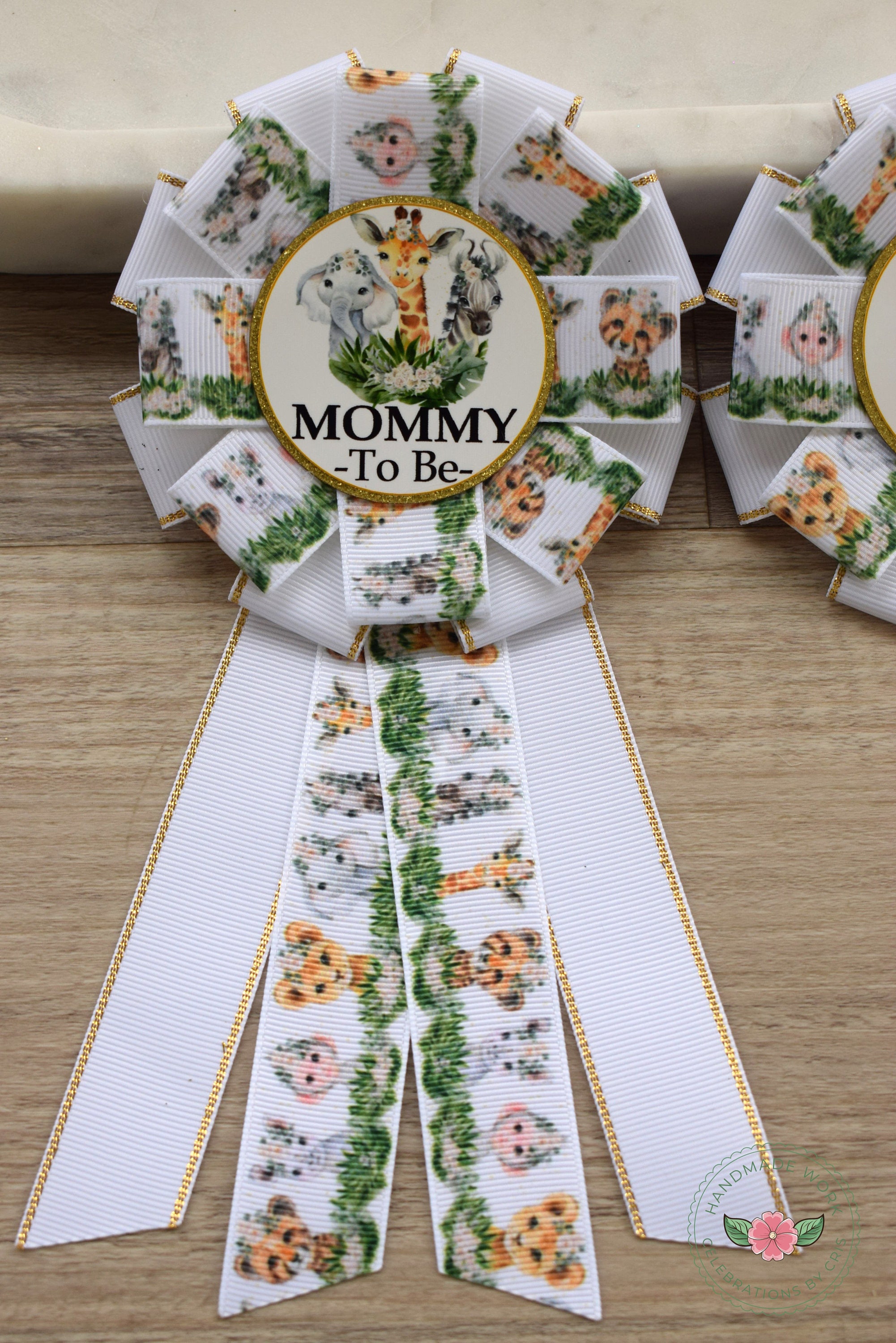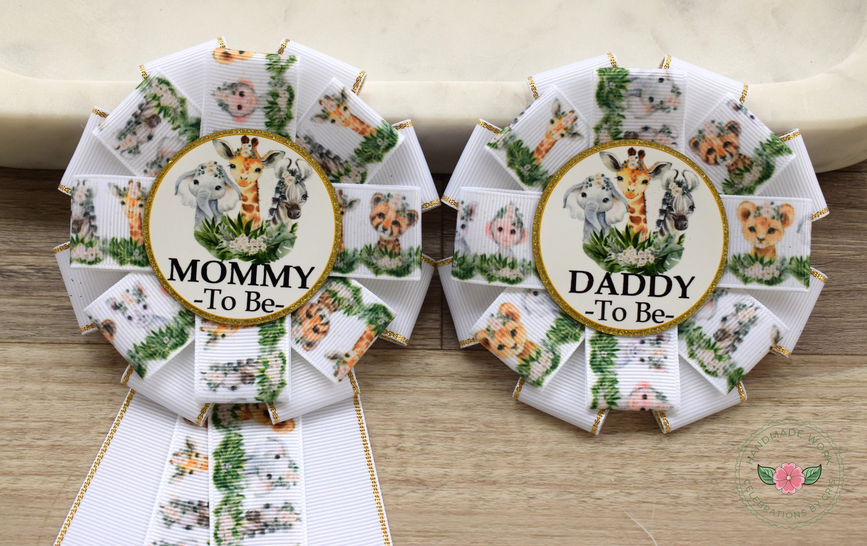Neutral Safari Baby Shower, Jungle Safari Animal Mommy To Be Ribbon Pin, Gender Reveal Animal Daddy To Be Badge Pin