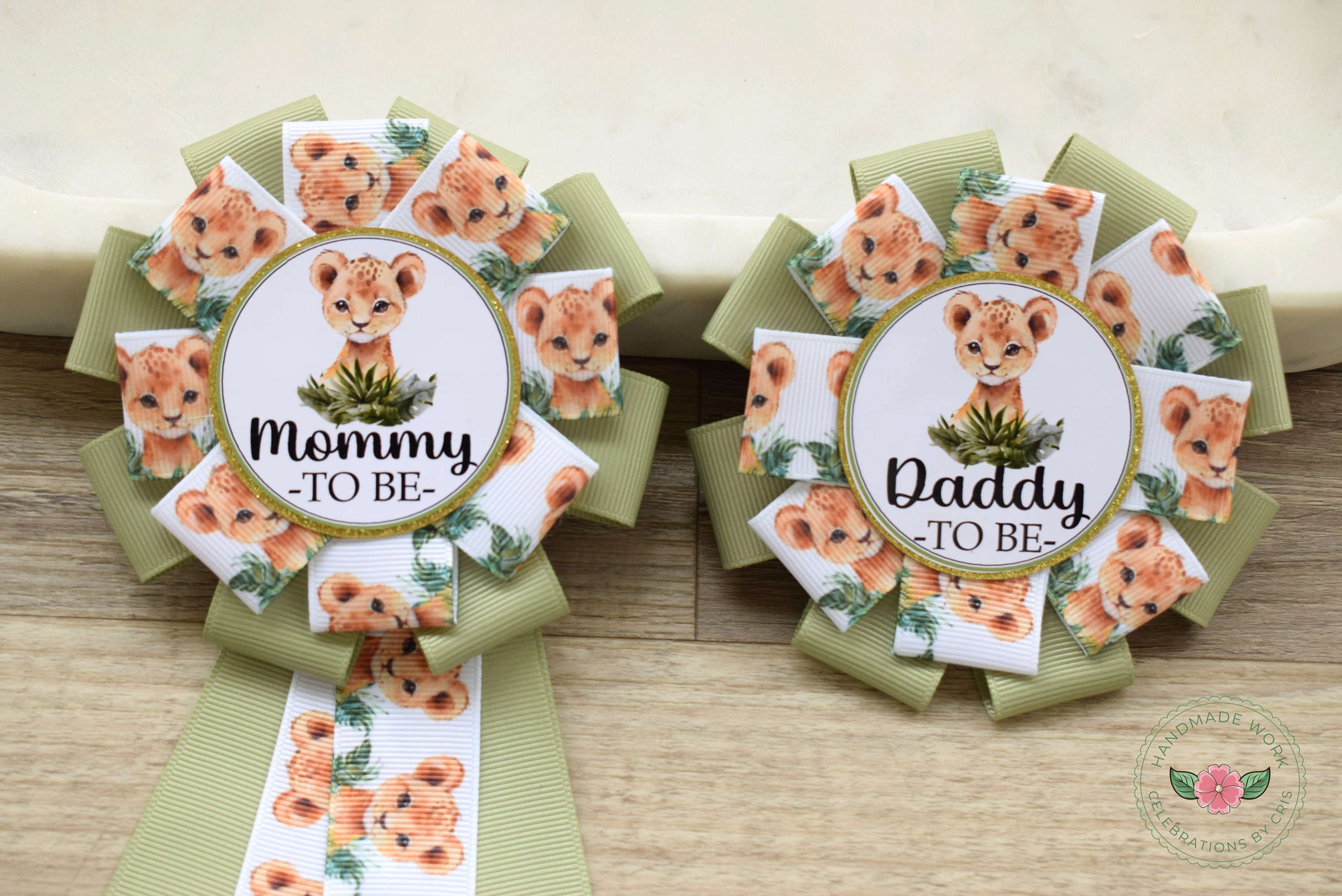 Lion Cub Safari Baby Shower, Jungle Safari Animal Mommy To Be Ribbon Pin, Gender Reveal Animal Daddy To Be Badge Pin