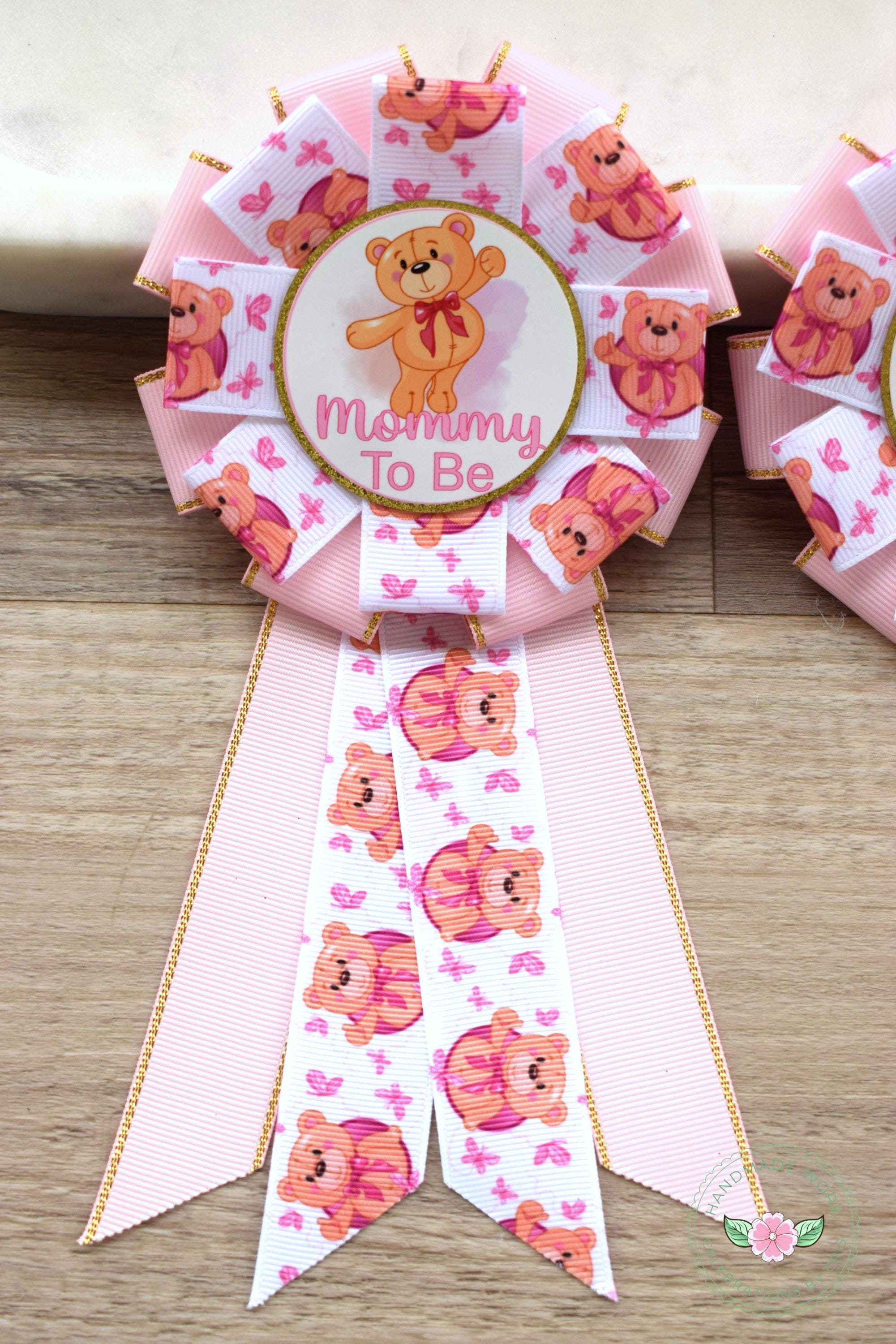 Pink Girl Bear Baby Shower, Girl Bear Mommy To Be Ribbon Pin, Teddy Bear Daddy To Be Pin