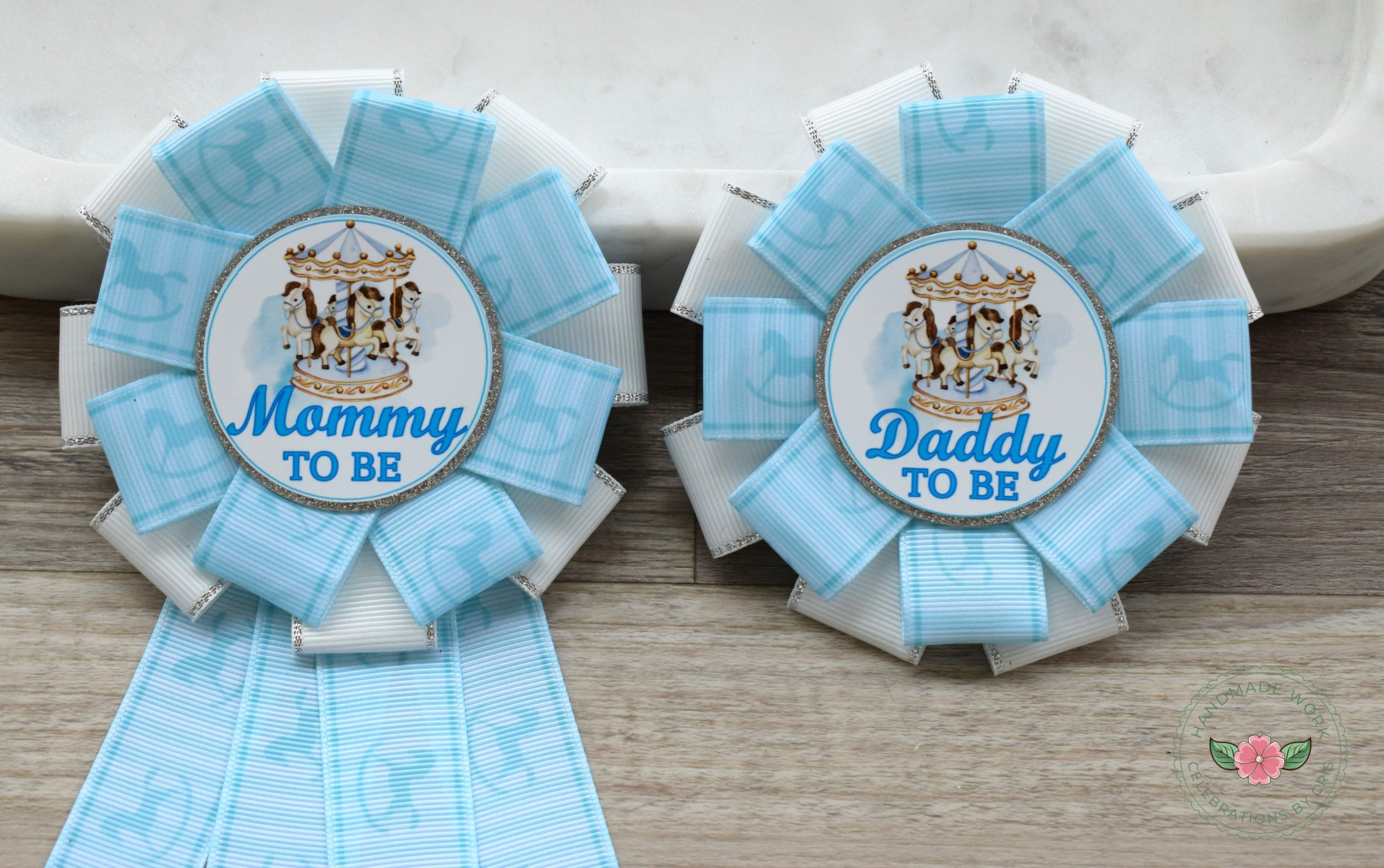 Rocking Horse Baby Shower, Boy Horse Baby Mommy To Be Ribbon Pin, Daddy To Be Badge Pin