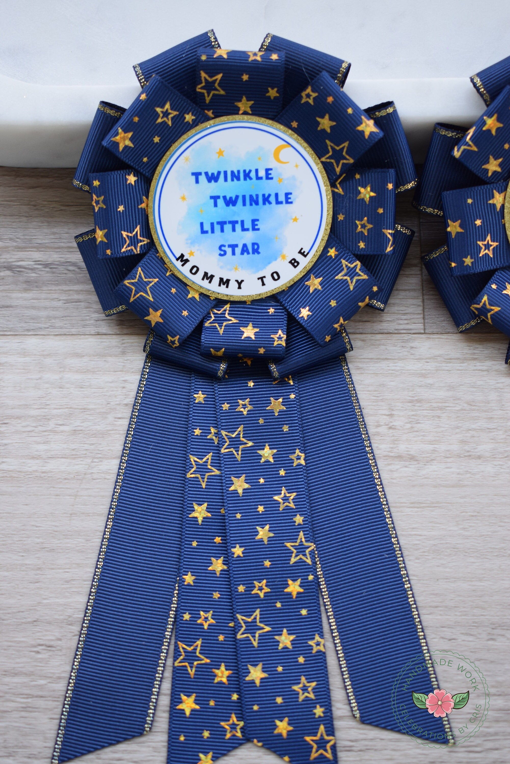 Navy Blue Little Star Baby Shower, Twinkle Twinkle Little Star Mommy To Be Ribbon Pin, Daddy To Be Pin